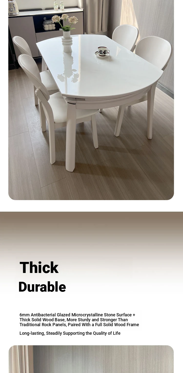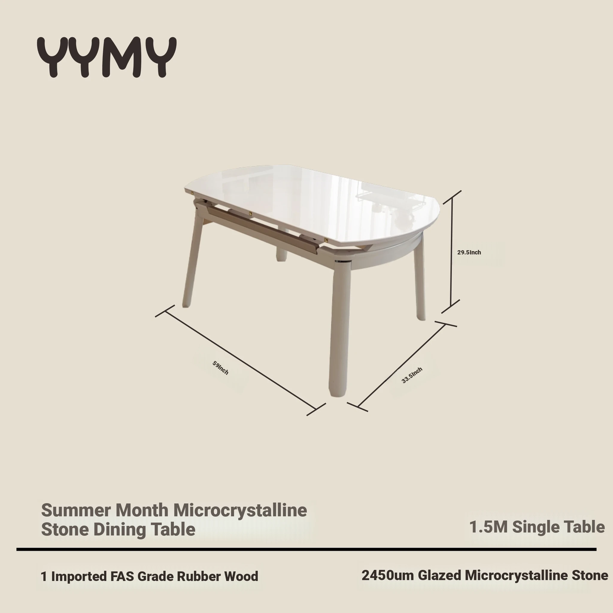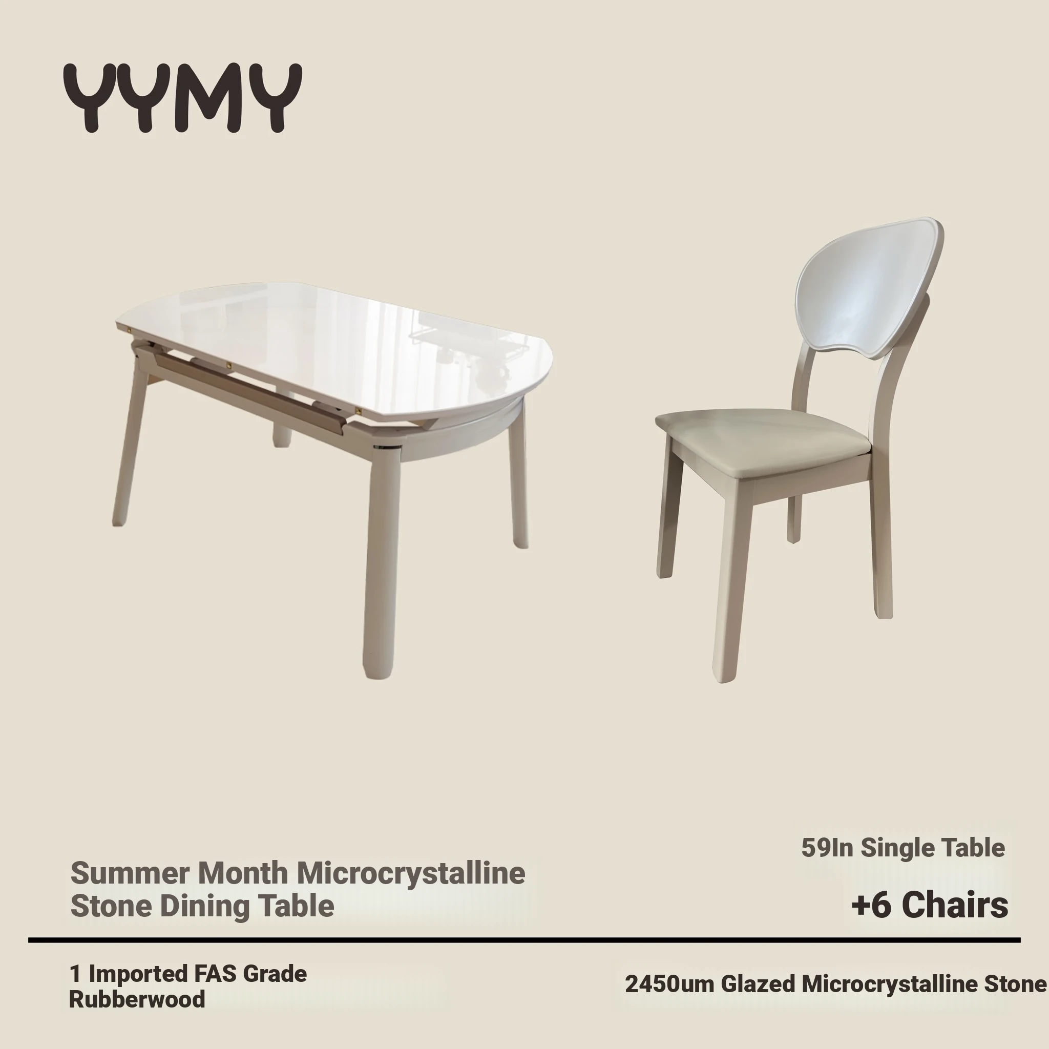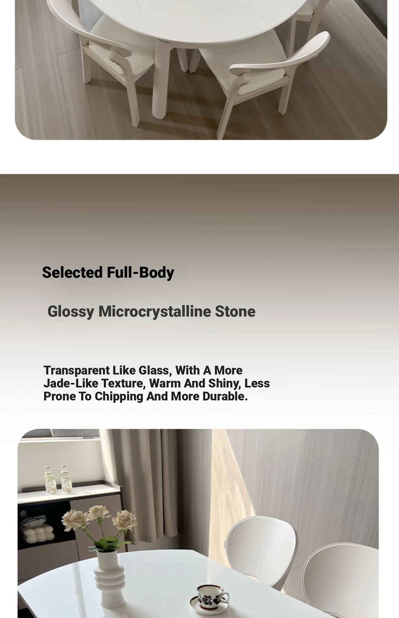 Elegant White Marble Dining Table Set with Extendable Round Design - French Cream Style, High-End Solid Wood for Home Use