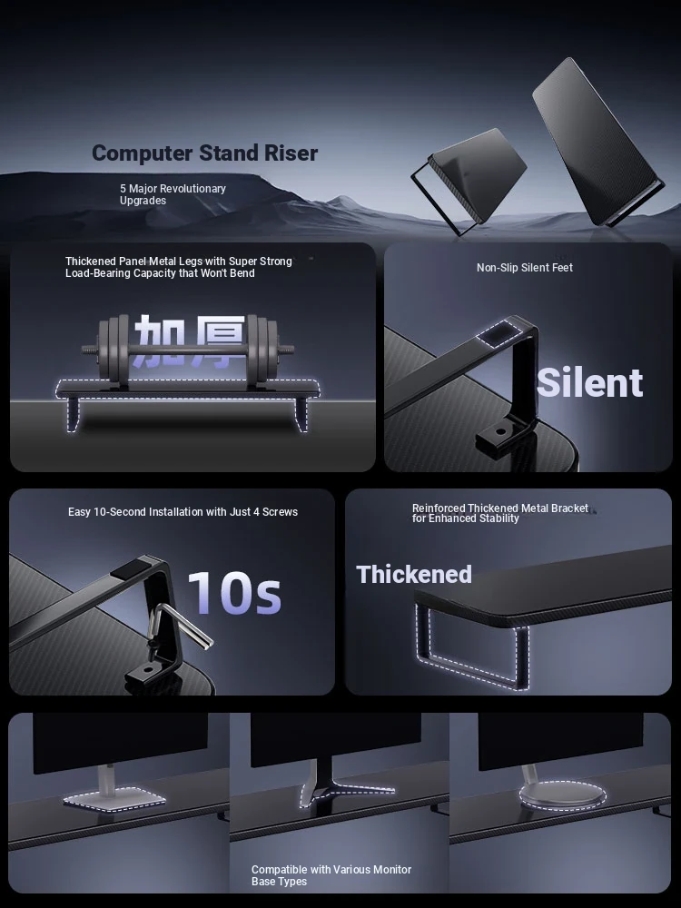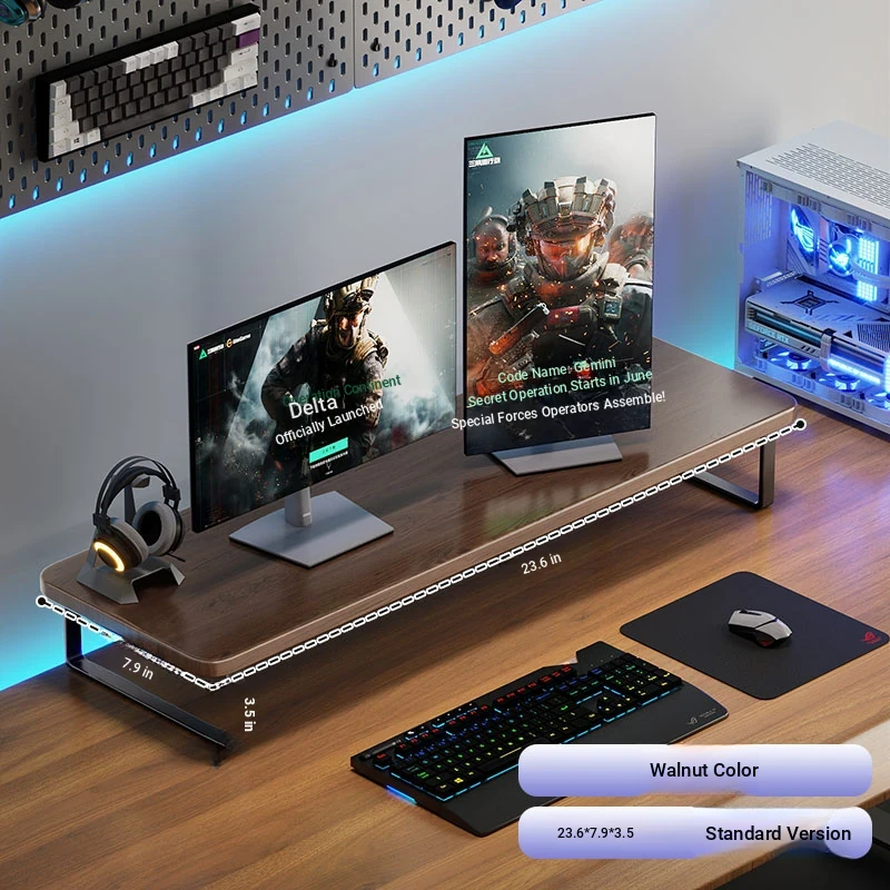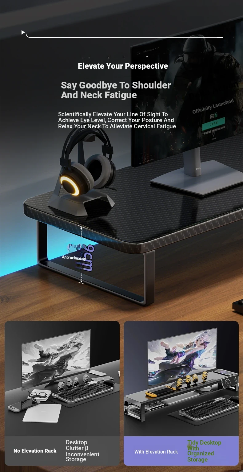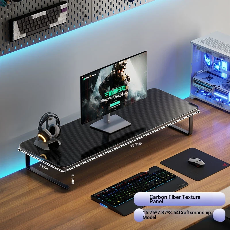 Elevated Gaming Desk Organizer - Adjustable Monitor Stand and Laptop Support Rack for Enhanced Workspace Efficiency and Comfort