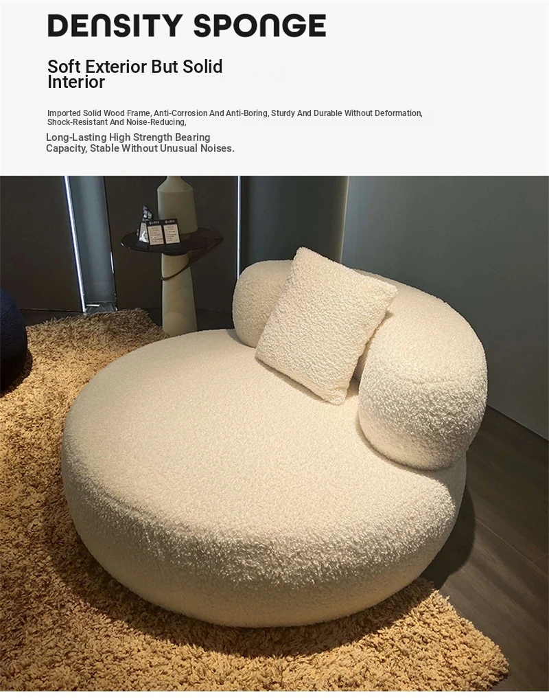 Fluffy Round Lambswool Sofa Chair for One - Cozy Creamy Aesthetic for Bedroom and Balcony, Perfect for Lounging and Relaxation - Trendy and Comfortable Design Ideal for Influencers