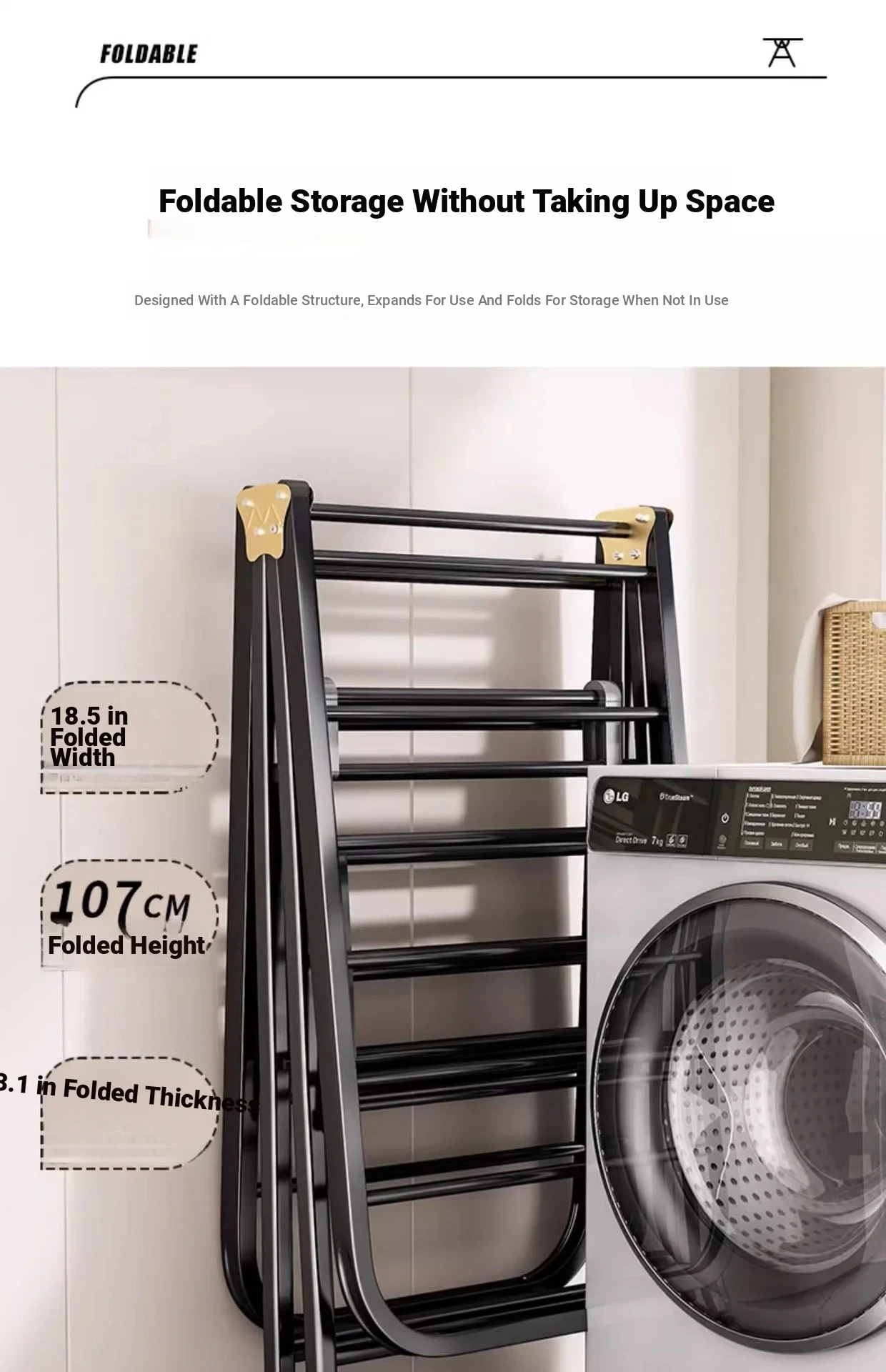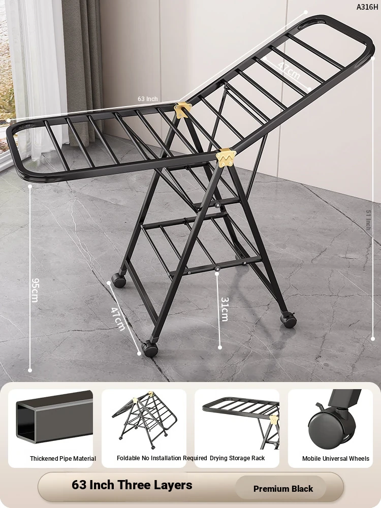 [No Installation + Universal Wheel] 62.99 in High Grade Black-Three Layers Drying