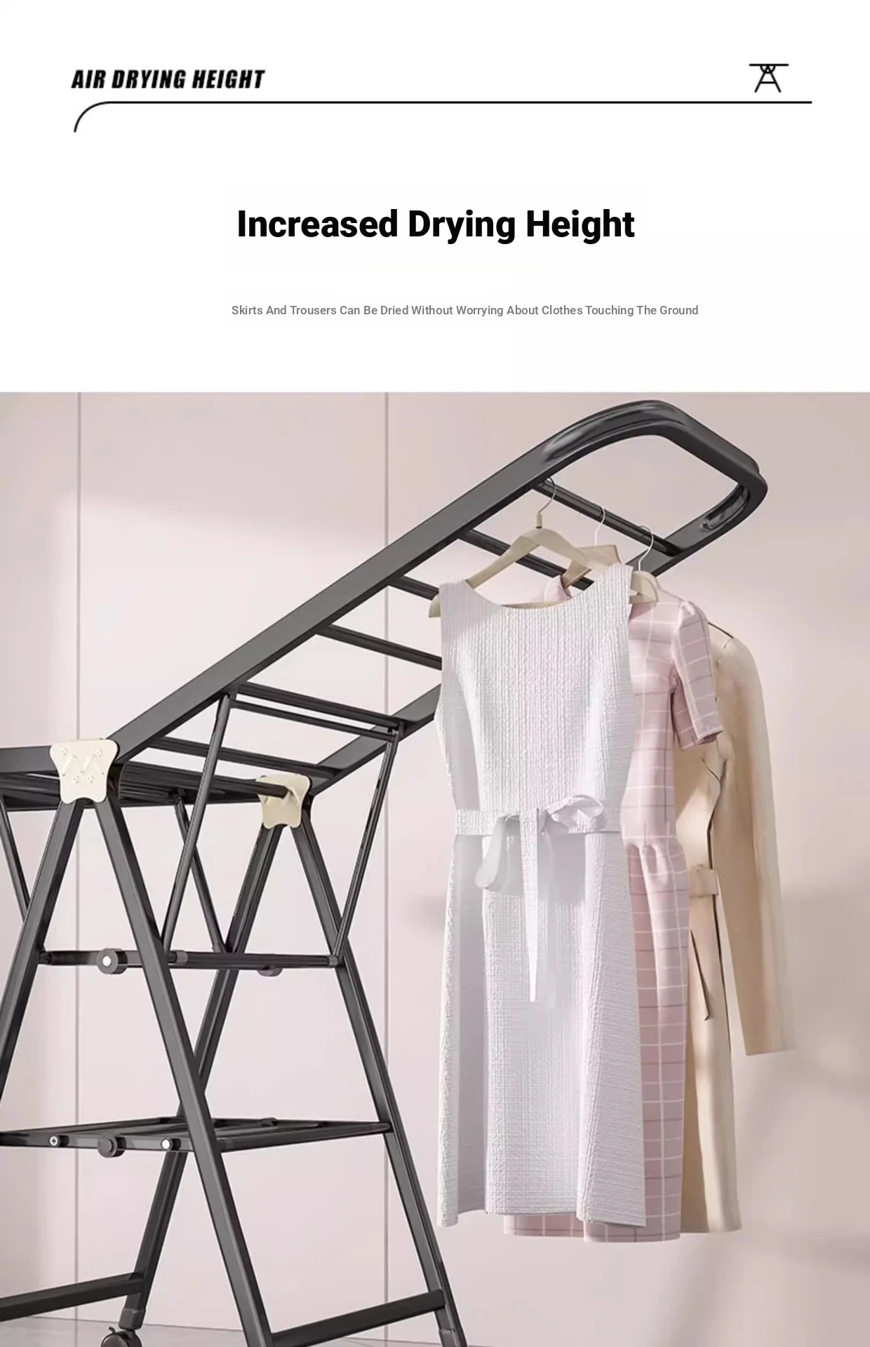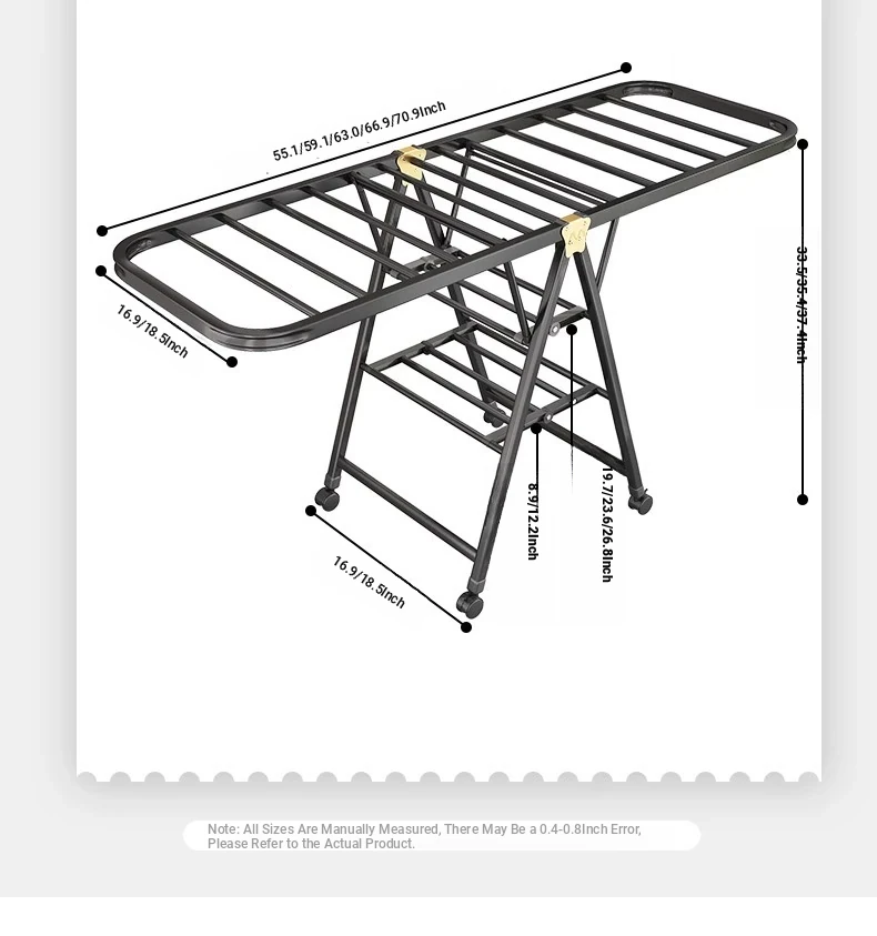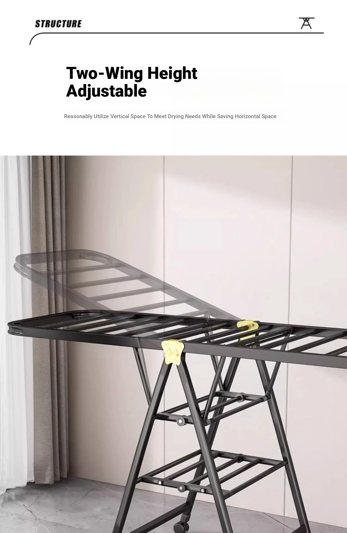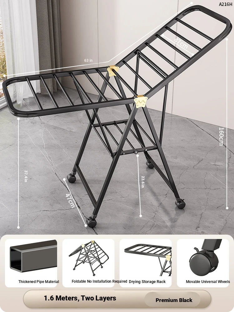 [No Installation + Universal Wheel] 62.99 in High Grade Black-Double Layer Drying