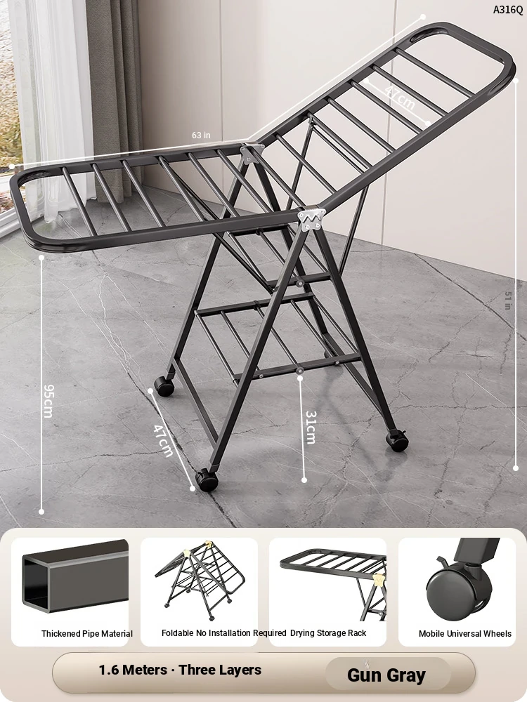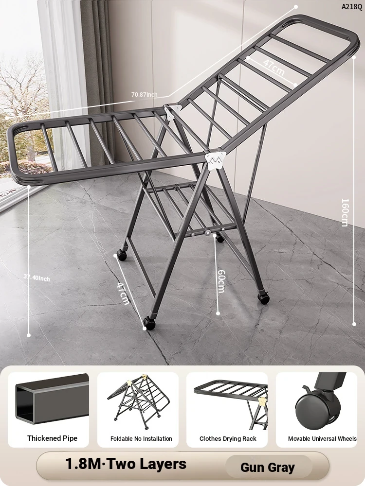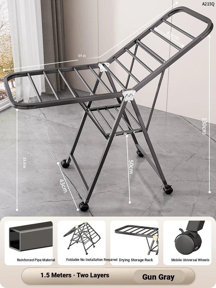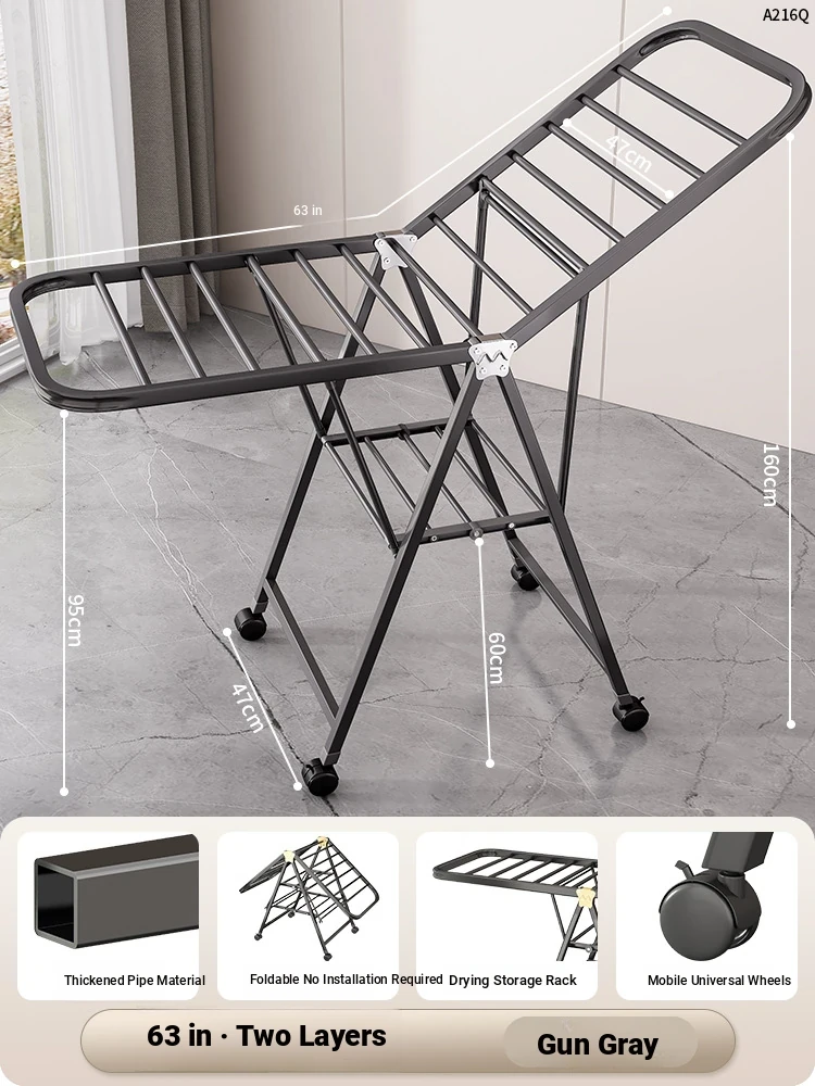 [No Installation + Universal Wheel] 62.99 in Gun Grey-Double Layer Drying