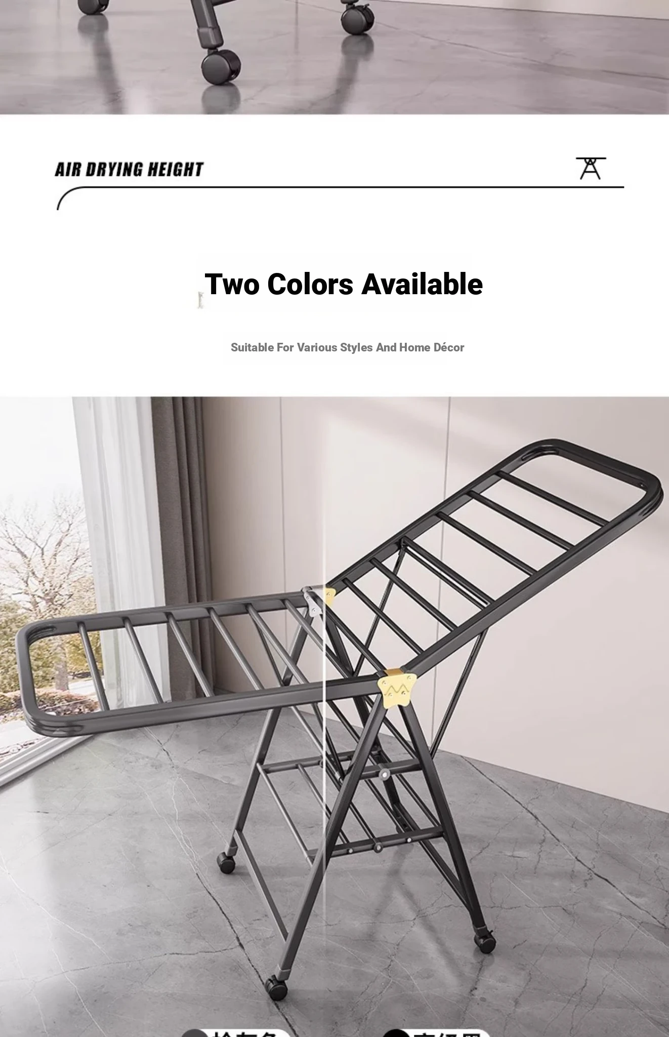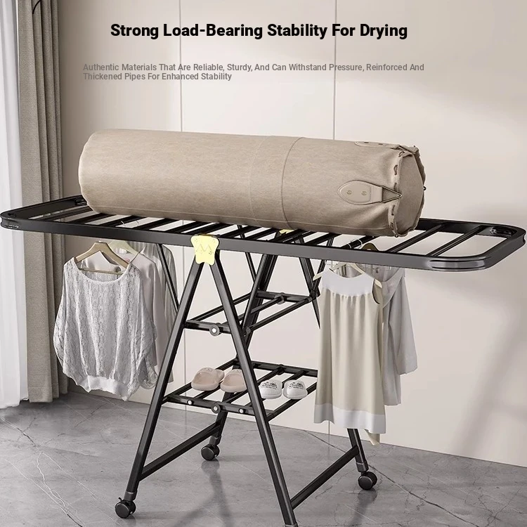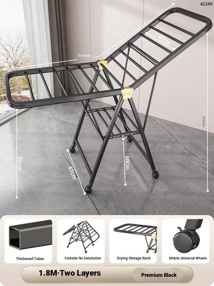 [No Installation + Universal Wheel] 70.87 in High Grade Black-Double Layer Drying