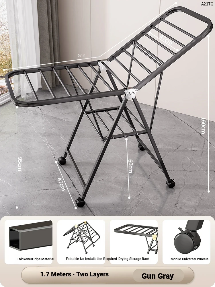 [No Installation + Universal Wheel] 66.93 in Gun Grey-Double Layer Drying