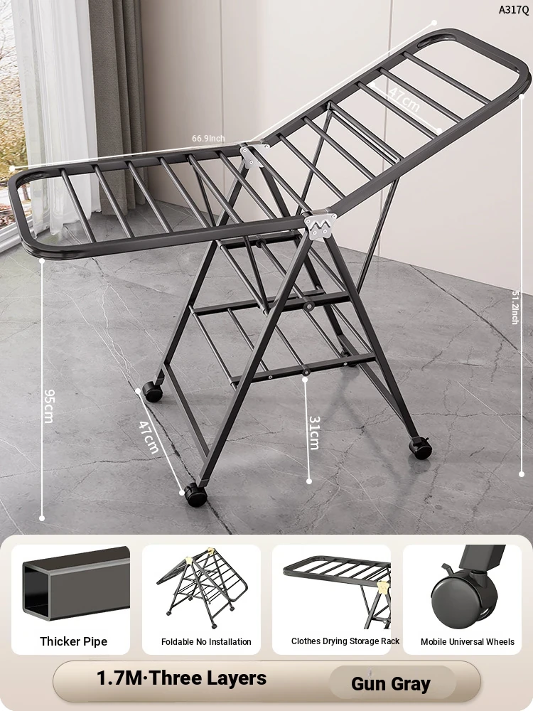 [No Installation + Universal Wheel] 66.93 in Gun Grey-Three Layers Drying