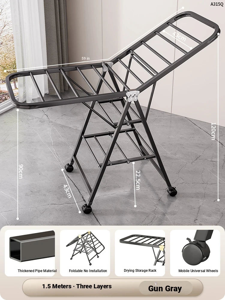[No Installation + Universal Wheel] 59.06 in Gun Grey-Three Layers Drying