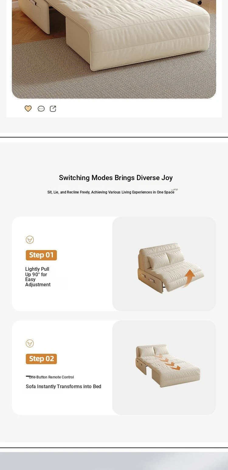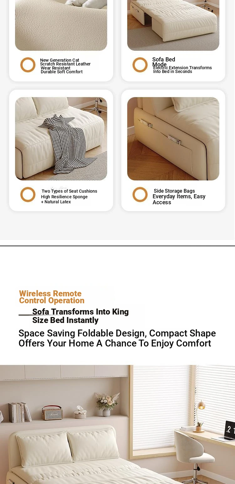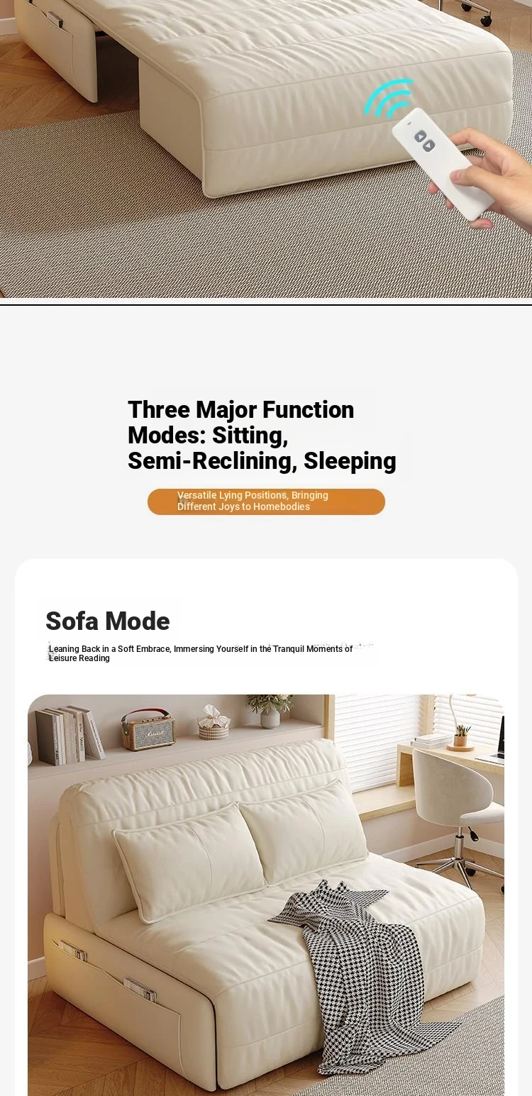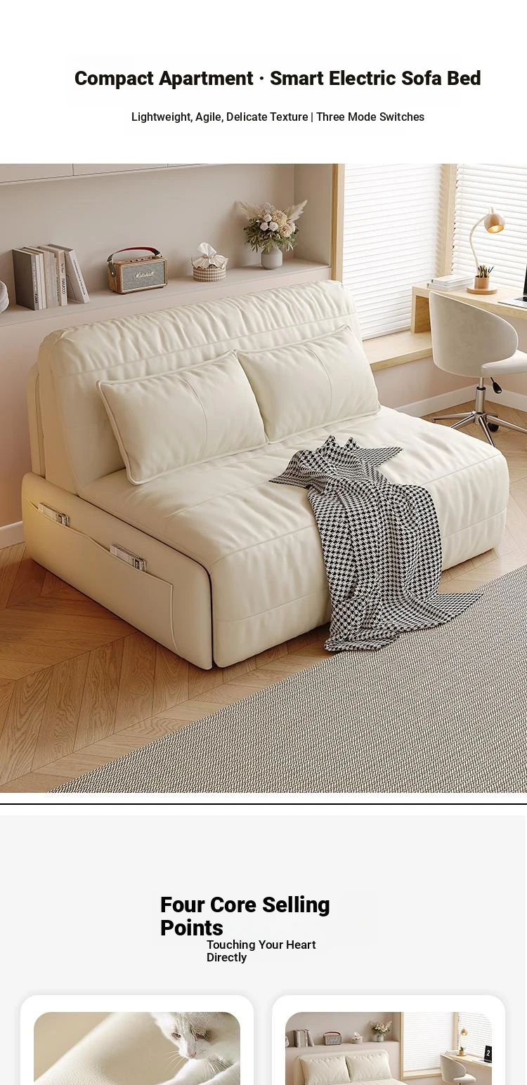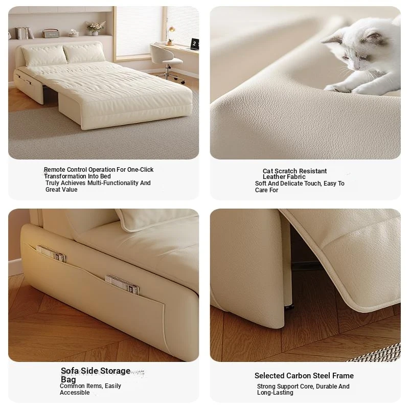 【Free Shipping in Hong Kong】Smart Electric Convertible Sofa Bed - Genuine Leather, Multifunctional, Foldable Design Perfect for Small Spaces