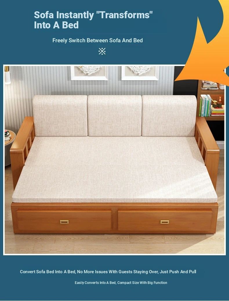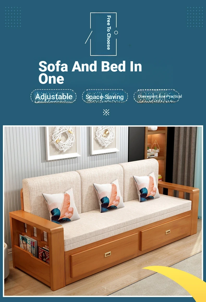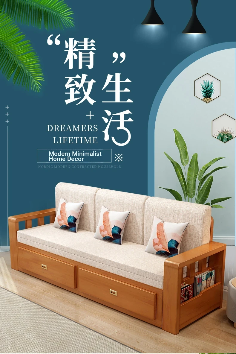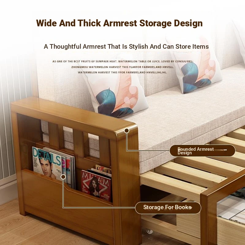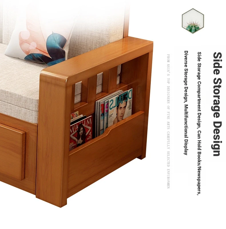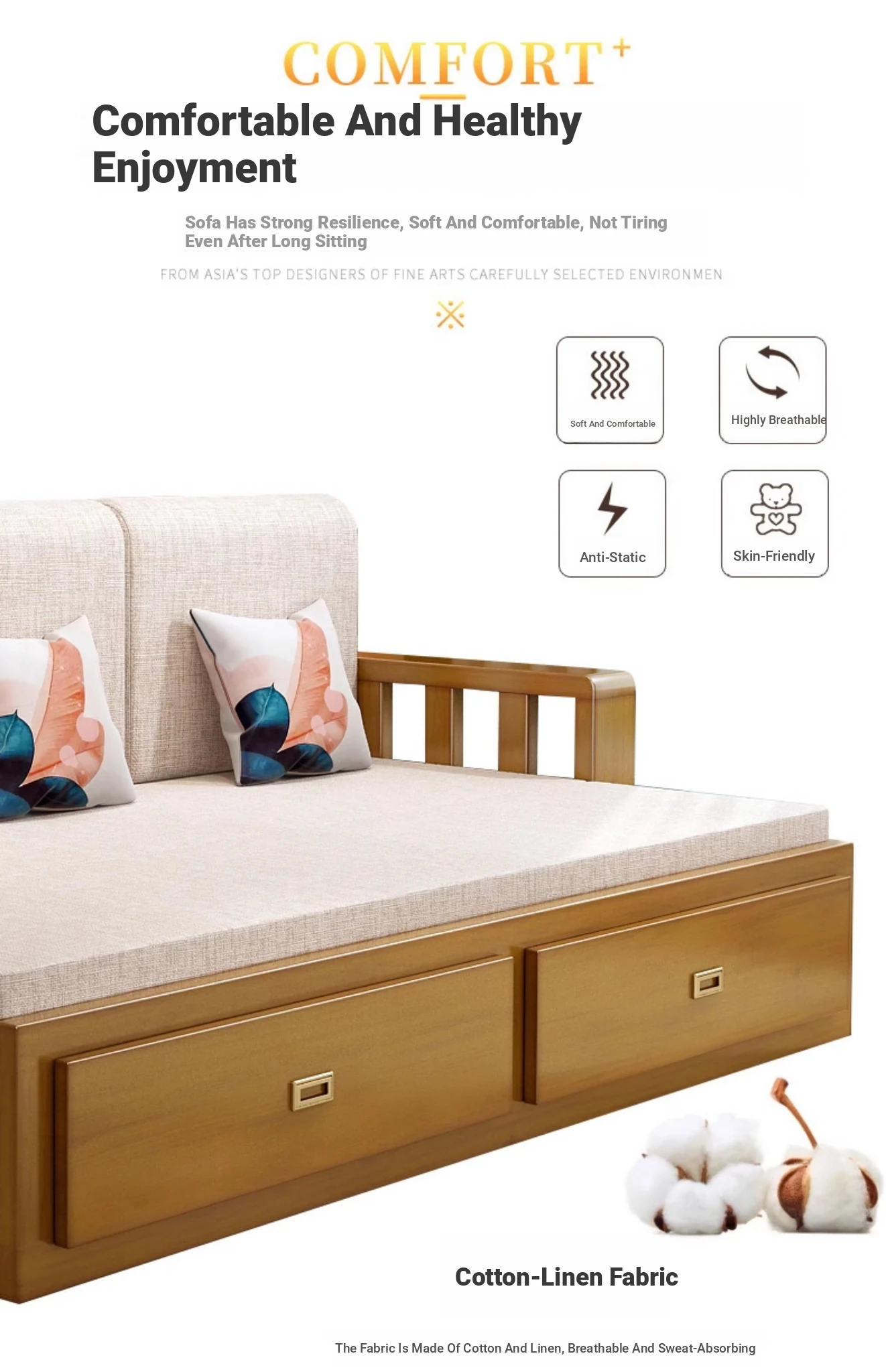 【Free Shipping to Hong Kong】New Chinese Style Sofa Bed with Storage - Expandable, Fabric and Solid Wood, Foldable, Space-Saving Multi-Functional Design for Small Apartments