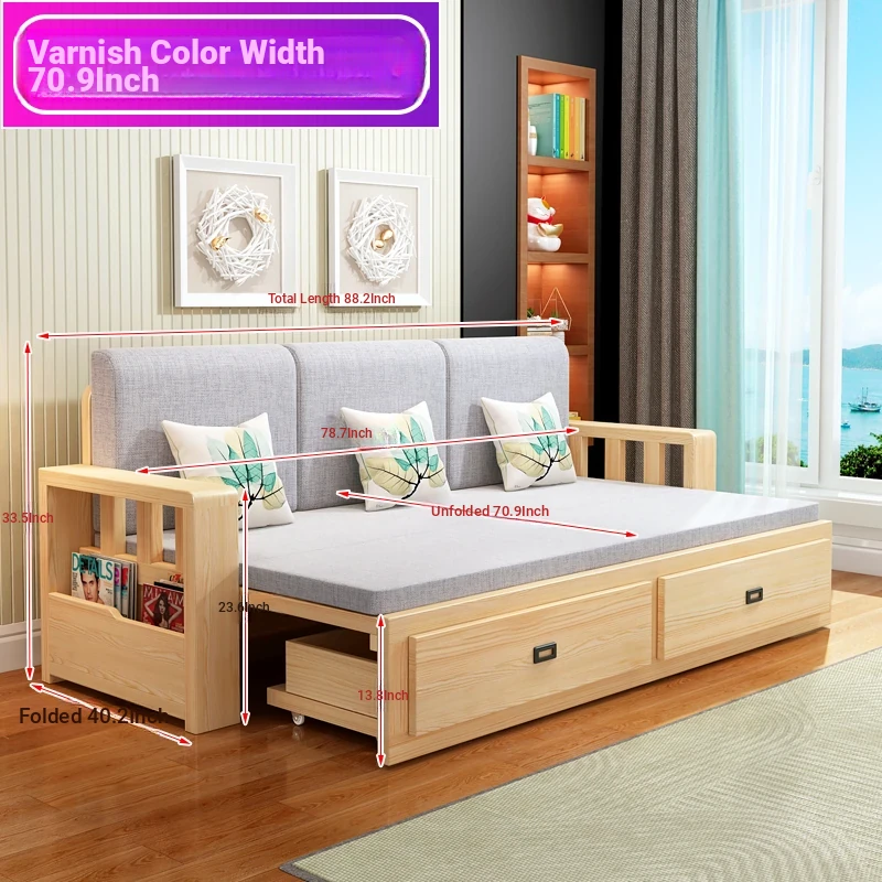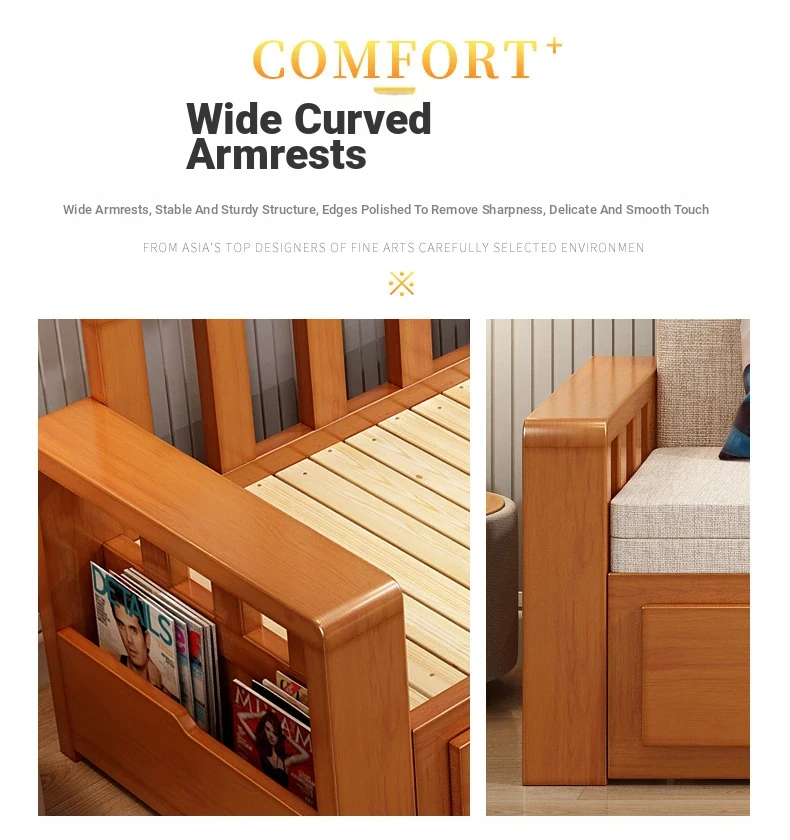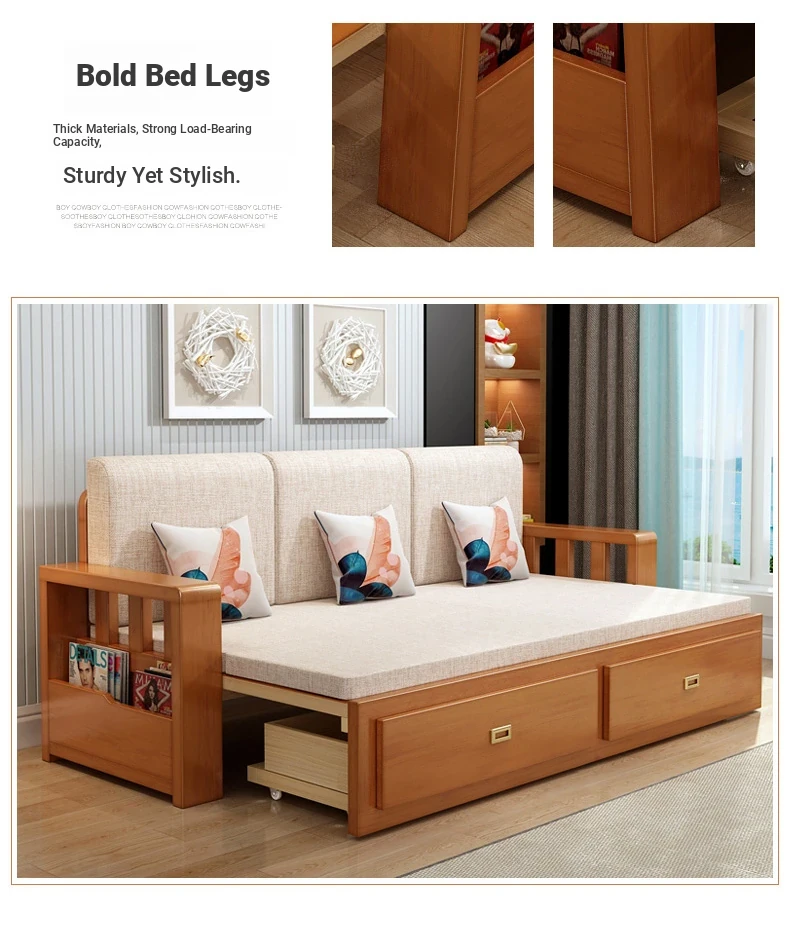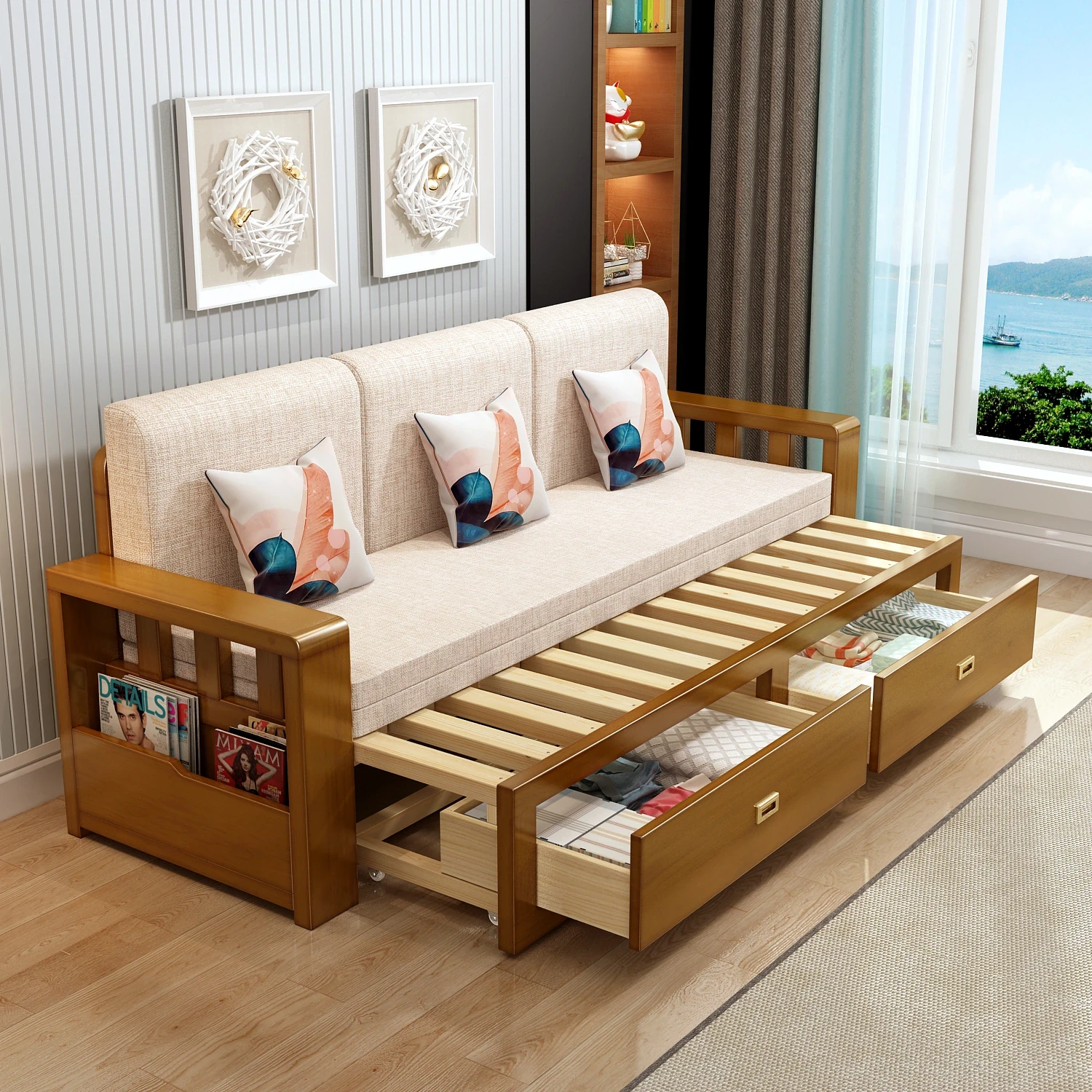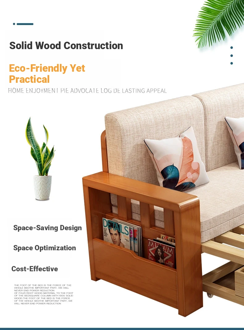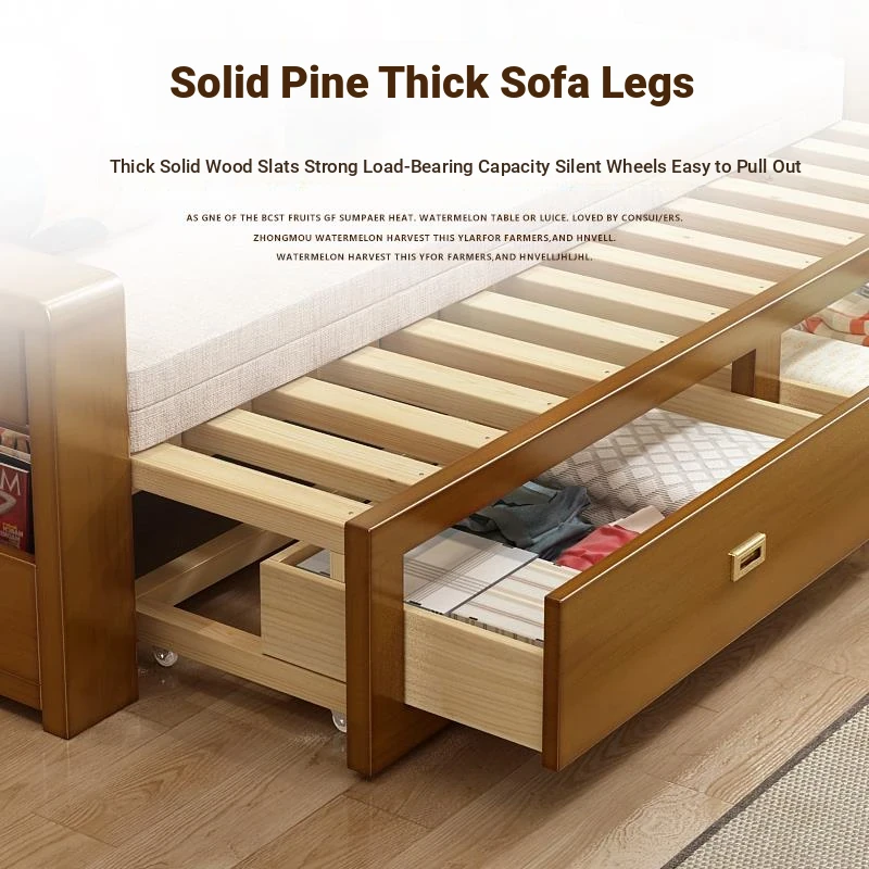 【Free Shipping to Hong Kong】New Chinese Style Sofa Bed with Storage - Expandable, Fabric and Solid Wood, Foldable, Space-Saving Multi-Functional Design for Small Apartments