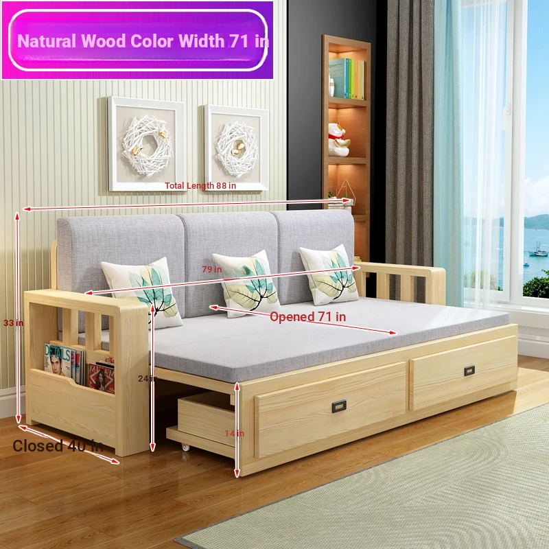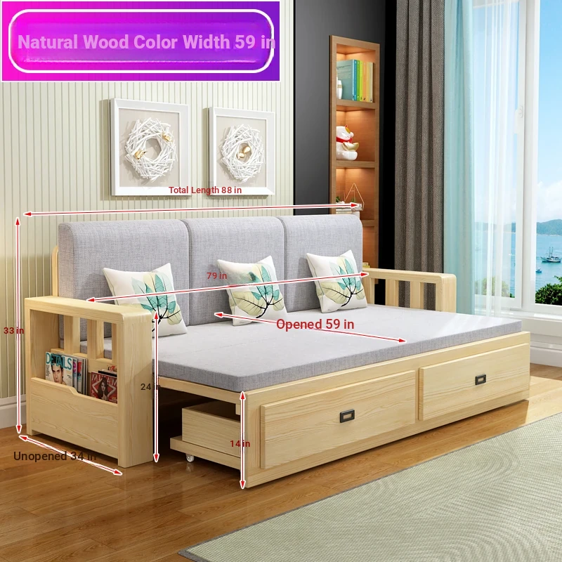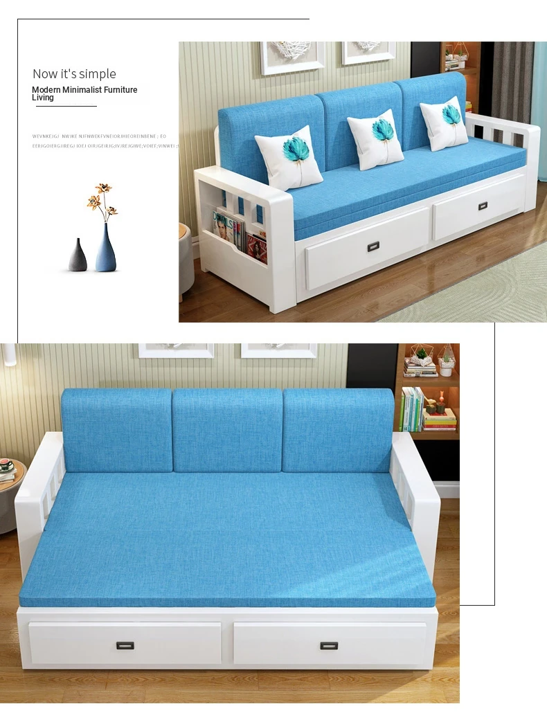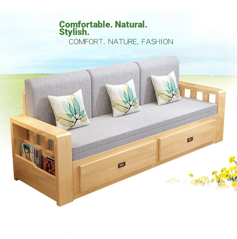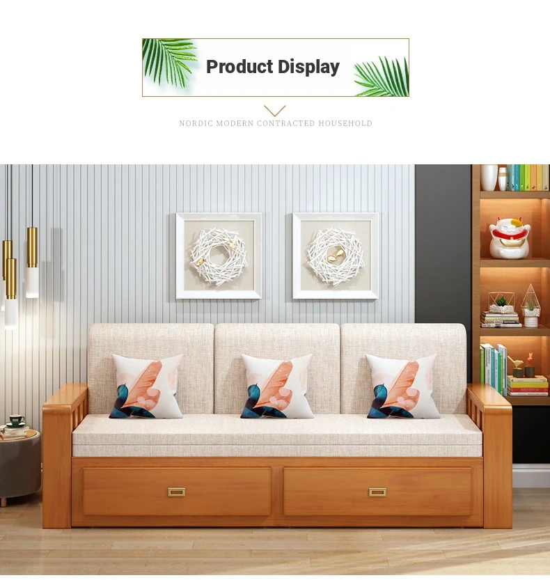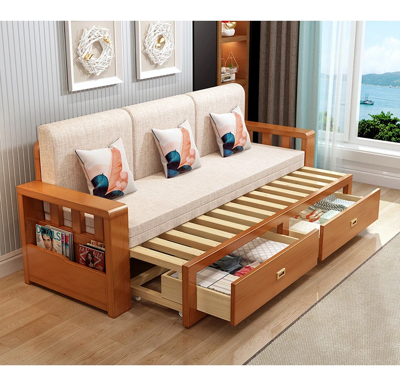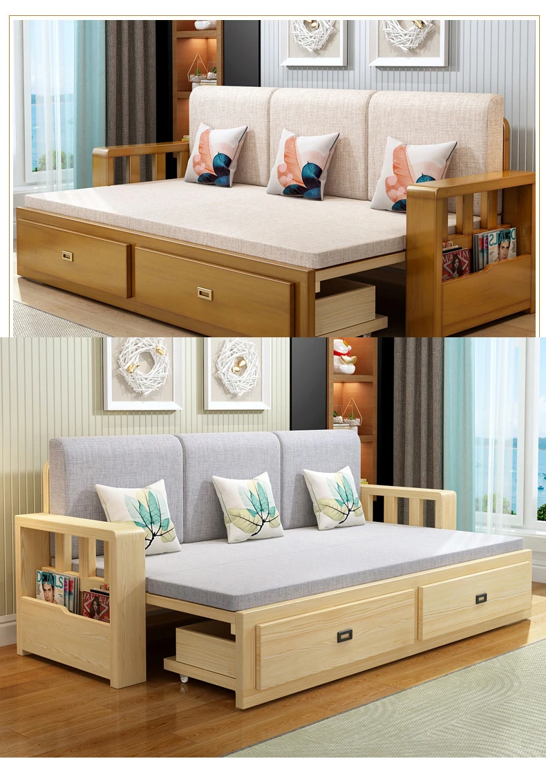 【Free Shipping to Hong Kong】New Chinese Style Sofa Bed with Storage - Expandable, Fabric and Solid Wood, Foldable, Space-Saving Multi-Functional Design for Small Apartments
