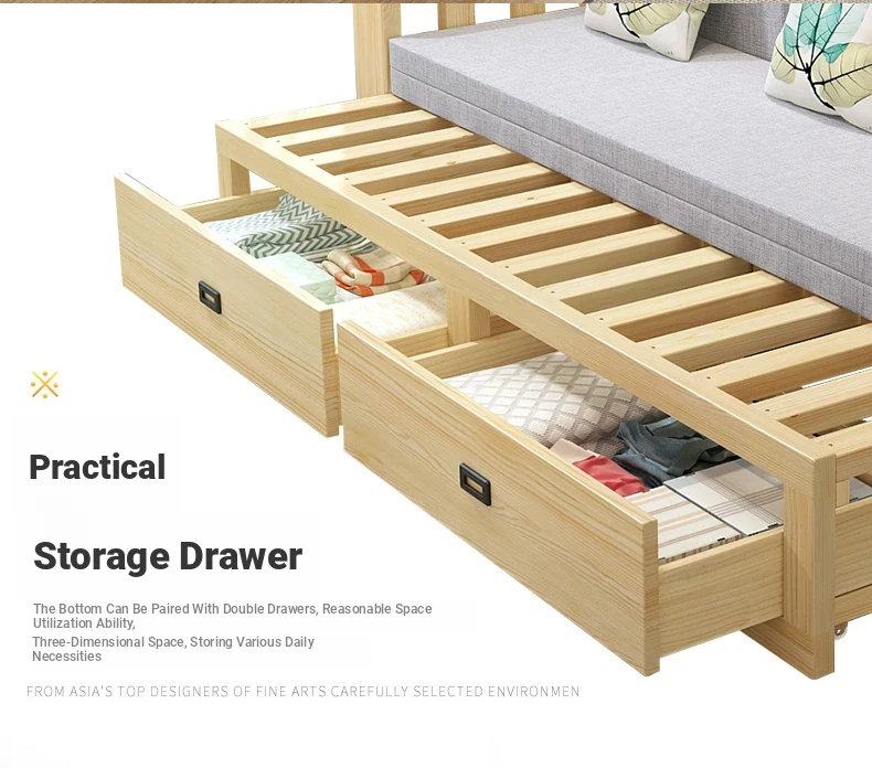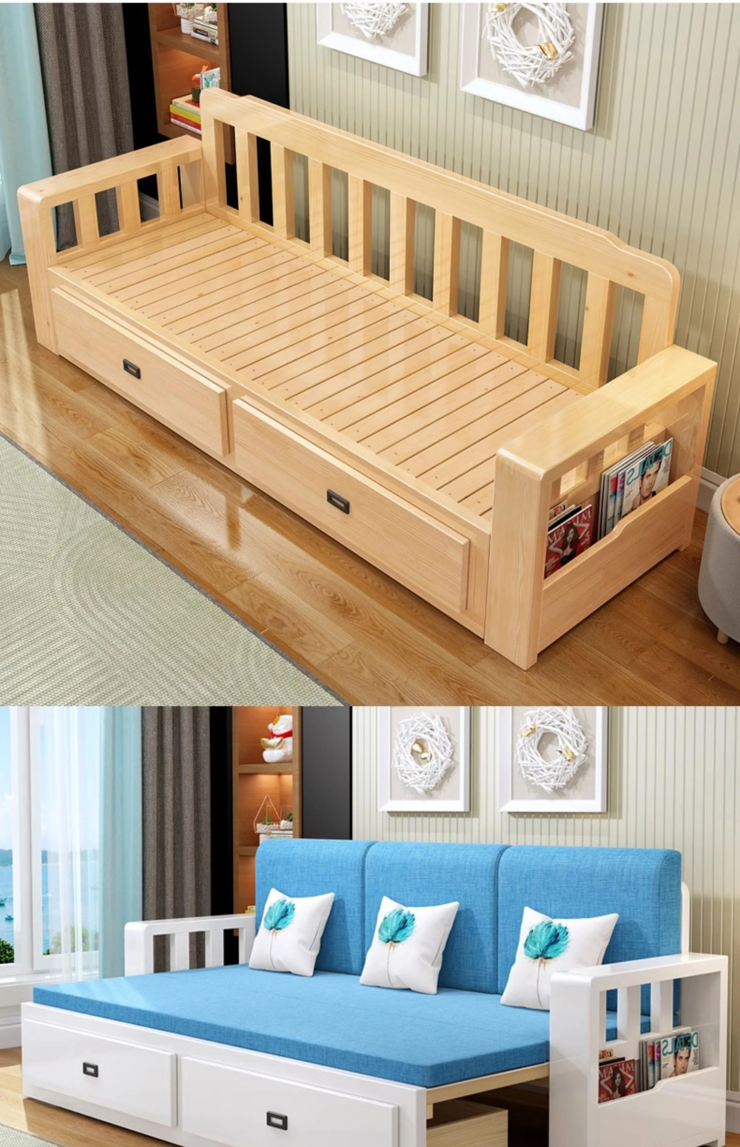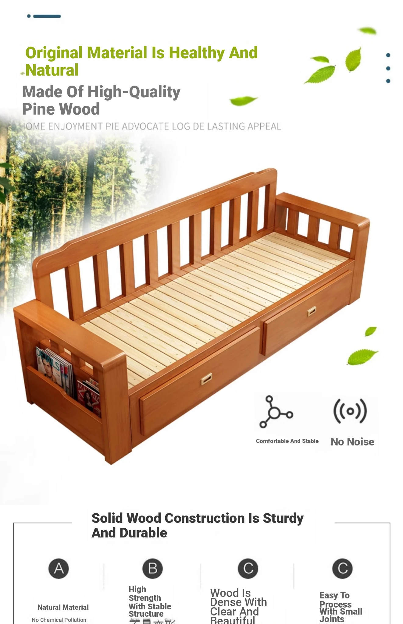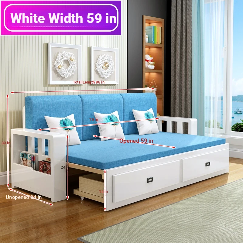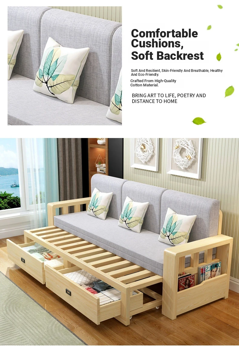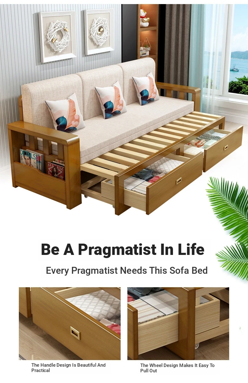 【Free Shipping to Hong Kong】New Chinese Style Sofa Bed with Storage - Expandable, Fabric and Solid Wood, Foldable, Space-Saving Multi-Functional Design for Small Apartments