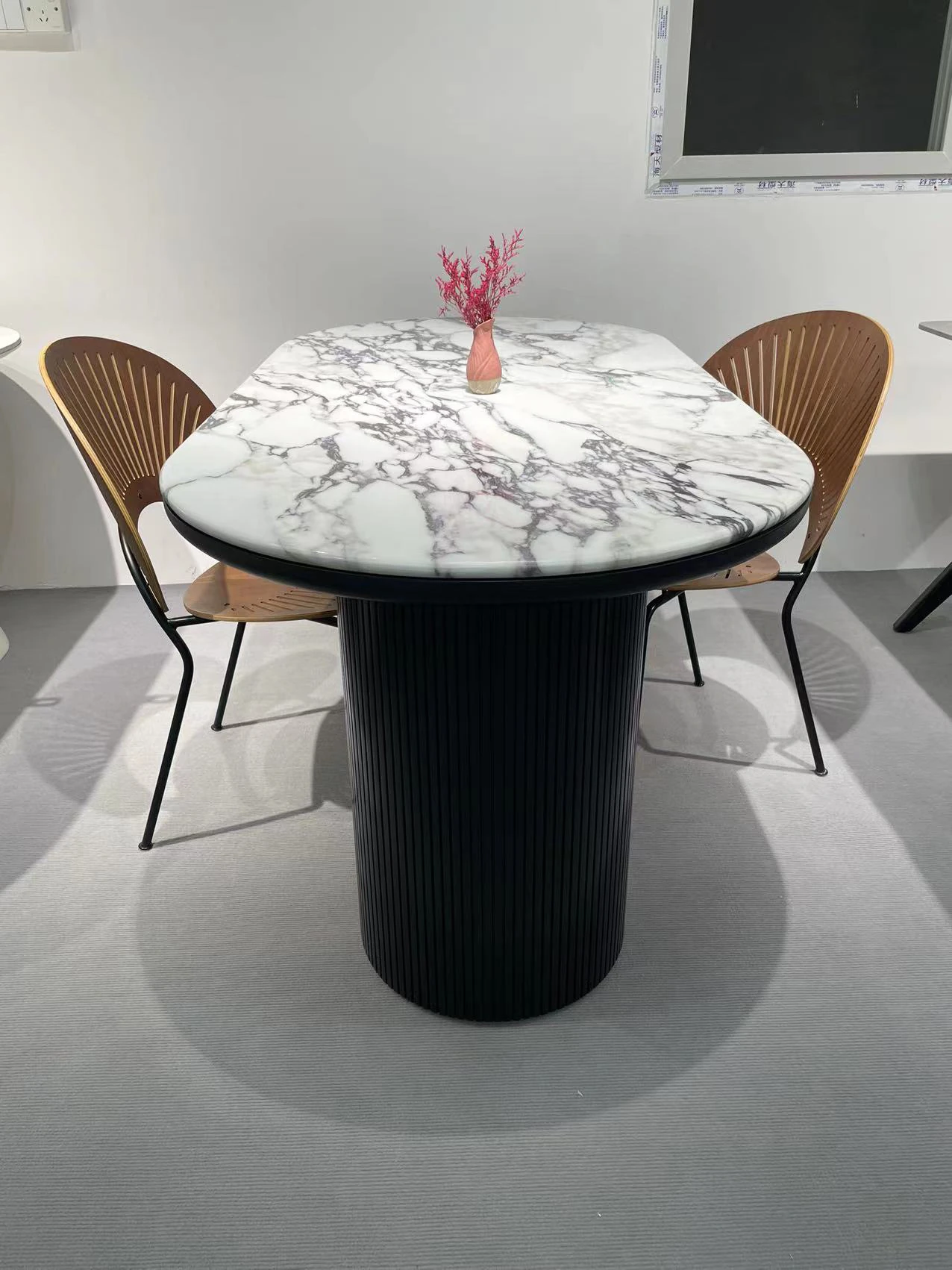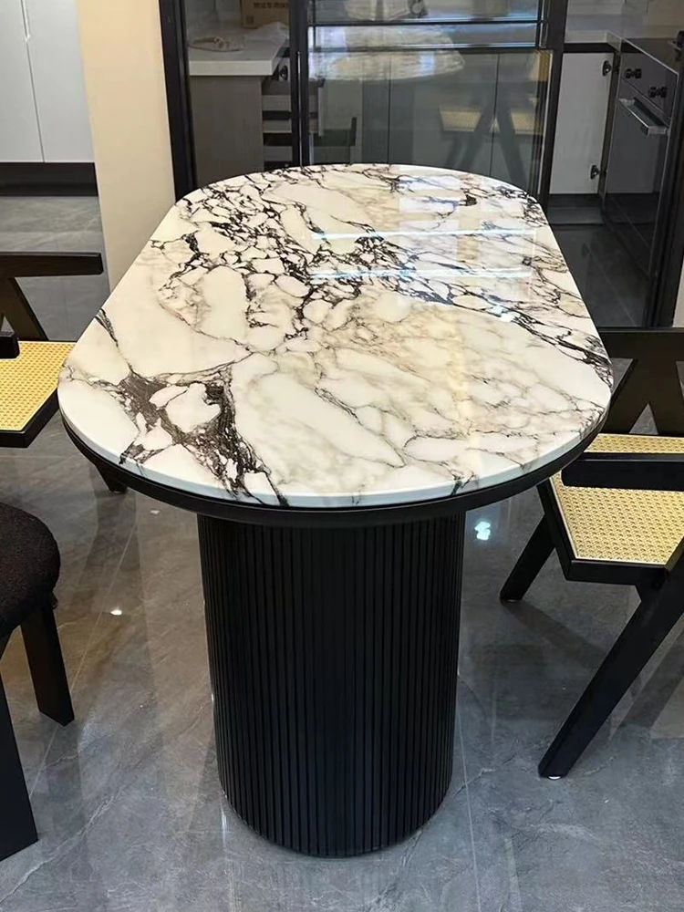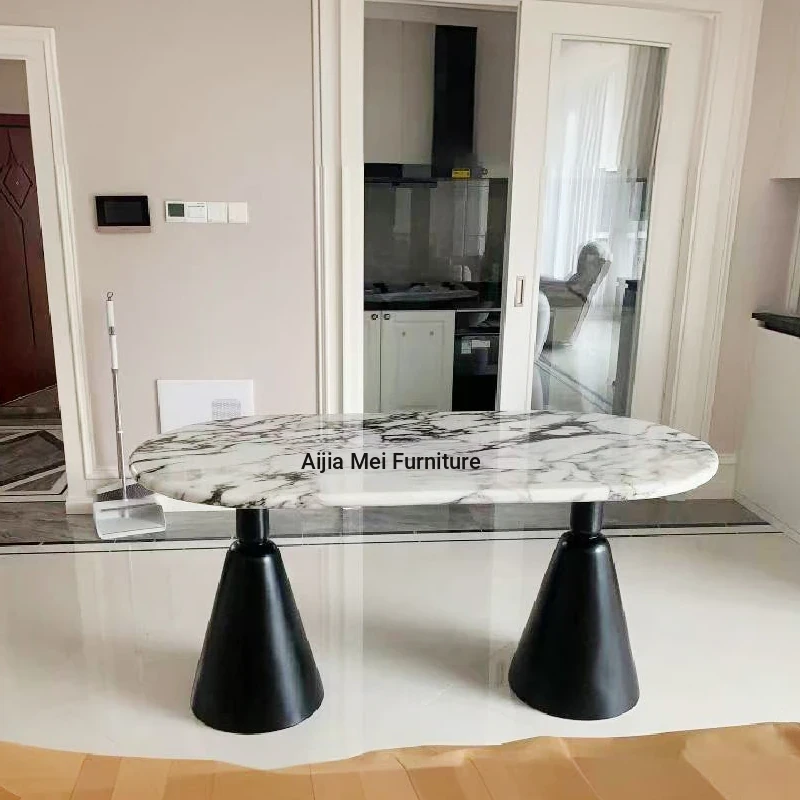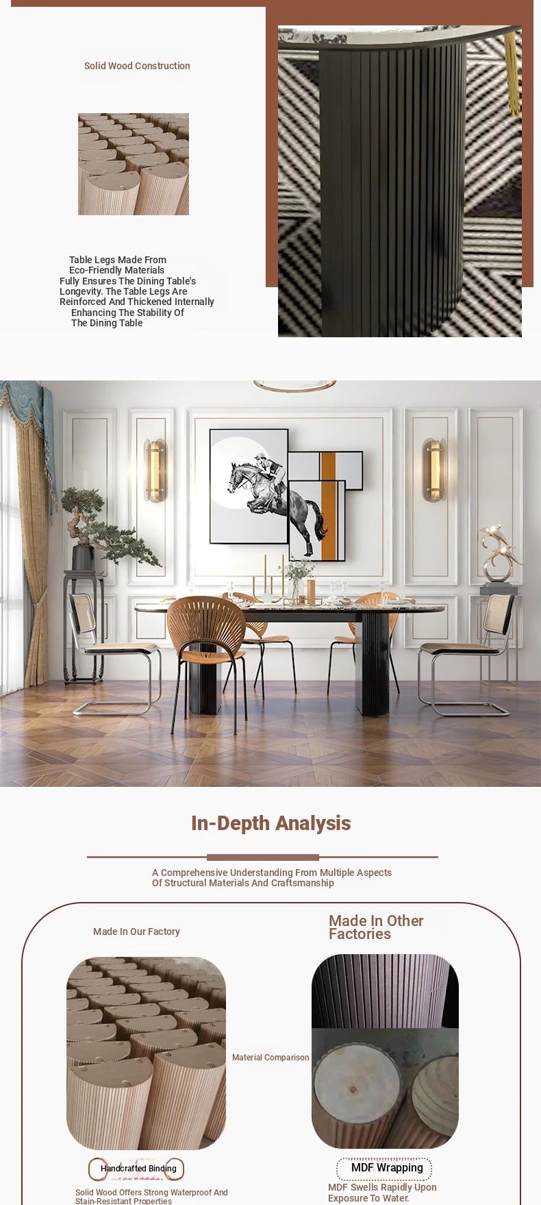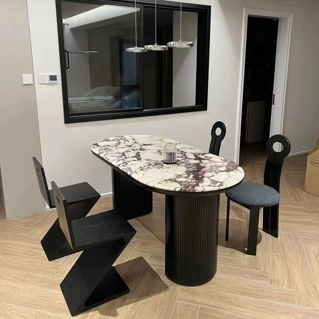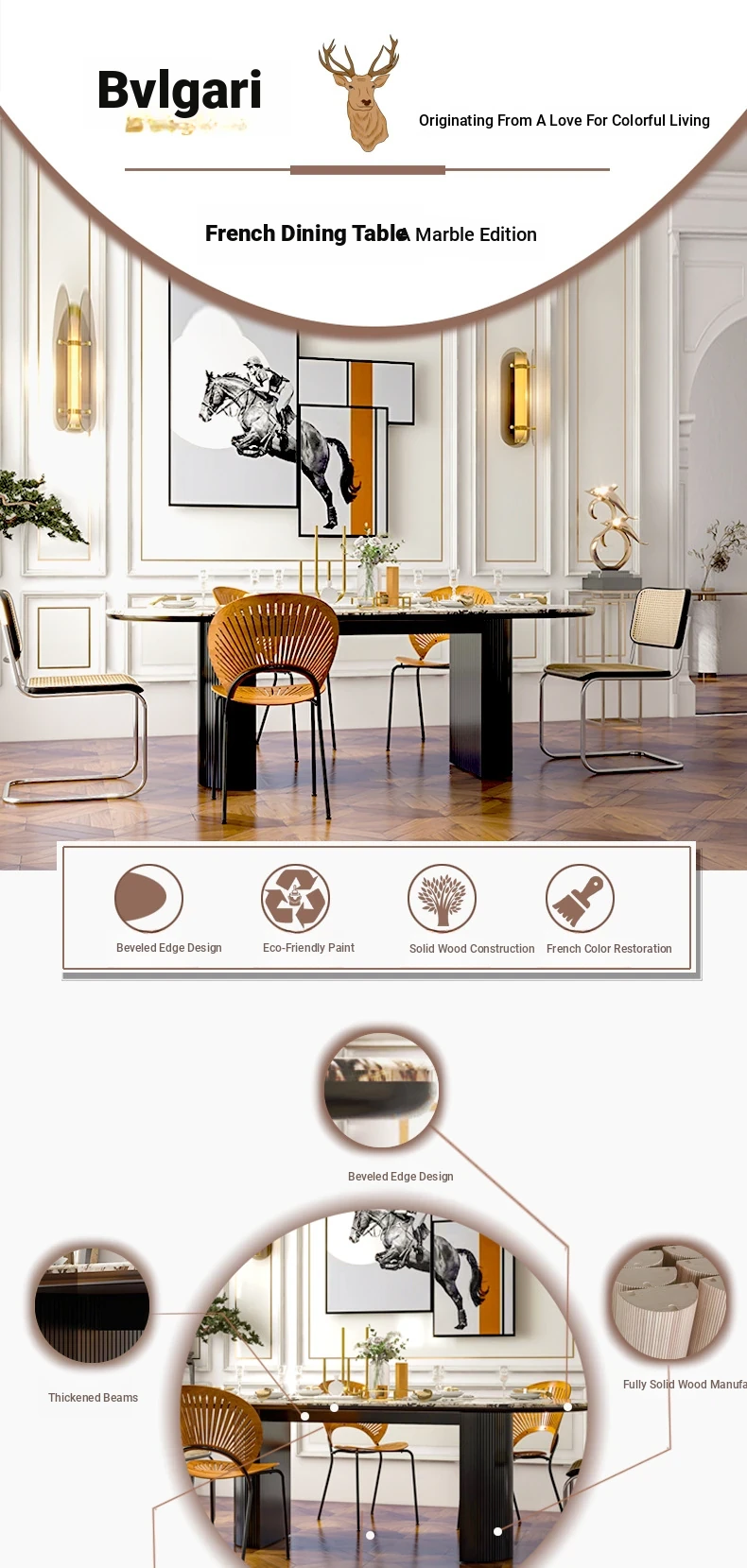 French Elegant Natural Marble Dining Table - Luxurious Design, Perfect for Influencers and High-End Dining Experiences, Sturdy Solid Wood Construction, Ideal for Stylish Homes.