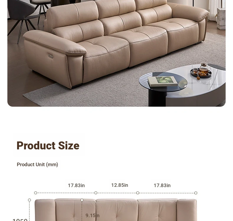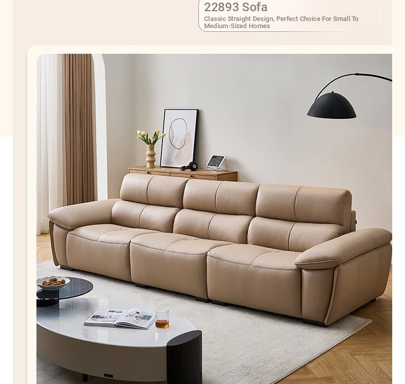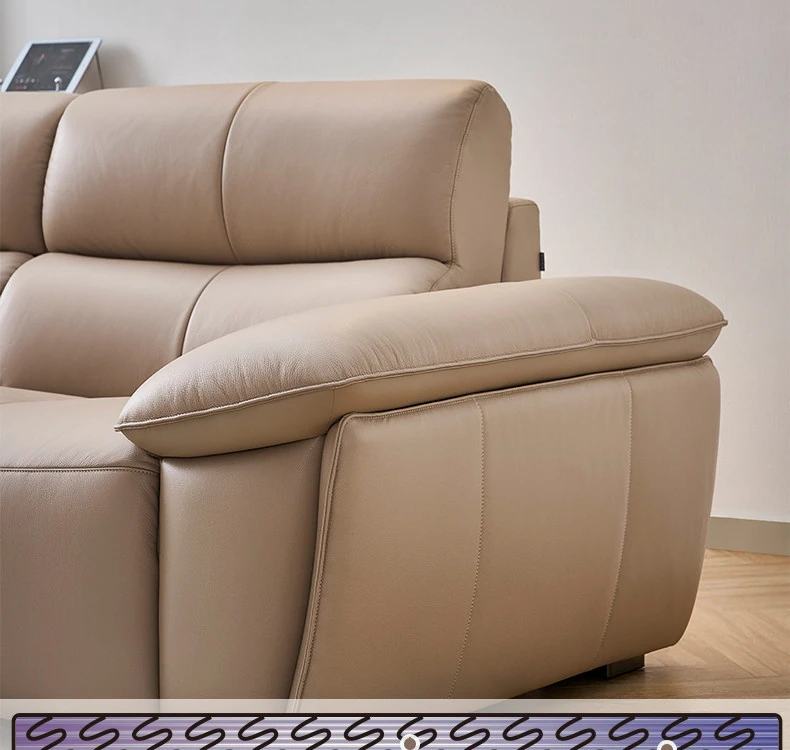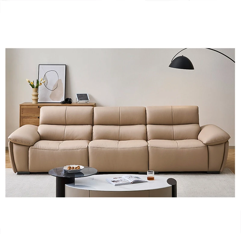 Fullhouse Furniture Store's 2289G3 Imported Top Layer Yellow Cowhide Sofa - Stylish and Minimalist Design, Perfect for Wall Placement, Functional and Elegant.
