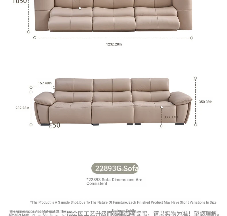 22893G electric leather sofa (left 1 + middle 1 + right 1 function) 3 pieces