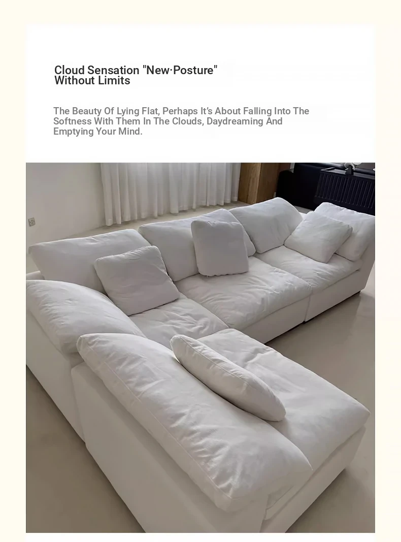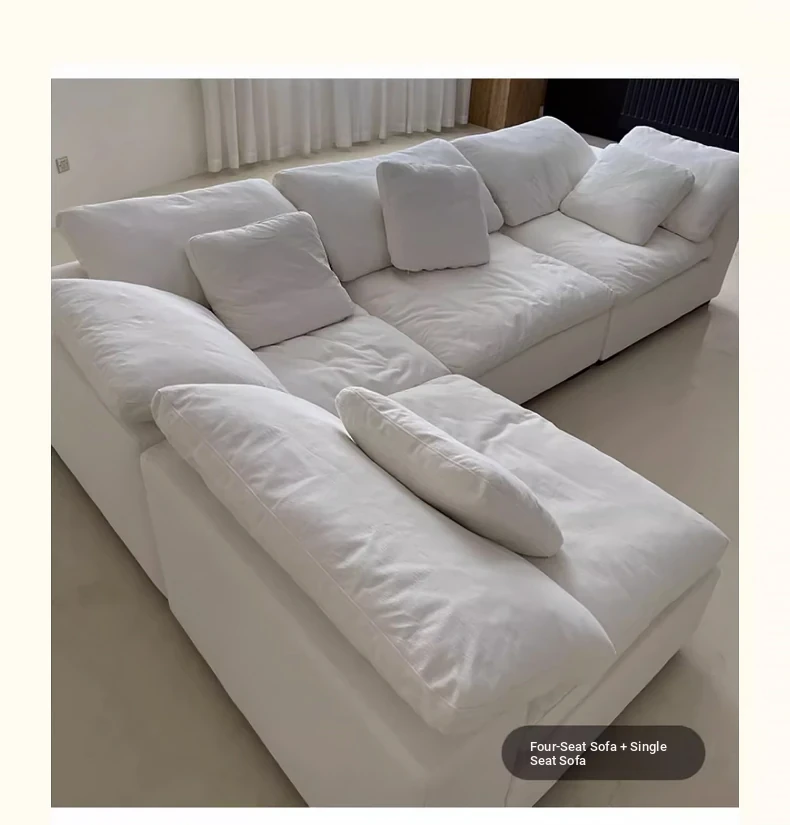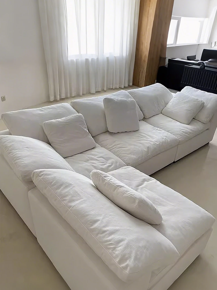 Fuyou Cloud Modular Sofa - Designer Cream Wabi-Sabi Style with Down Filling, Linen Fabric, and Flexible Configurations for Ultimate Comfort and Style