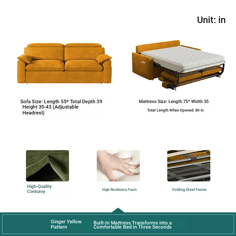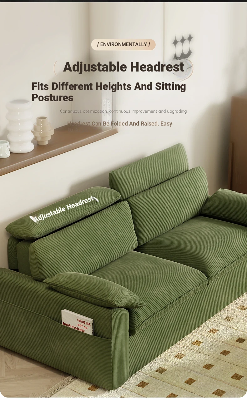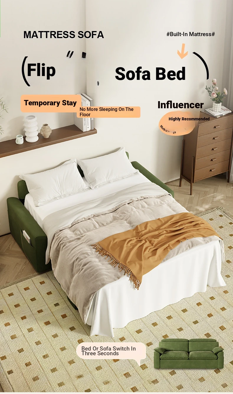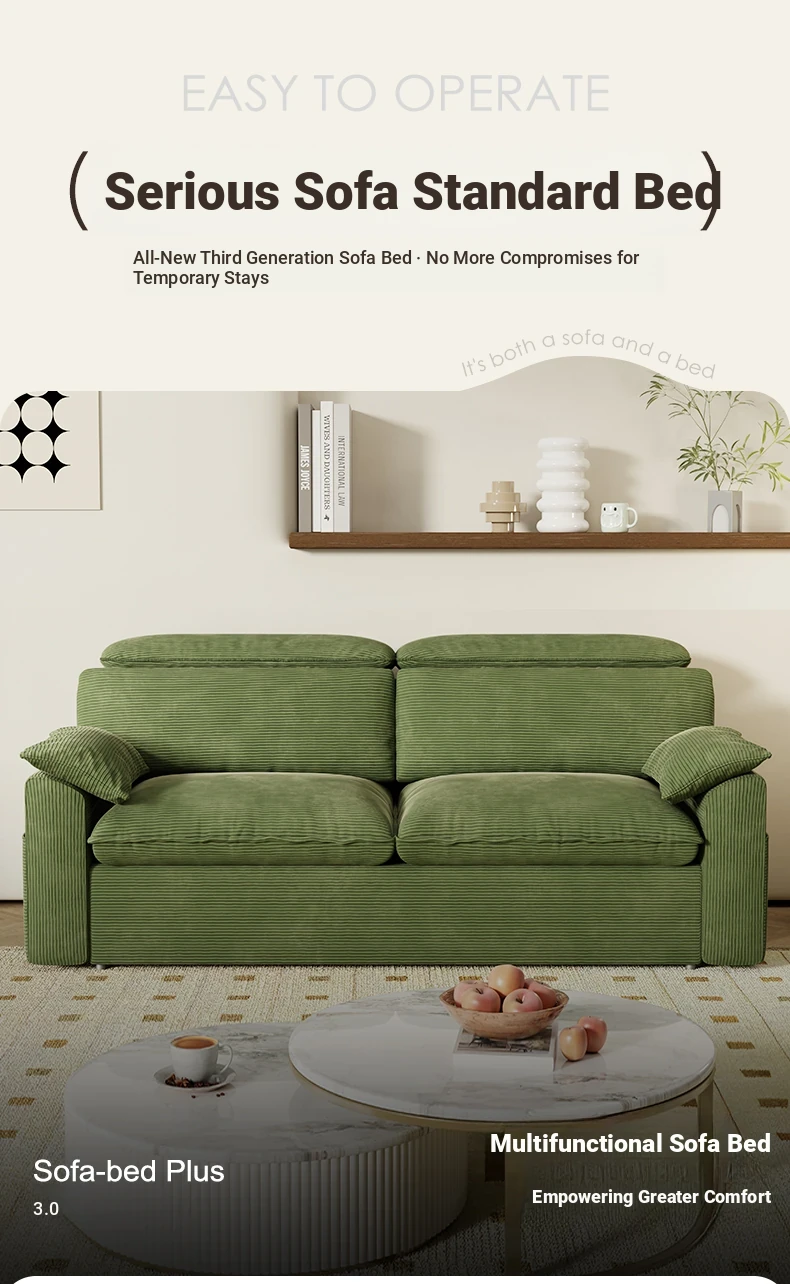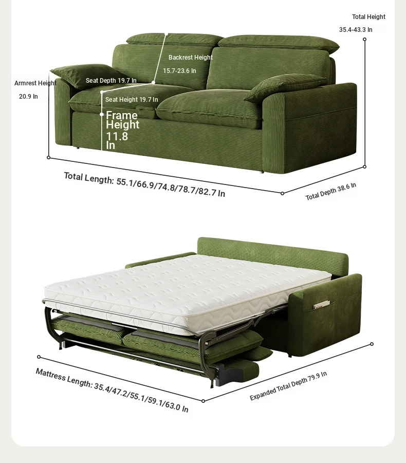 Green Corduroy Convertible Sofa Bed with Built-in Mattress - 2-in-1 Foldable Design, 2025 New Model with Headrest for Ultimate Comfort and Style