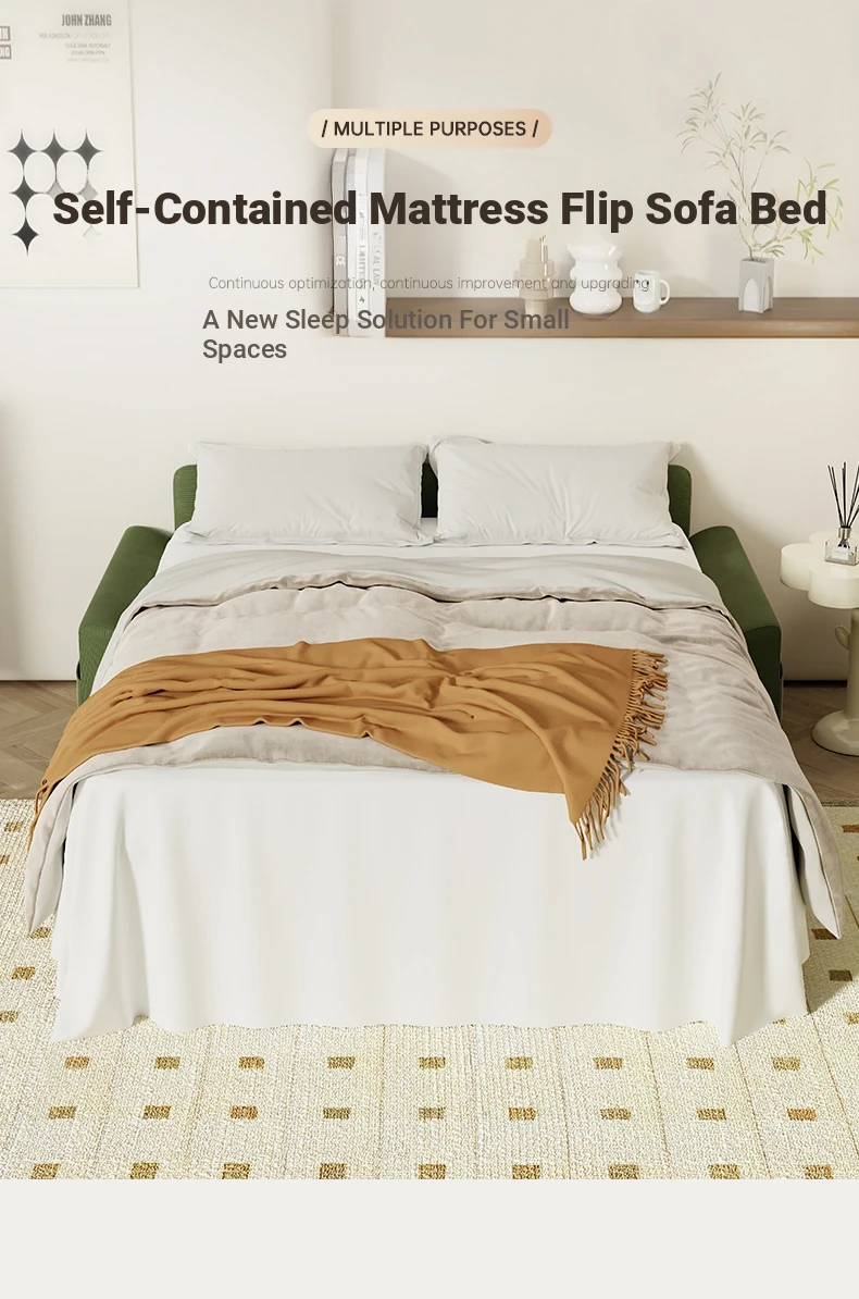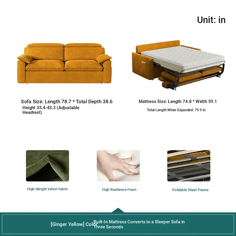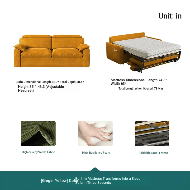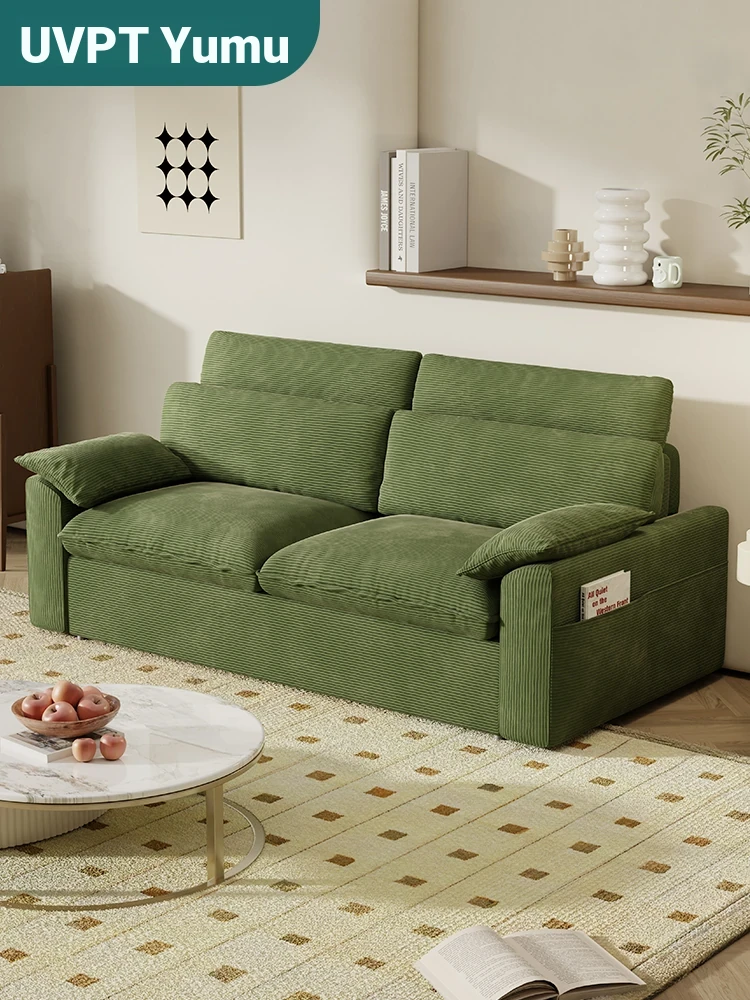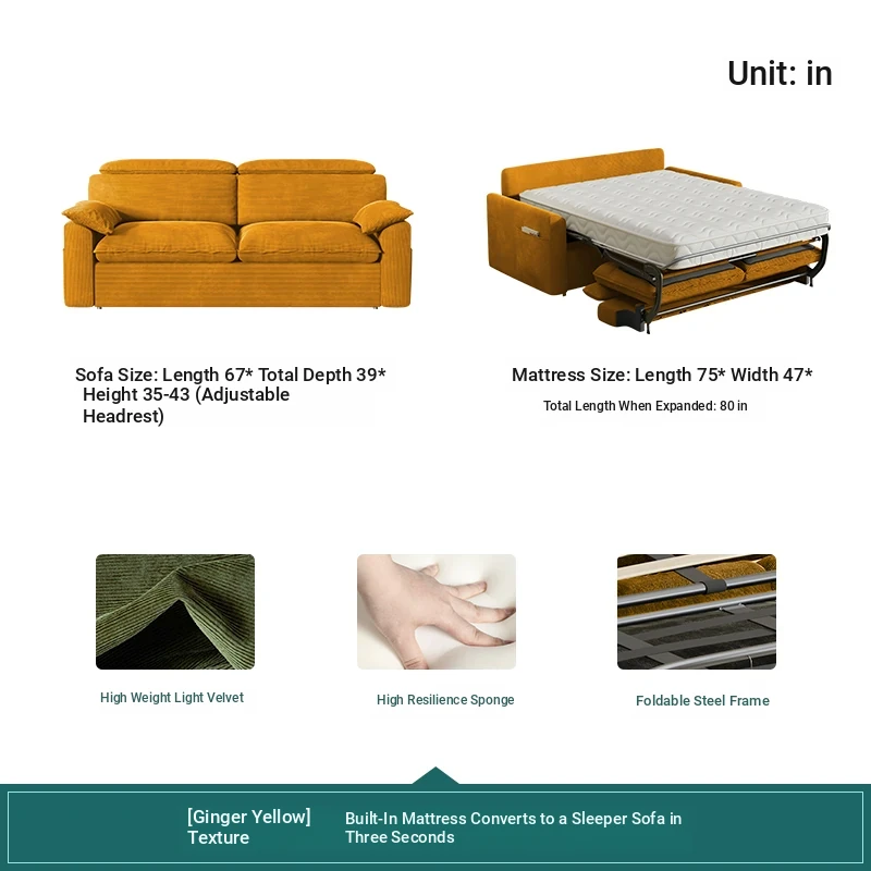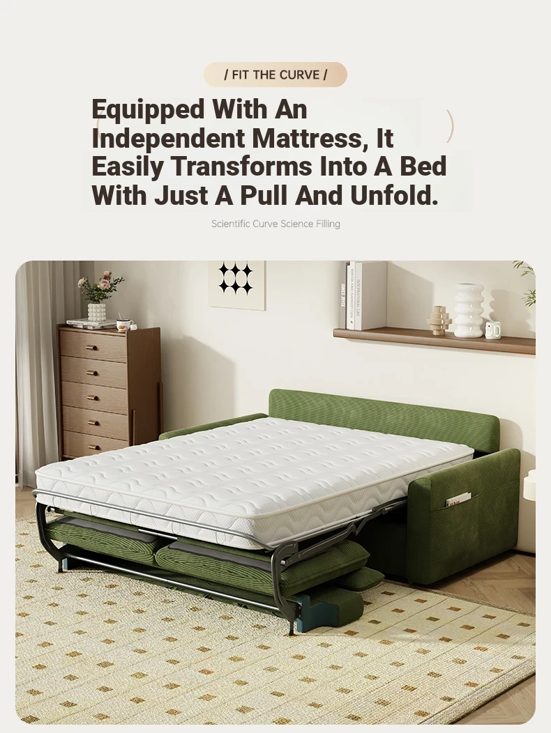 Green Corduroy Convertible Sofa Bed with Built-in Mattress - 2-in-1 Foldable Design, 2025 New Model with Headrest for Ultimate Comfort and Style