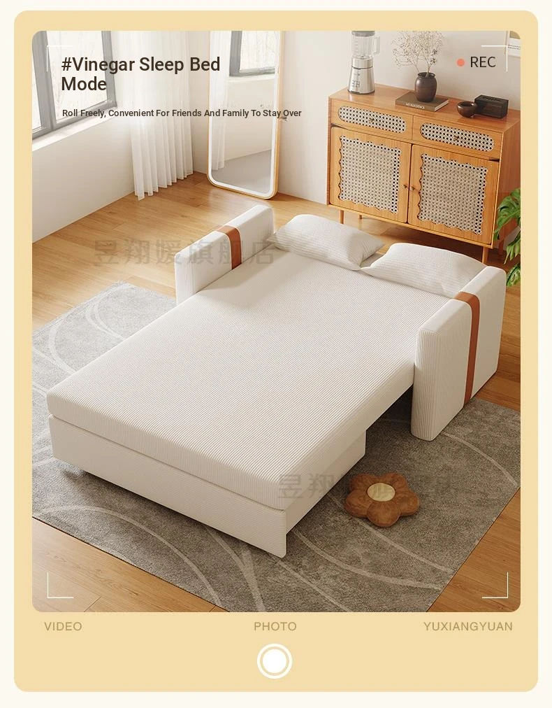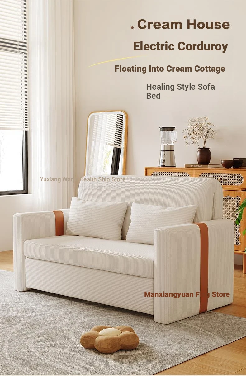 Hong Kong Cream-Style Electric Folding Sofa Bed for Small Apartments - Convenient Pull-Out Design for Living Room and Bedroom Delivery