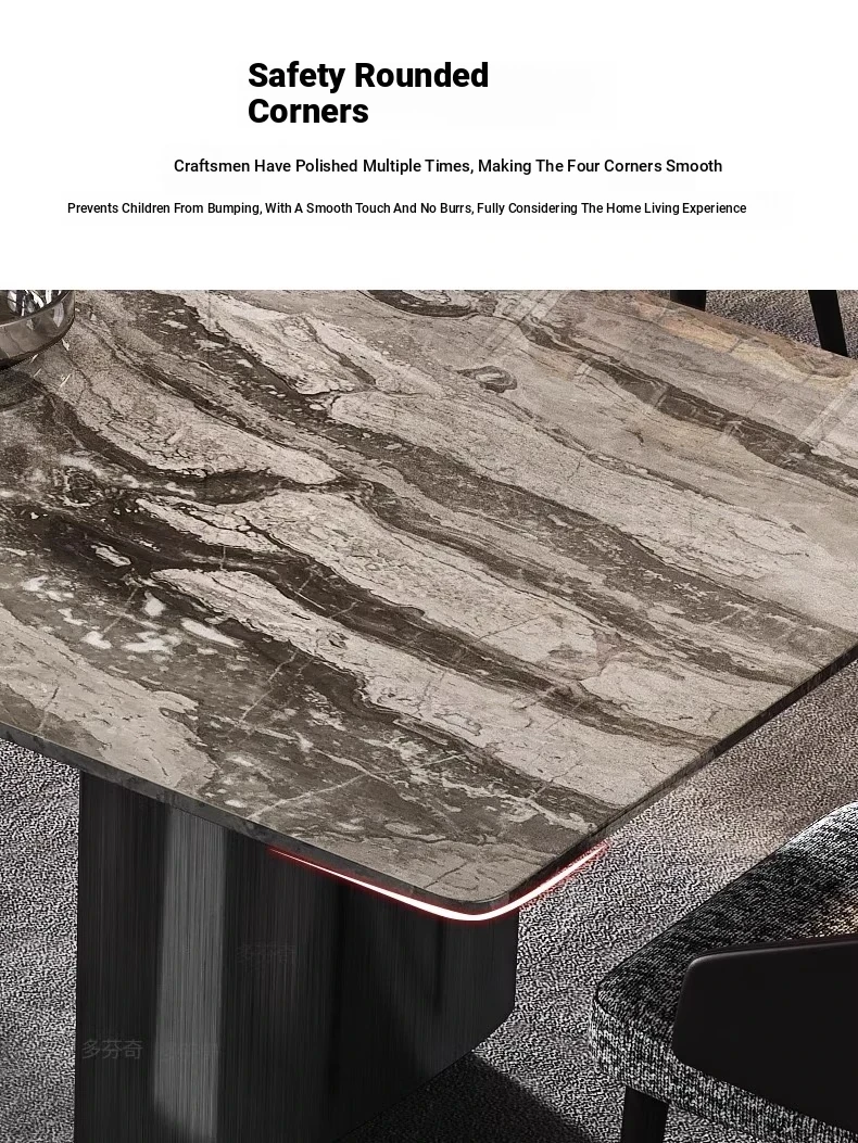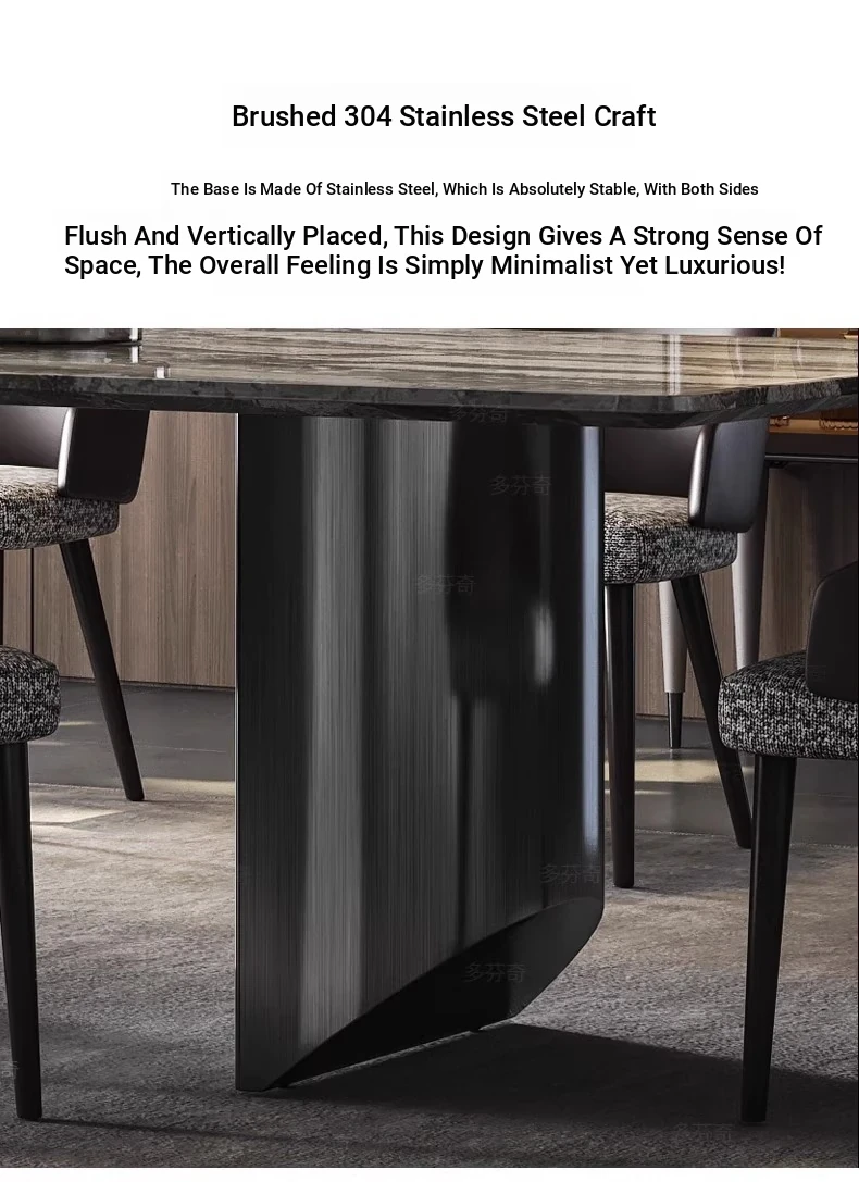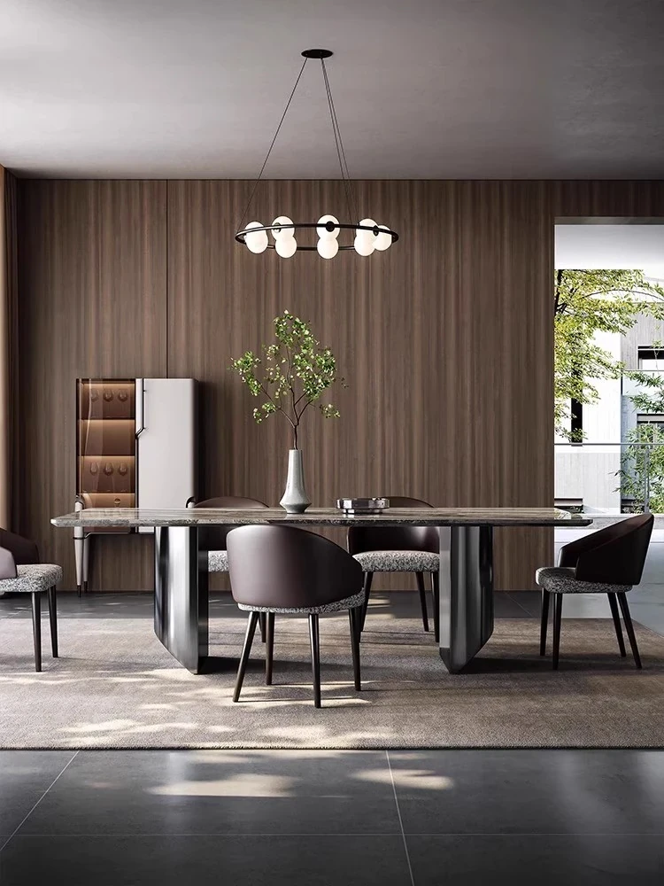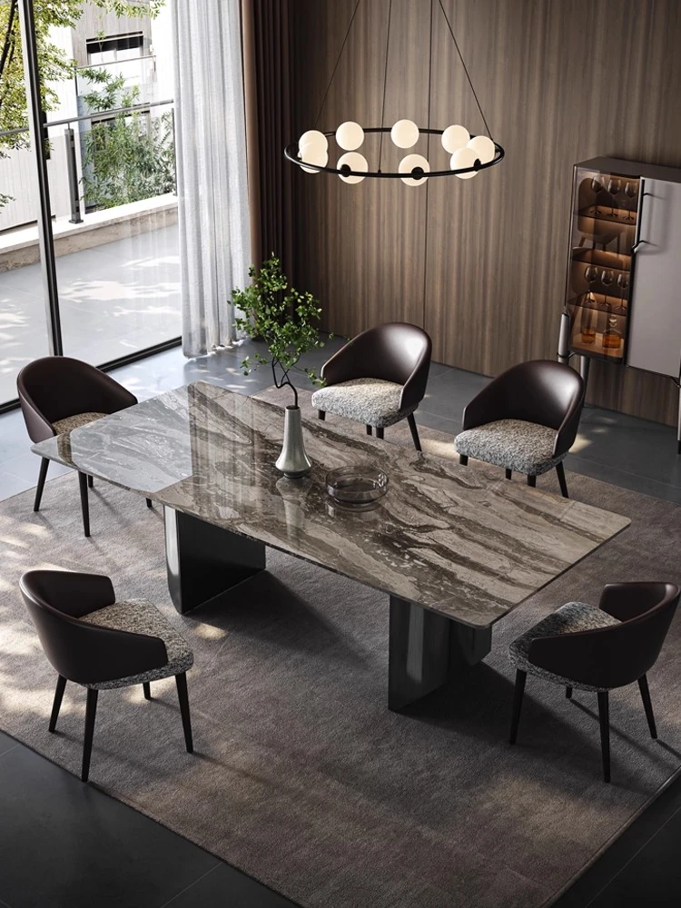 Italian Luxury Natural Venetian Brown Marble Dining Table and Chair Set - Modern Minimalist Rectangular Dining Table for Home Use