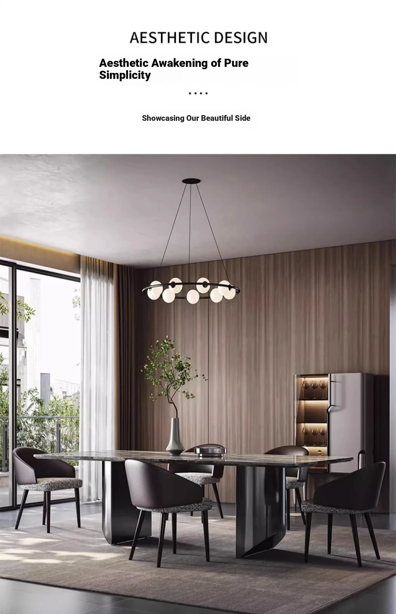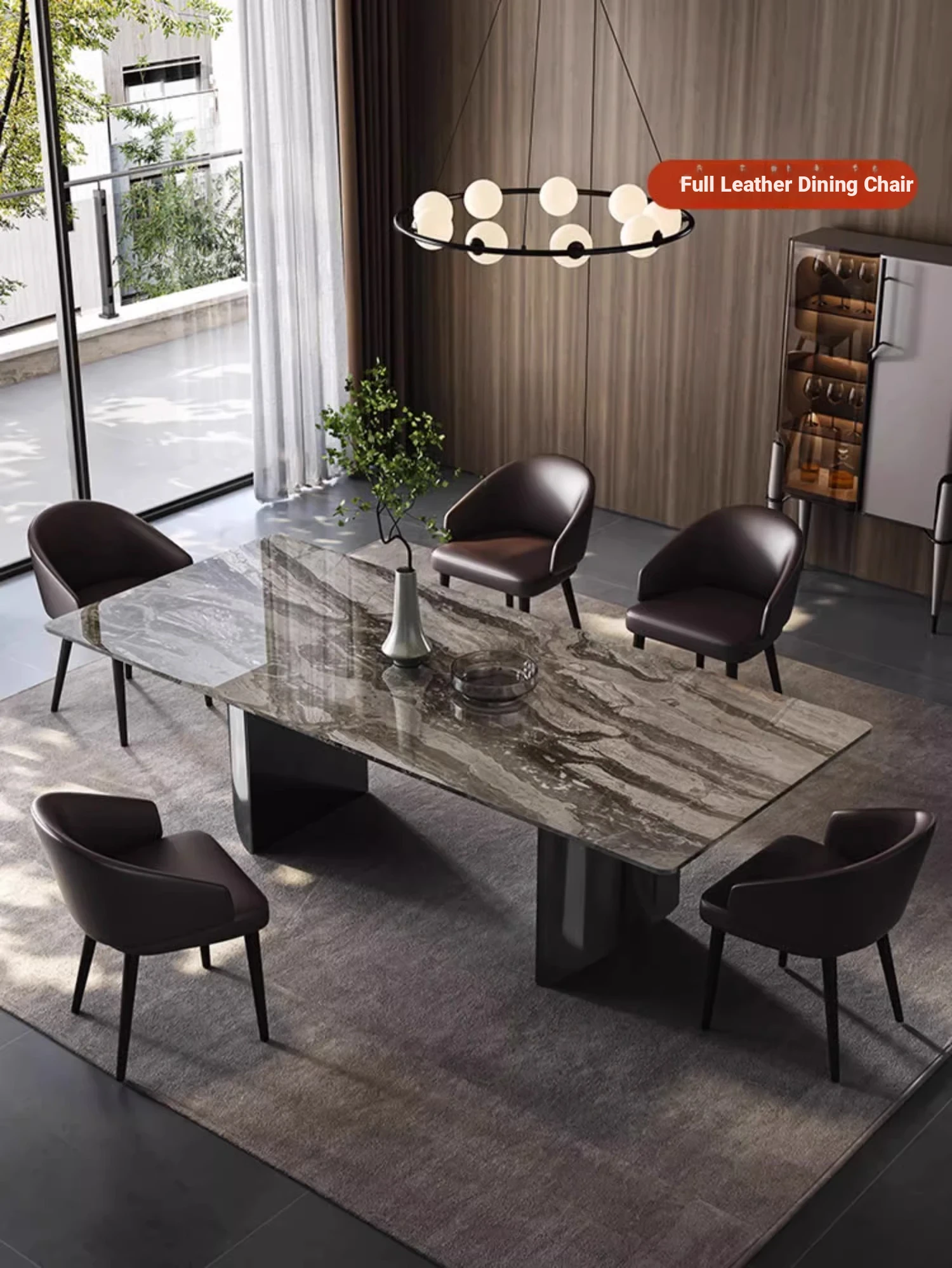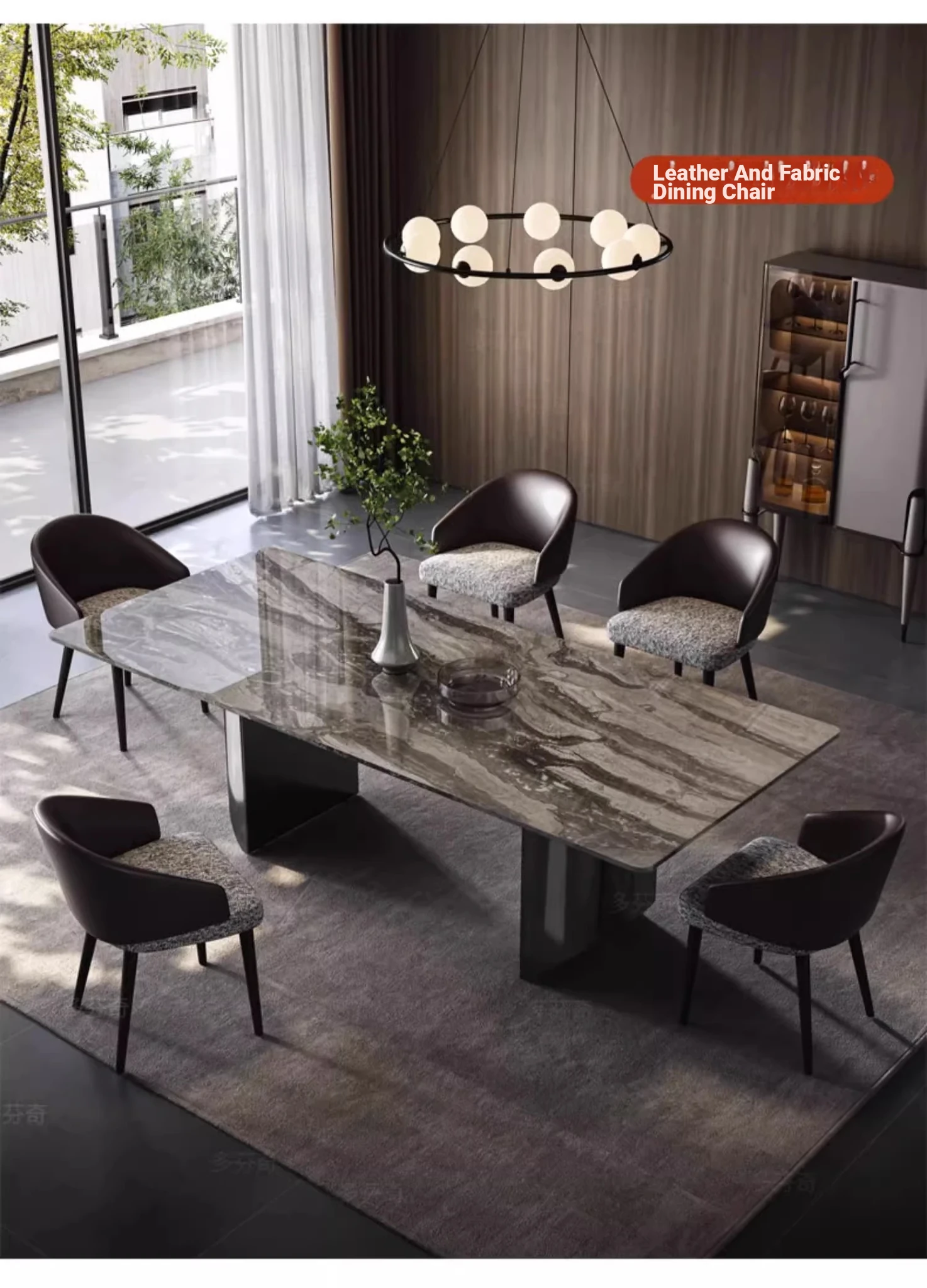 Italian Luxury Natural Venetian Brown Marble Dining Table and Chair Set - Modern Minimalist Rectangular Dining Table for Home Use