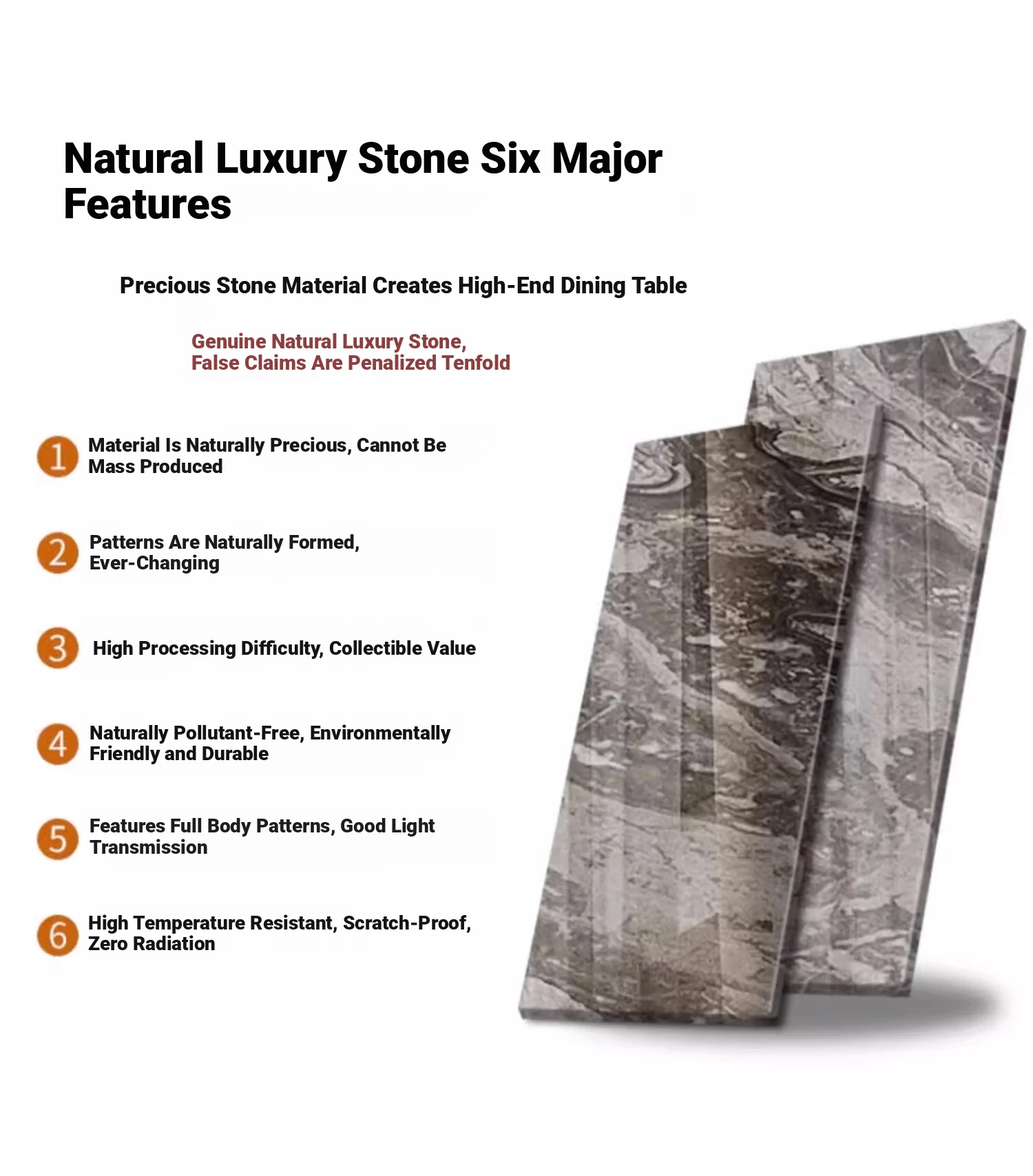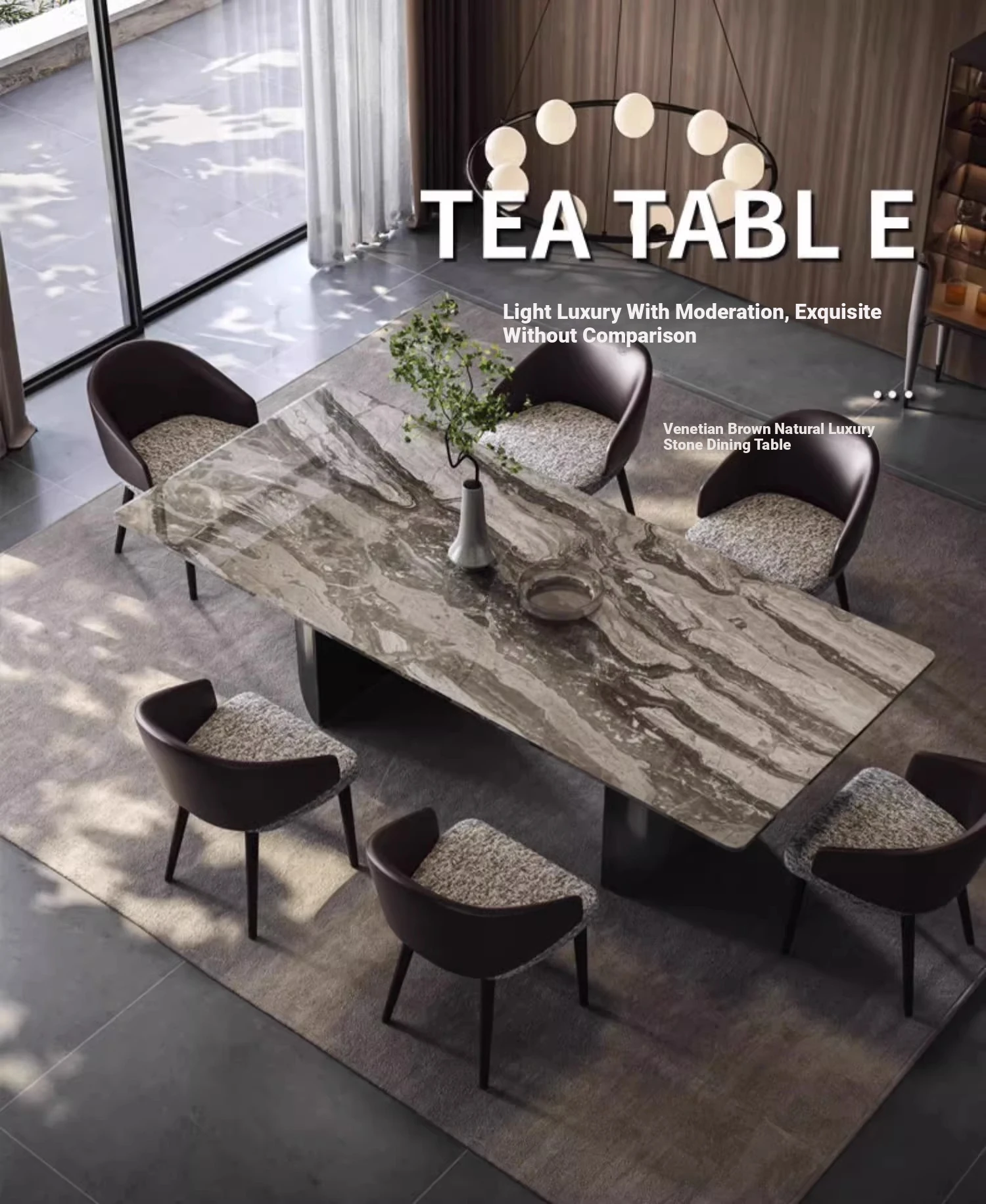86.61in*39.37in +6 chairs natural Venice Brown luxury stone (10 for one fake)