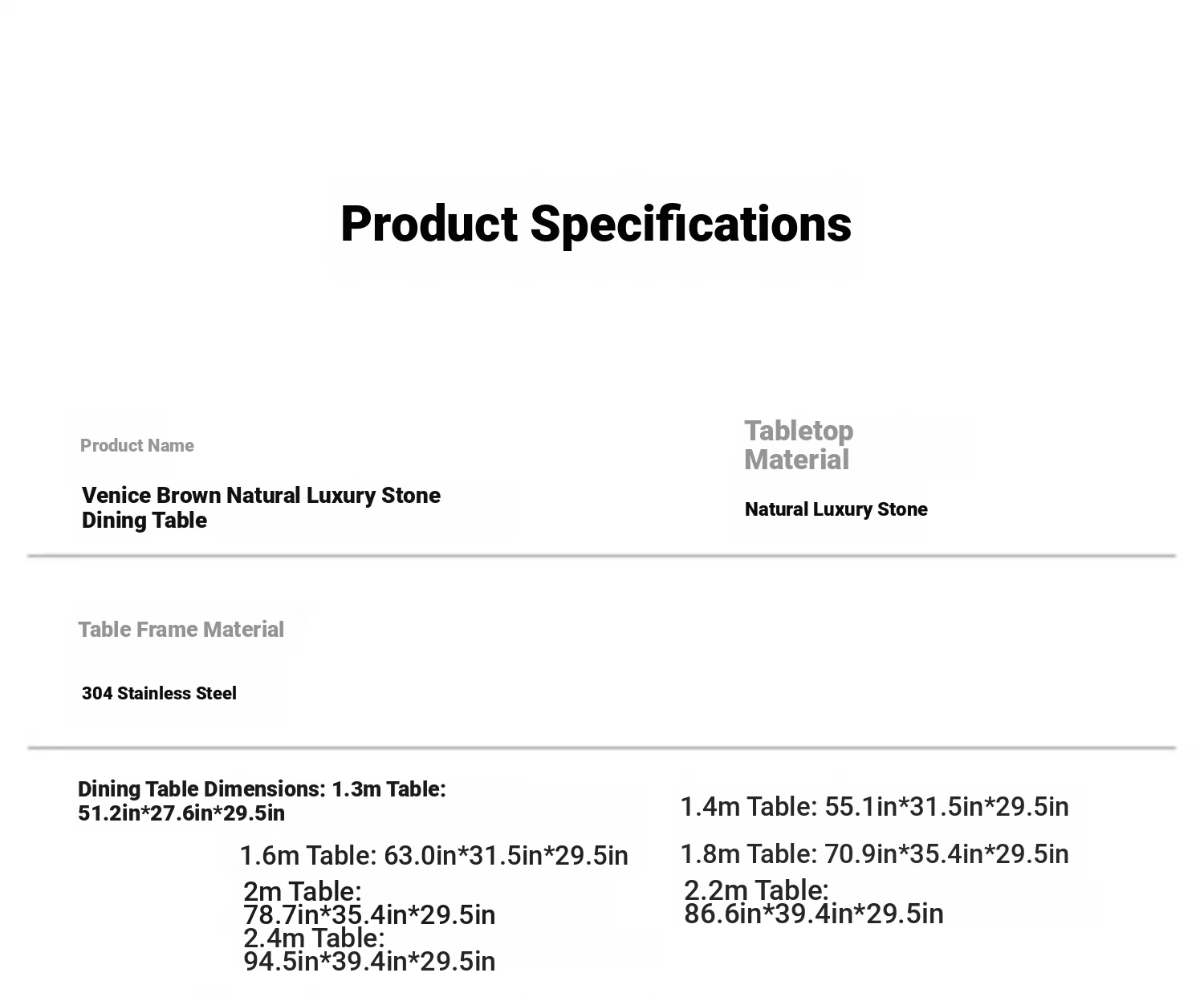94.49in*39.37in +6 chairs natural Venice Brown luxury stone (10 for one fake)