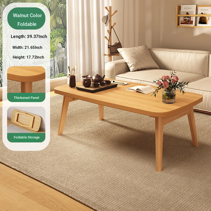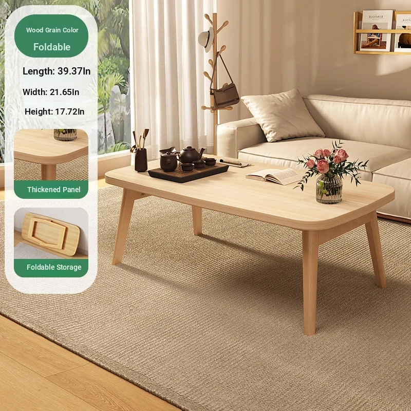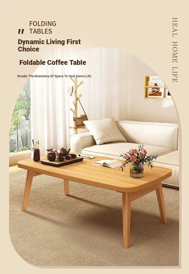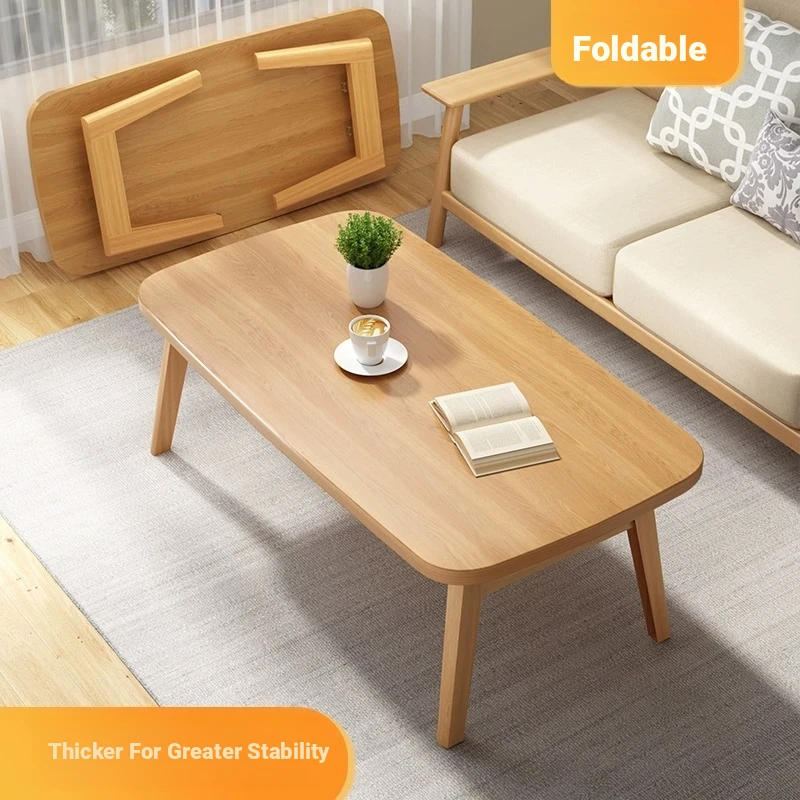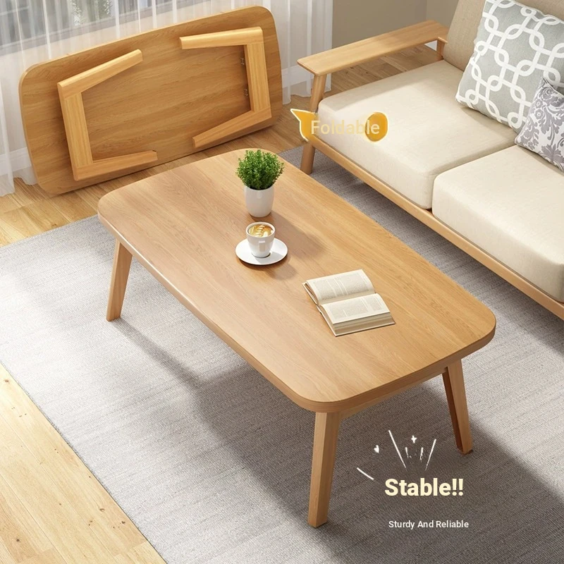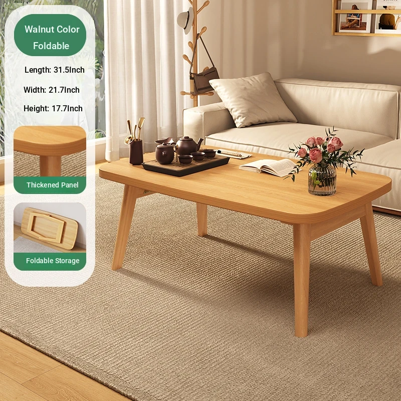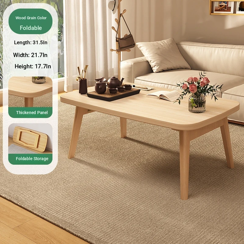 Japanese Minimalist Solid Wood Folding Coffee Table - Compact and Stylish for Small Spaces, Perfect for Balconies and Cozy Living Rooms - Natural Wood Finish