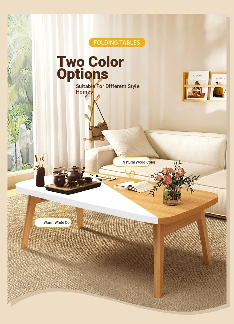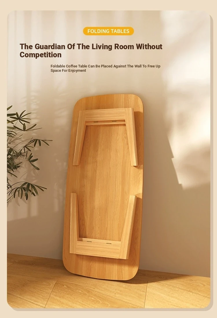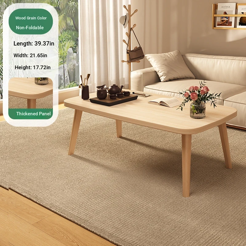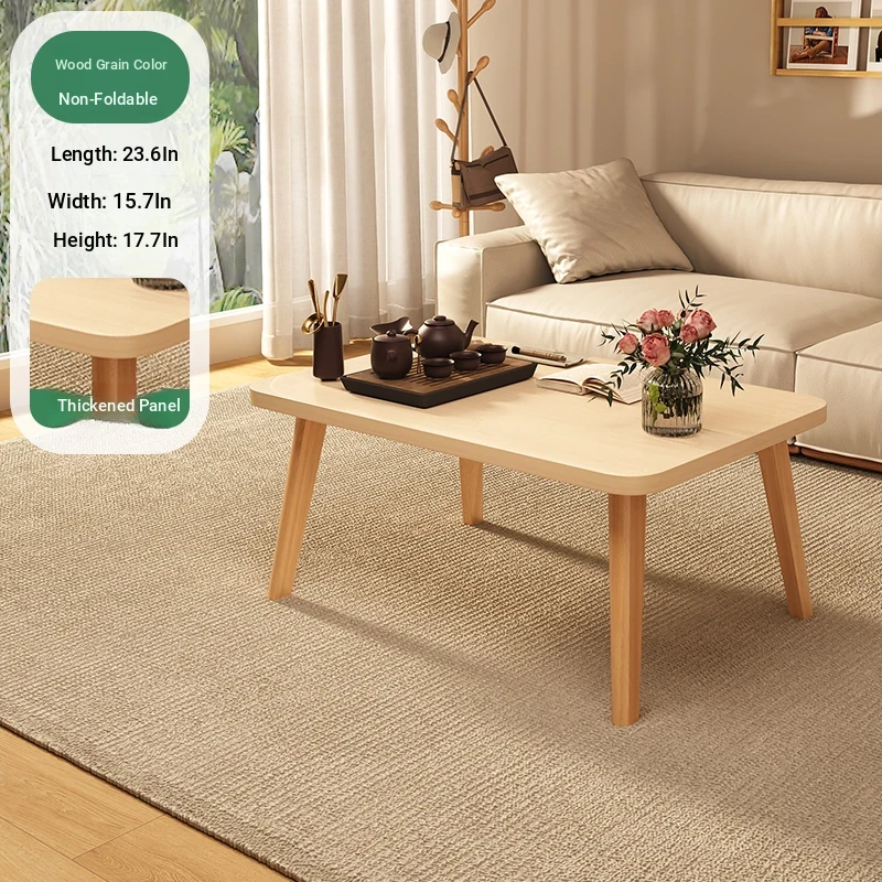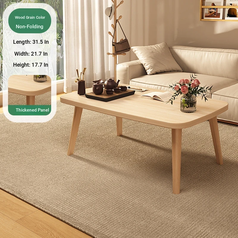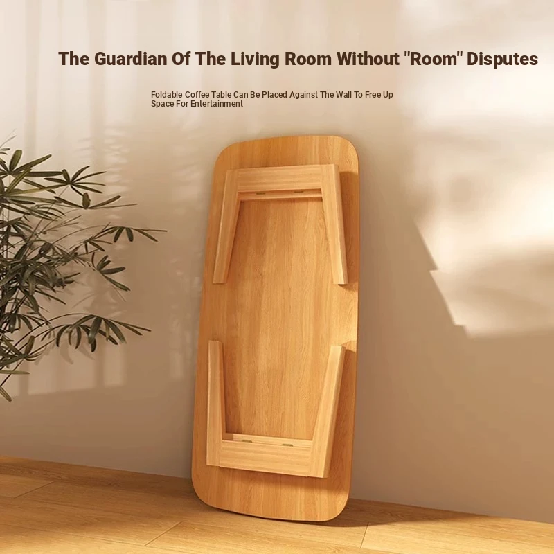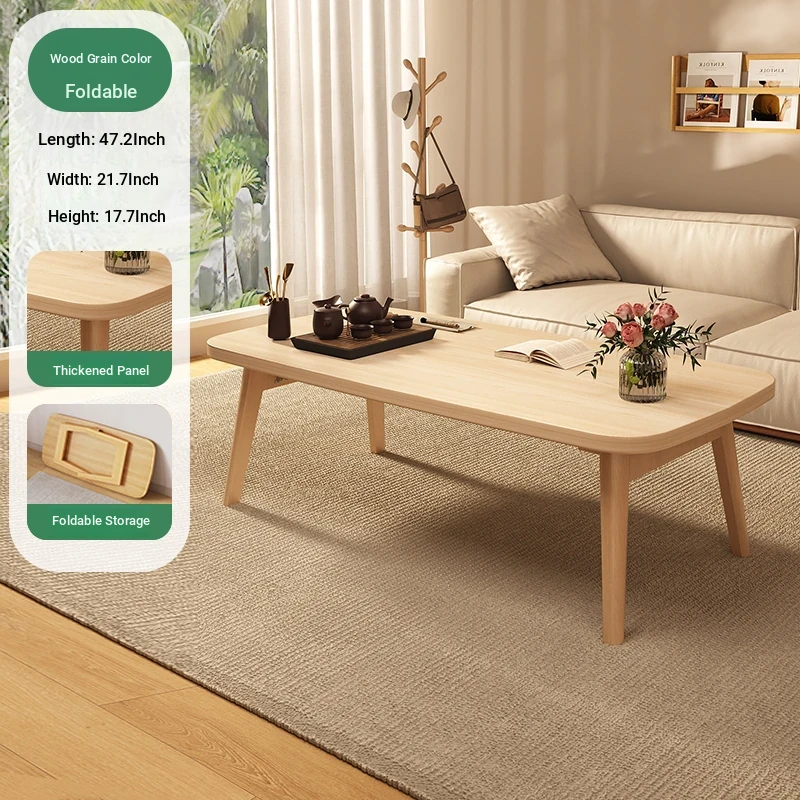 Japanese Minimalist Solid Wood Folding Coffee Table - Compact and Stylish for Small Spaces, Perfect for Balconies and Cozy Living Rooms - Natural Wood Finish