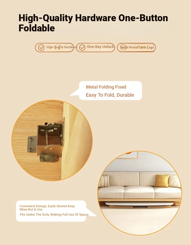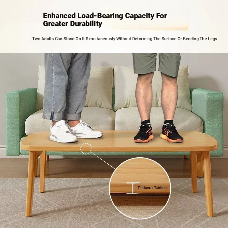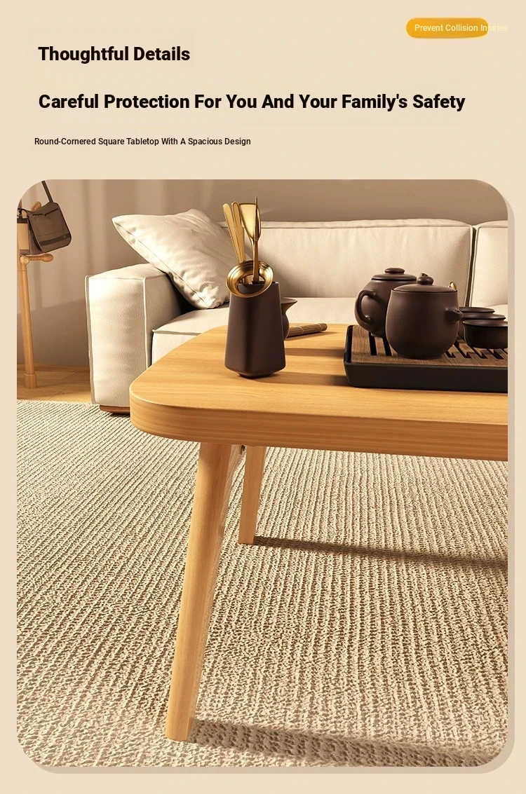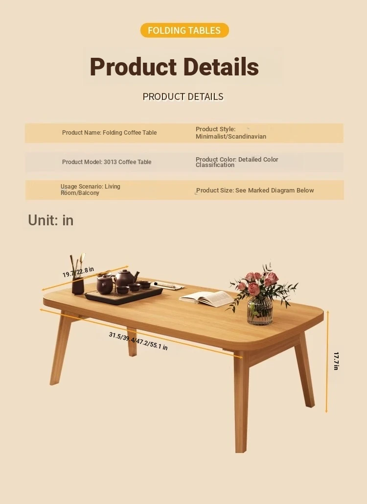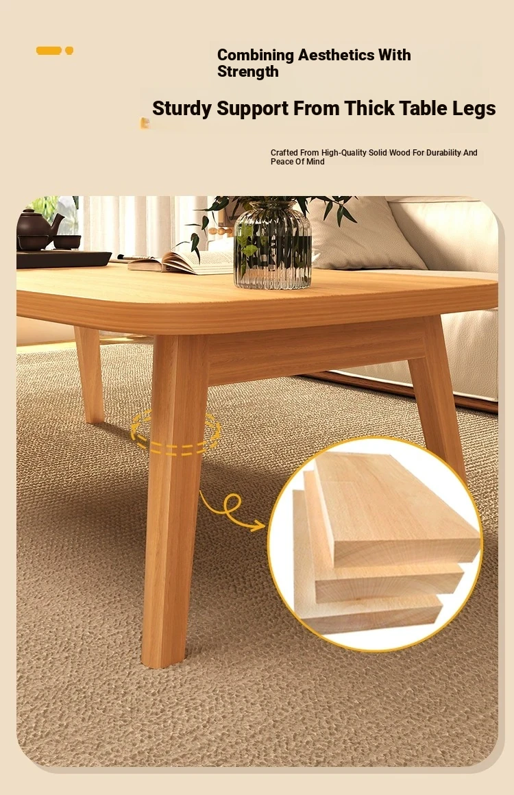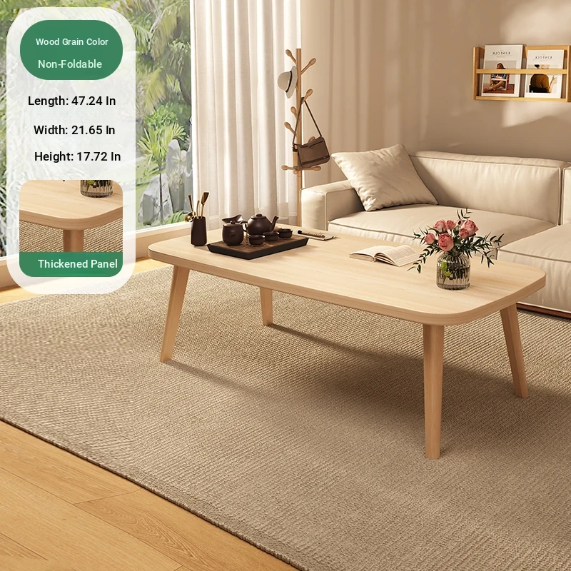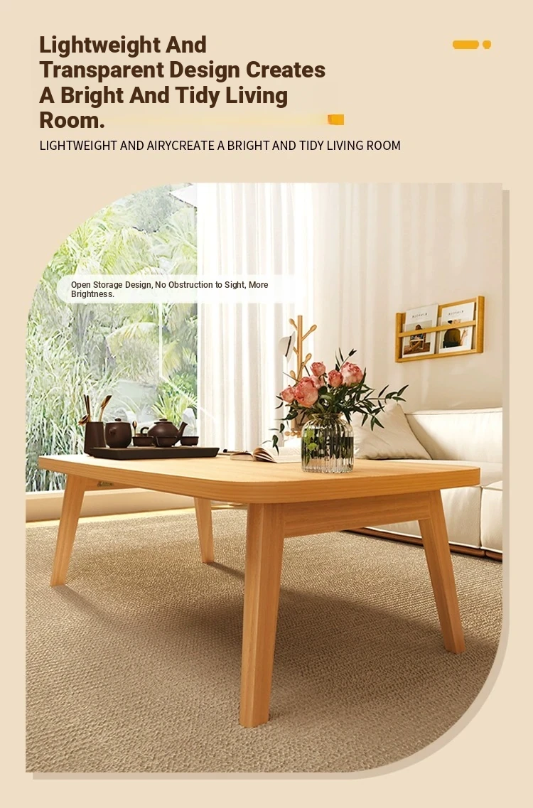 Japanese Minimalist Solid Wood Folding Coffee Table - Compact and Stylish for Small Spaces, Perfect for Balconies and Cozy Living Rooms - Natural Wood Finish