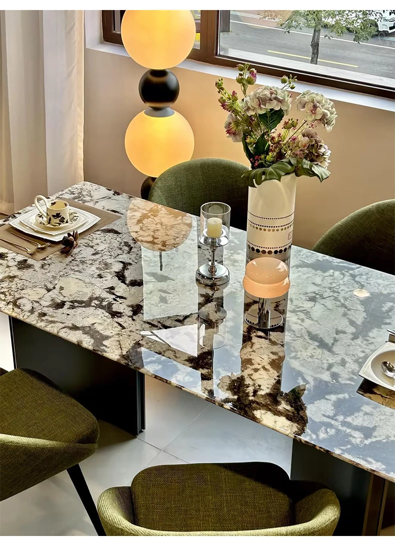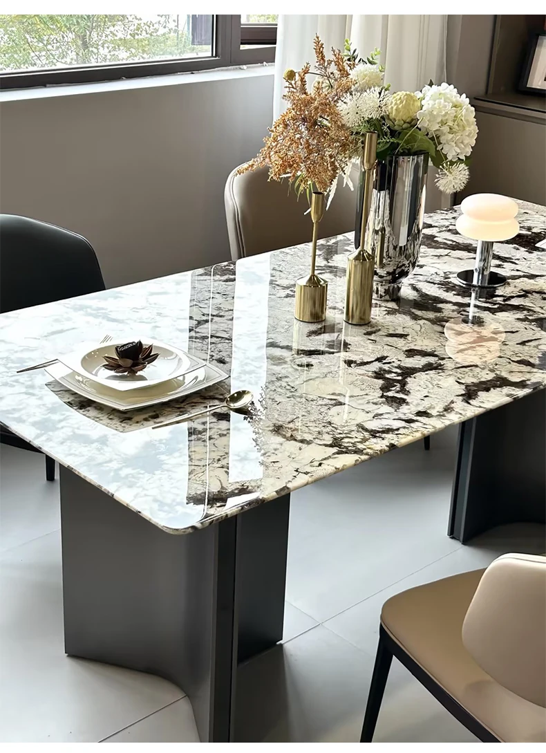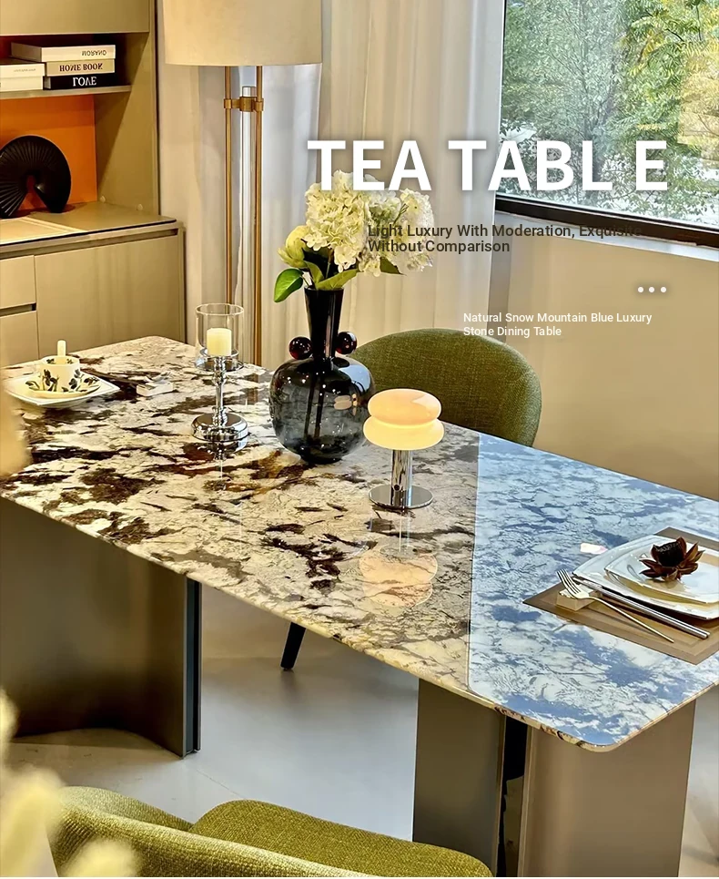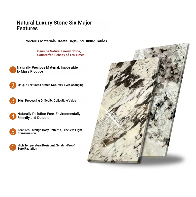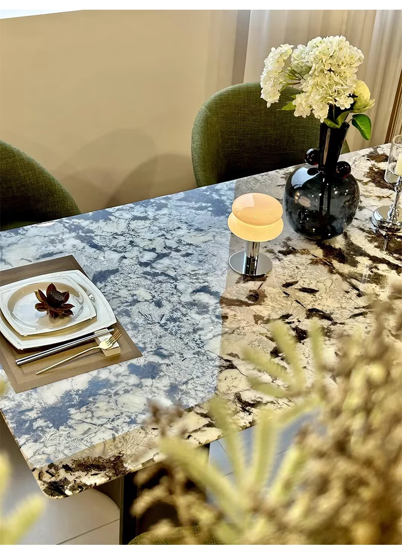 Jiangcheng Natural Snow Mountain Orchid Luxury Stone Dining Table – Elegant Italian-Inspired High-End Villa Dining Set with Premium Natural Stone Table and Chairs for Upscale Restaurants