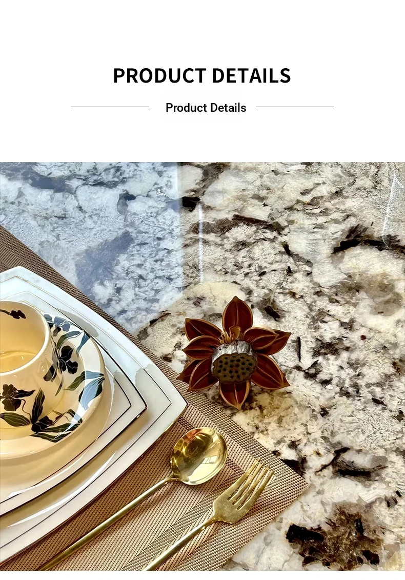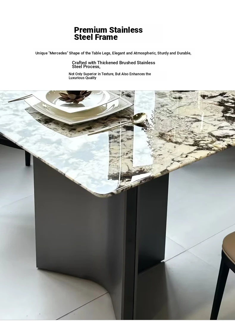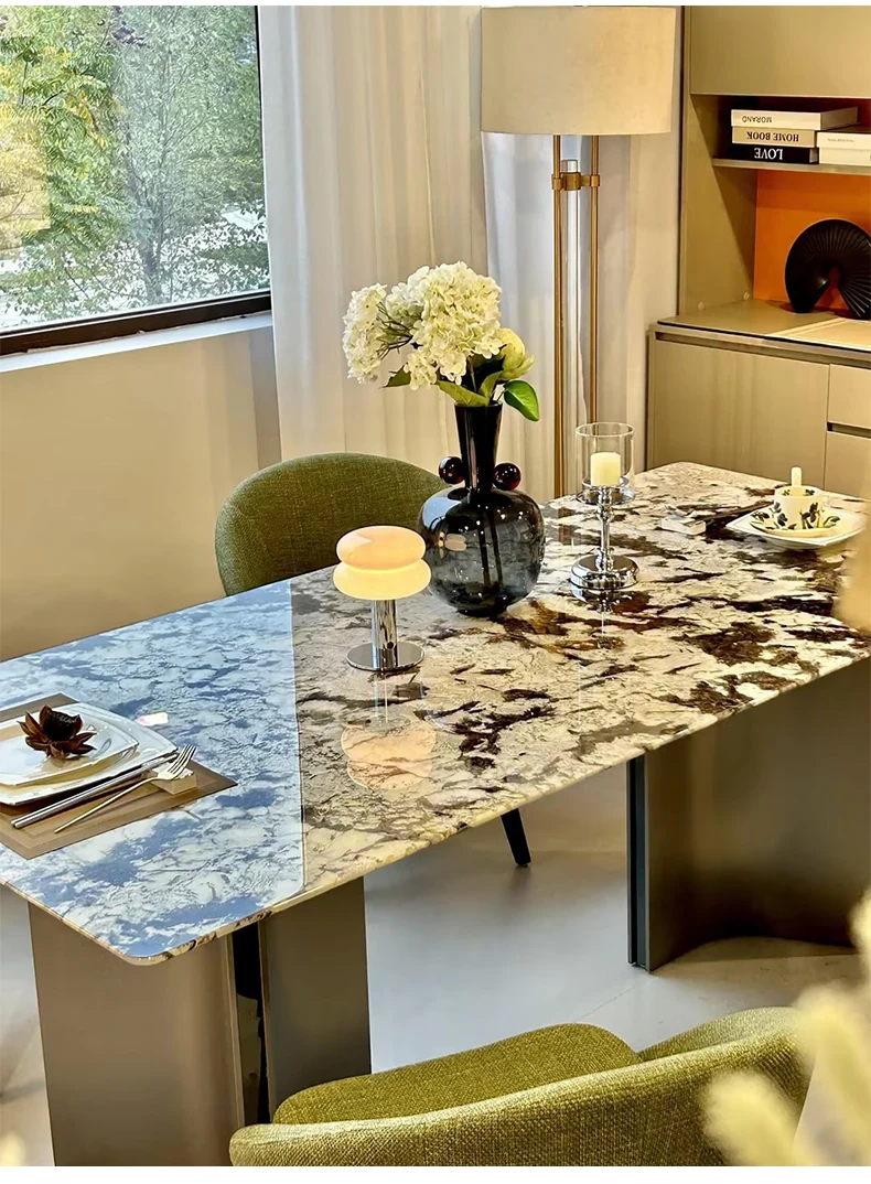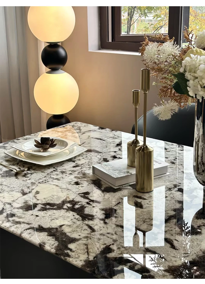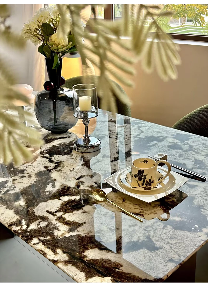 Jiangcheng Natural Snow Mountain Orchid Luxury Stone Dining Table – Elegant Italian-Inspired High-End Villa Dining Set with Premium Natural Stone Table and Chairs for Upscale Restaurants