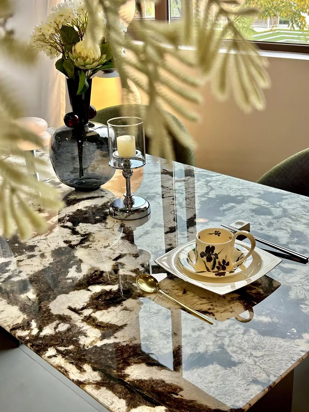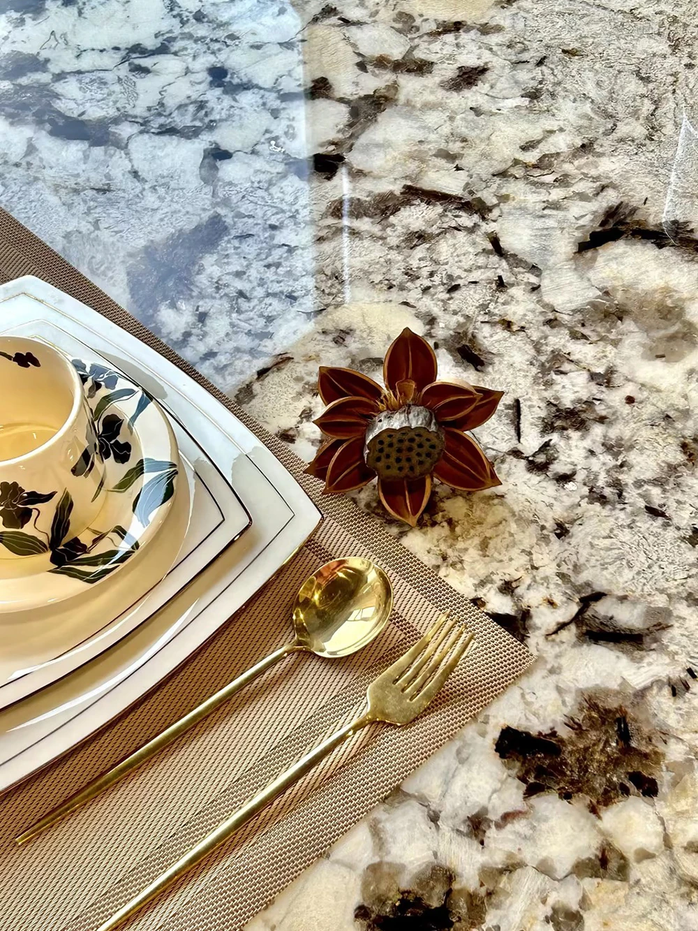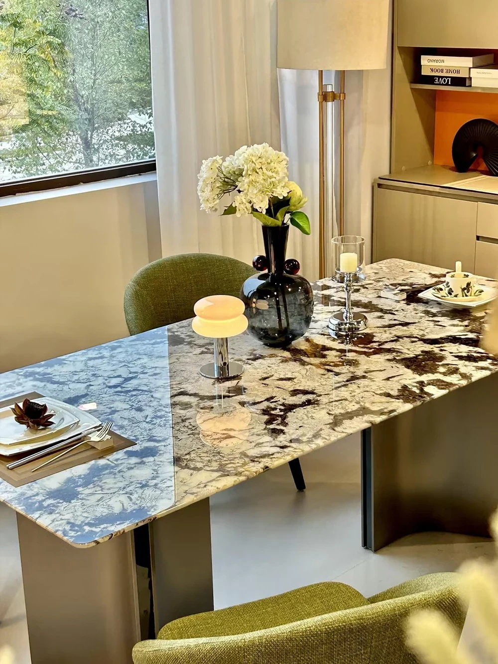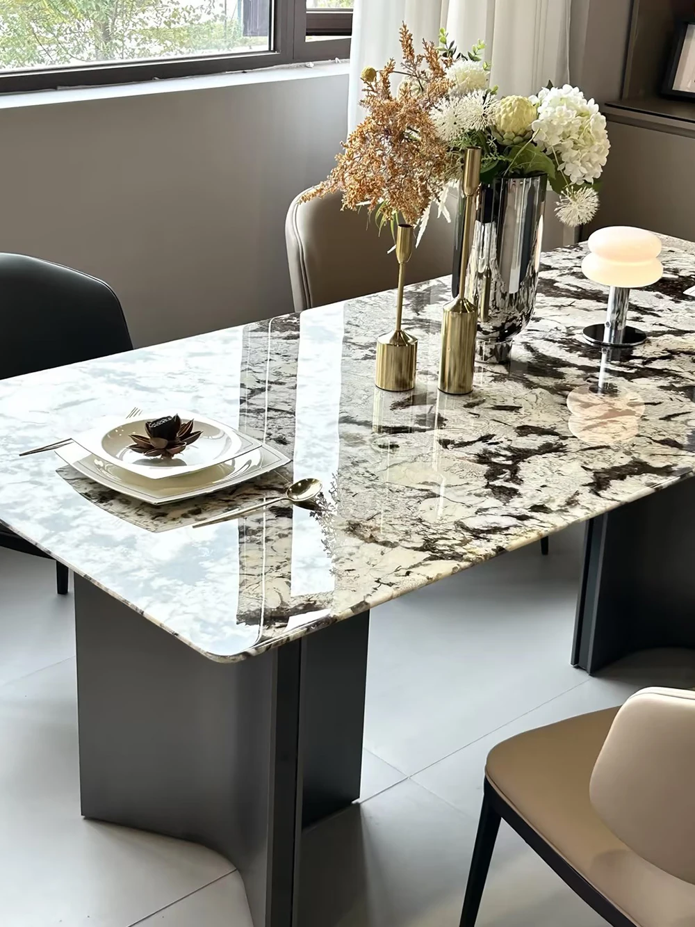 Jiangcheng Natural Snow Mountain Orchid Luxury Stone Dining Table – Elegant Italian-Inspired High-End Villa Dining Set with Premium Natural Stone Table and Chairs for Upscale Restaurants