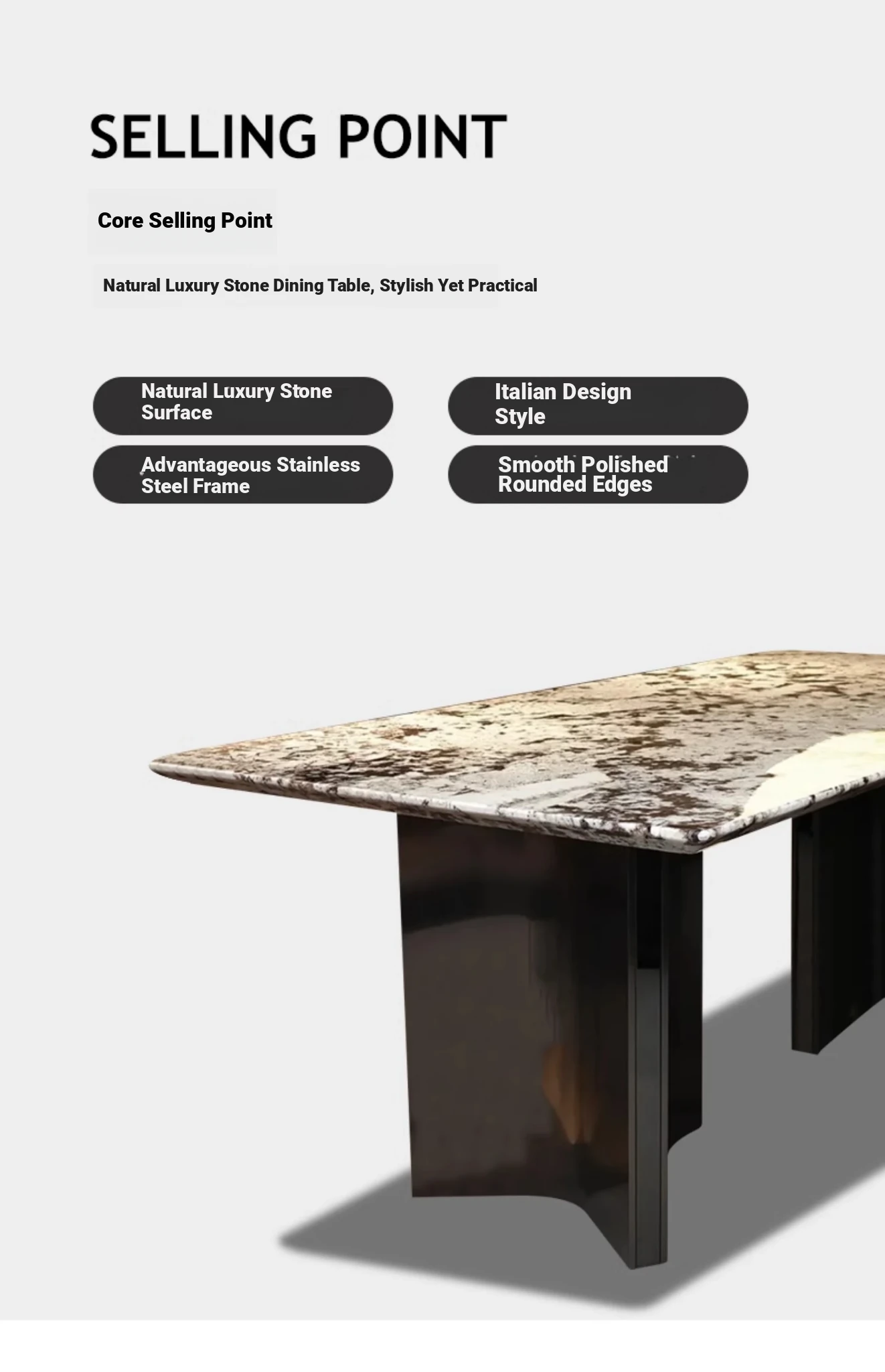 86.61in*39.37ins +8 chairs snow mountain orchid luxury stone dining table (fake one penalty ten)