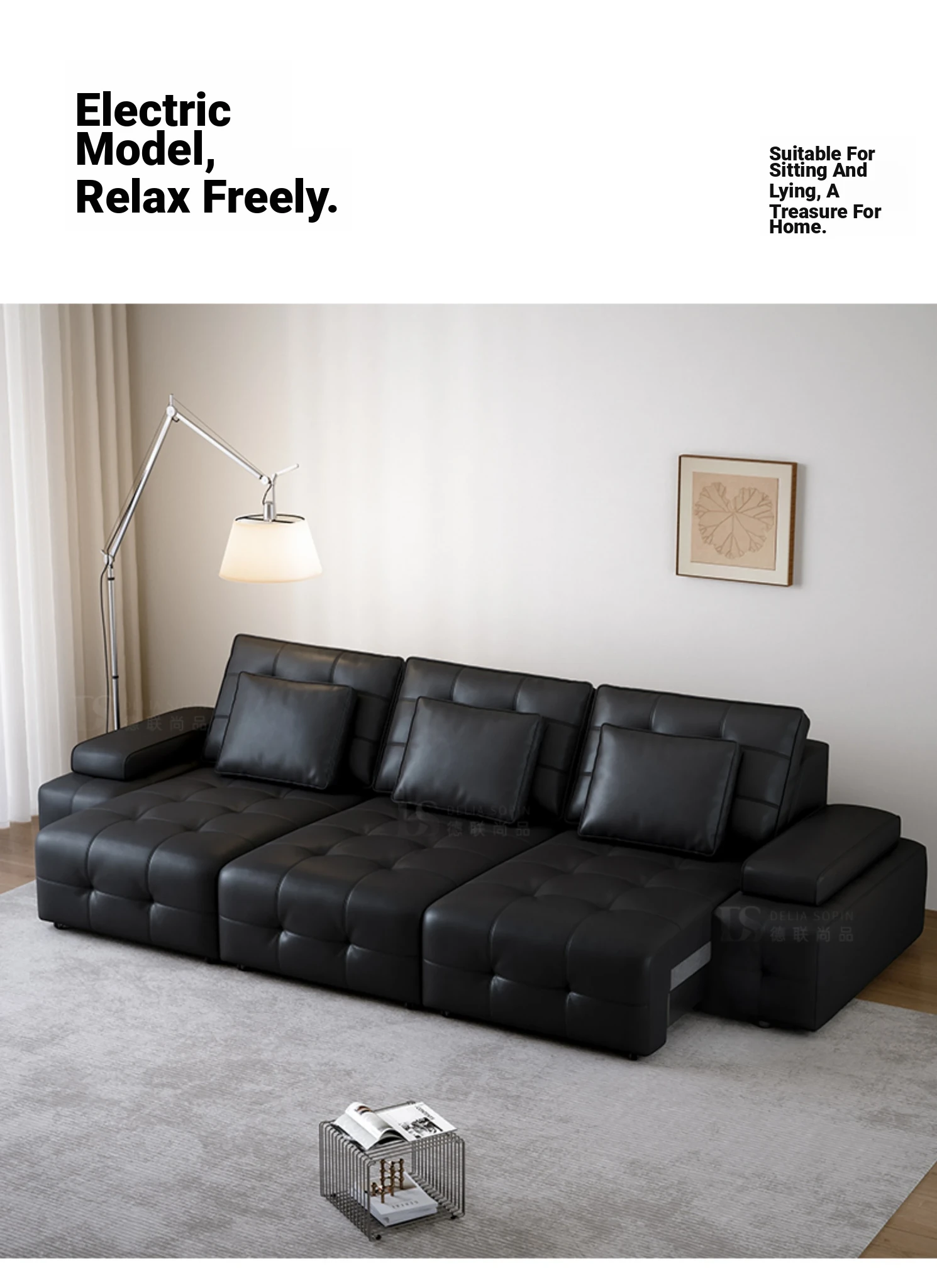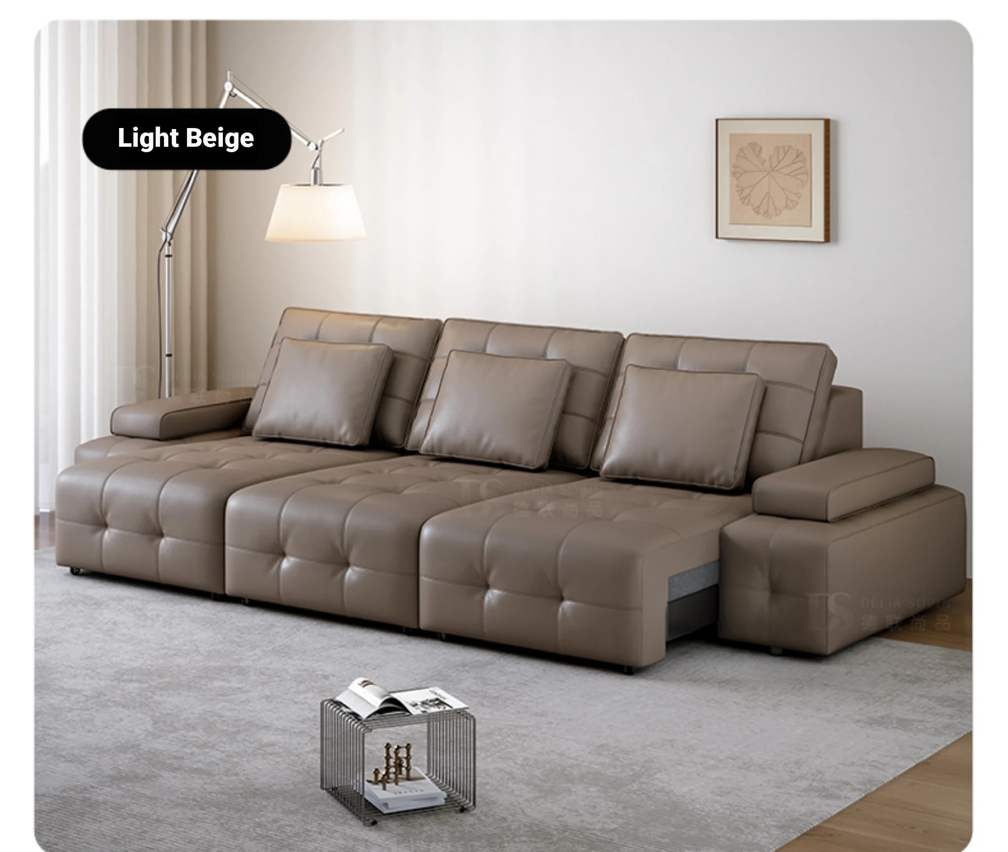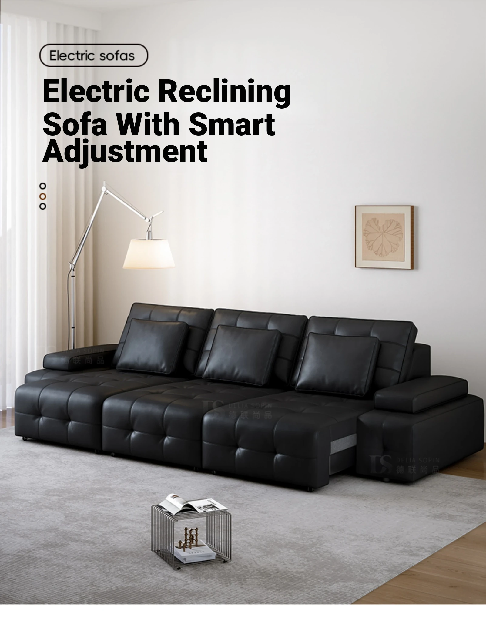 Lawrence Adjustable Electric Sofa Bed - 2025 New Model, Genuine Leather, Reclining & Sleeping Function, Perfect for Living Room, Comfortable 3-Seater Design.