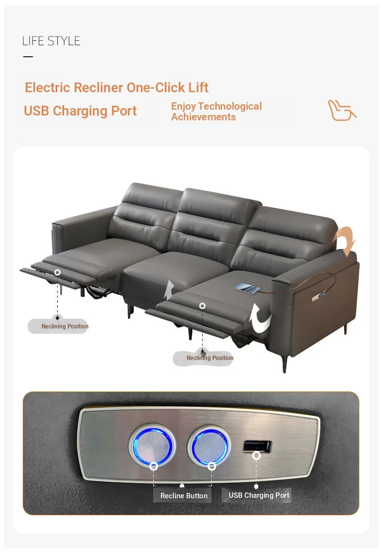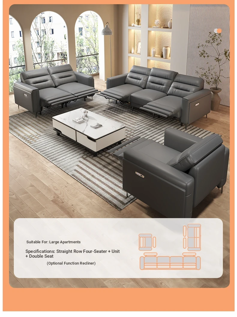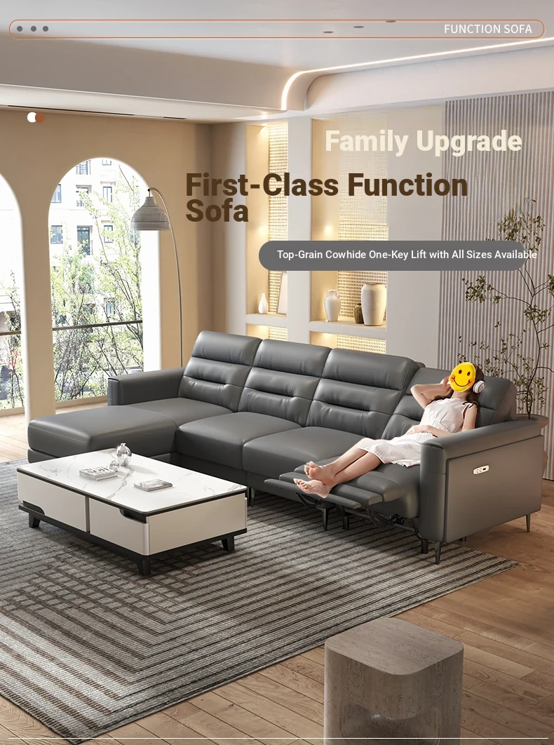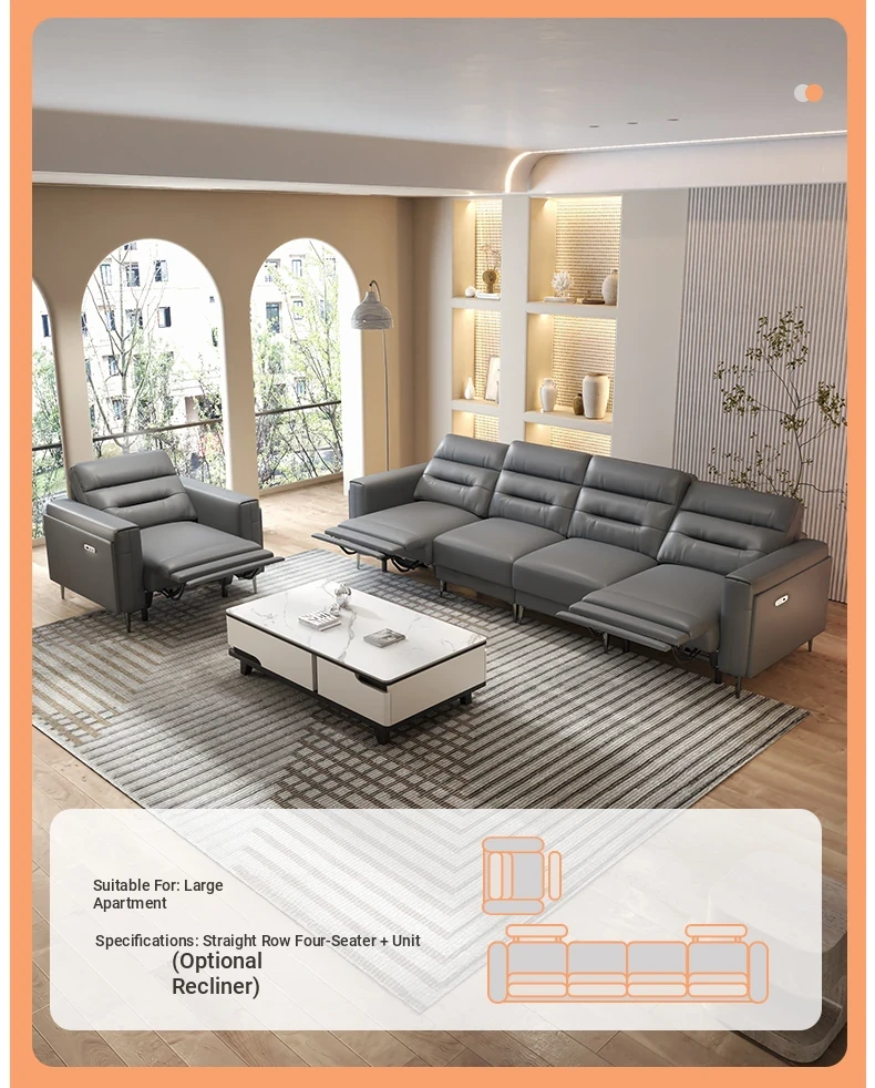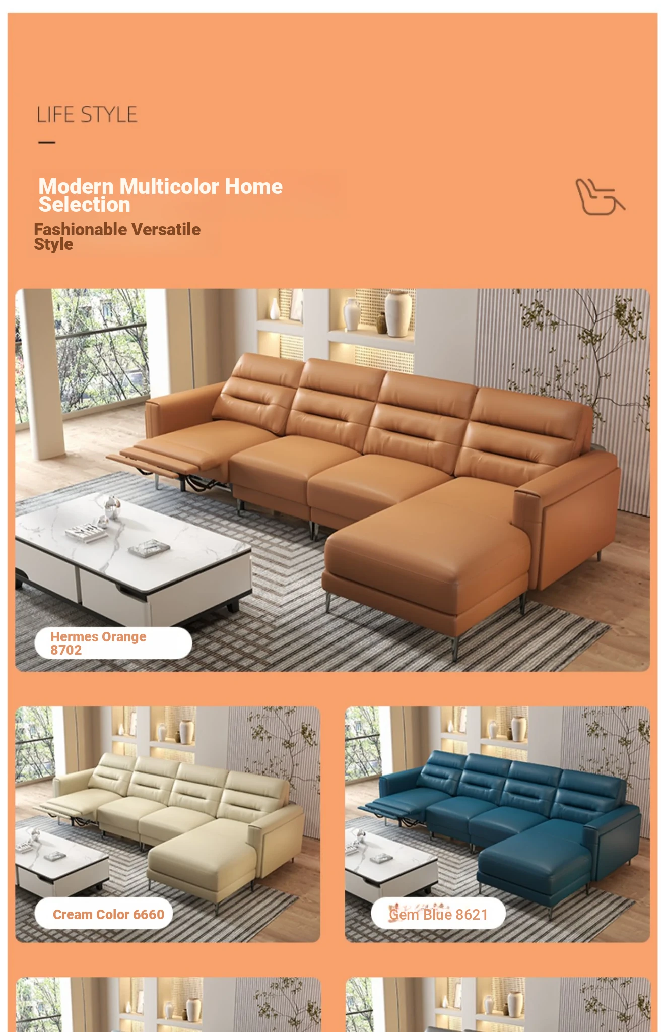 Luxury Electric Multi-Functional First-Class Sofa - Crafted from Top-Grade Yellow Cowhide Leather, Perfect for Any Living Room Size! Experience Comfort and Elegance in Your Home.