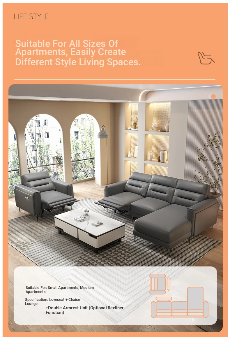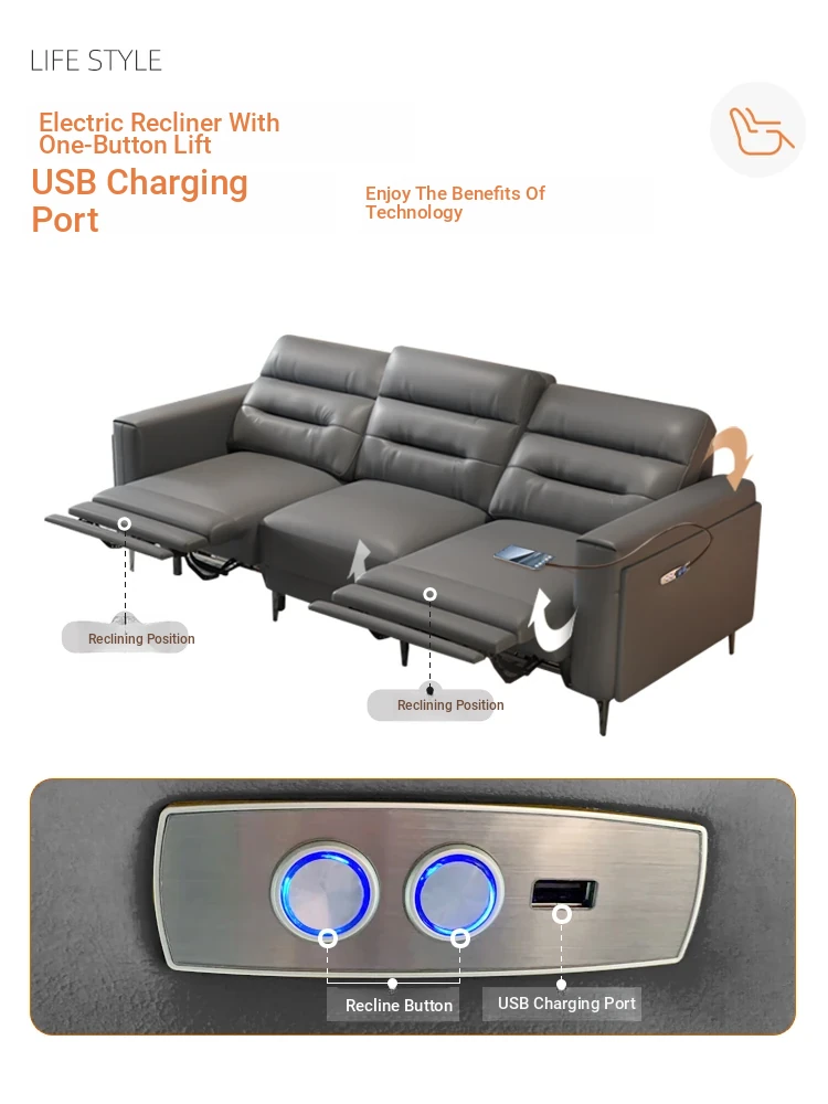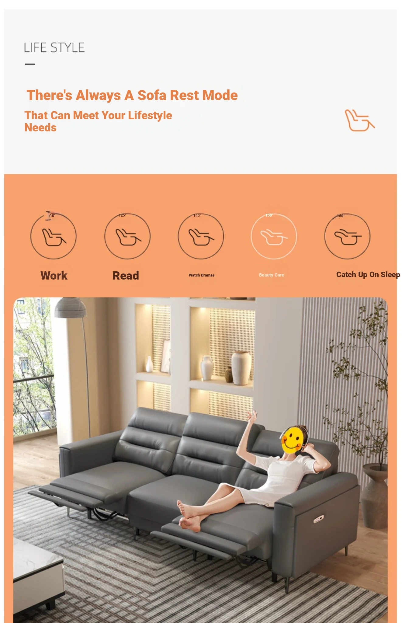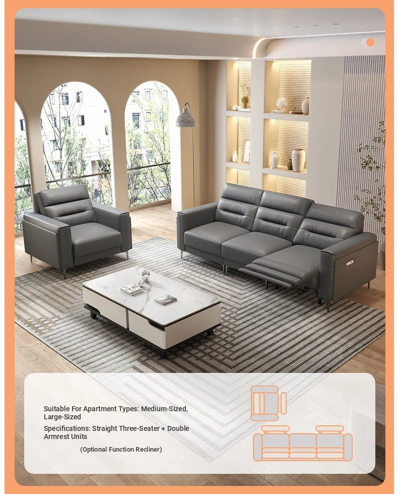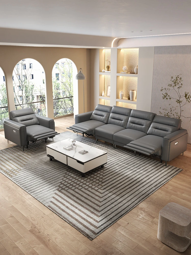 Luxury Electric Multi-Functional First-Class Sofa - Crafted from Top-Grade Yellow Cowhide Leather, Perfect for Any Living Room Size! Experience Comfort and Elegance in Your Home.