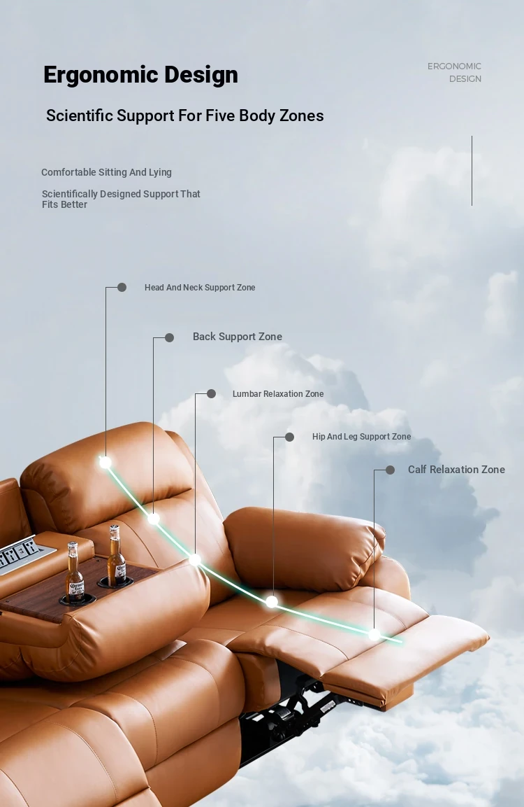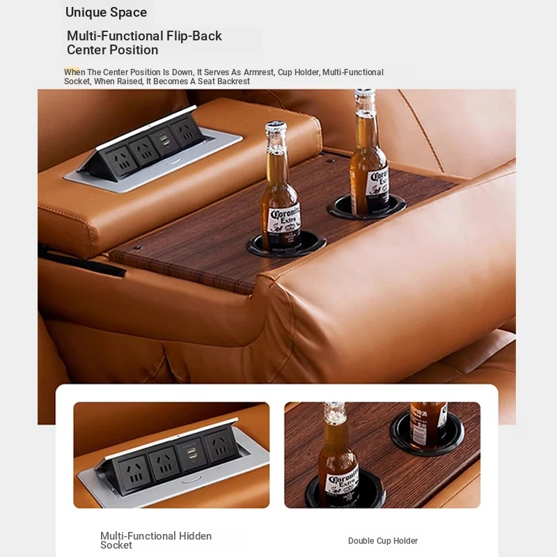 Luxury Genuine Leather Electric Sofa with Adjustable Headrest - Space Capsule Style, 3-Seater, Reclining and Sleeping Function for Ultimate Comfort