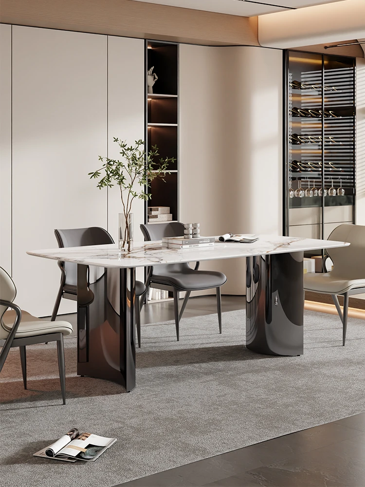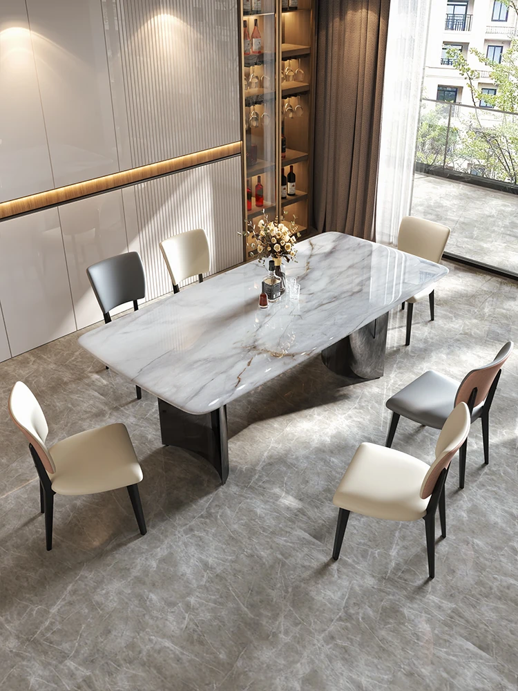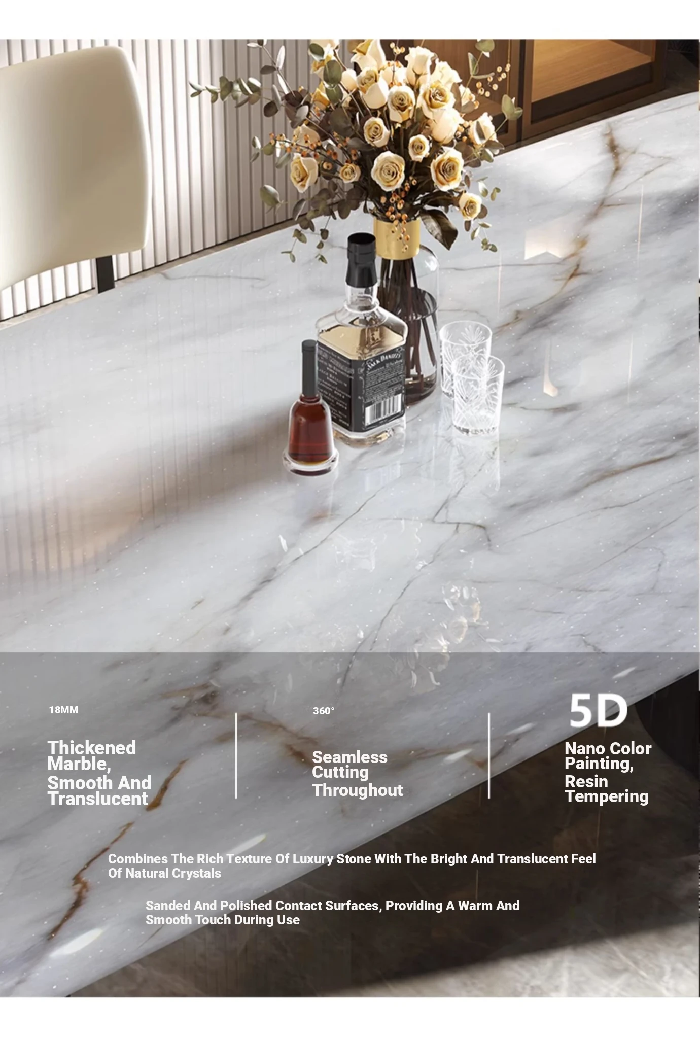 Luxury High-End Natural Marble Dining Table and Chair Set - Rectangle Design for Small Spaces, Featuring Exquisite Bulgari Microcrystal Stone Finish