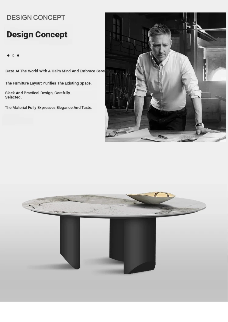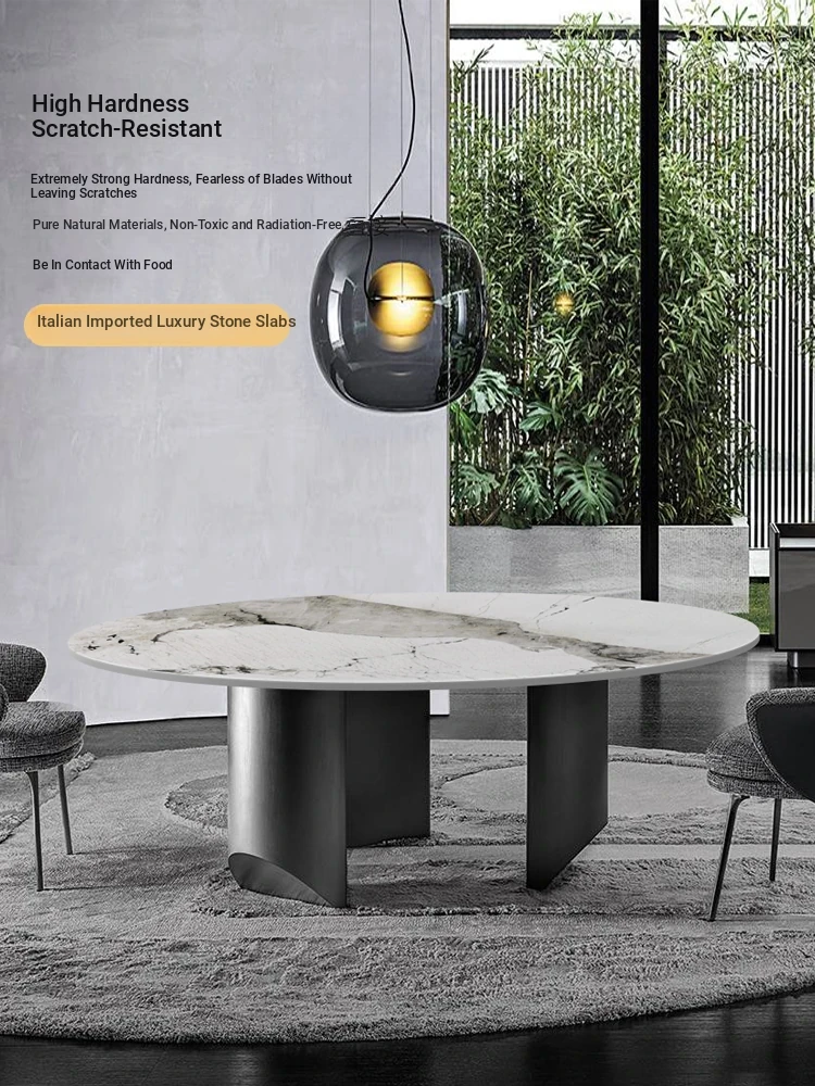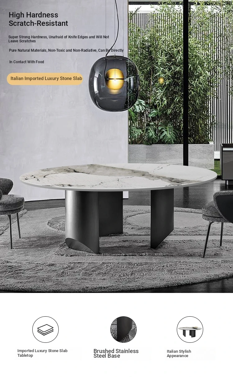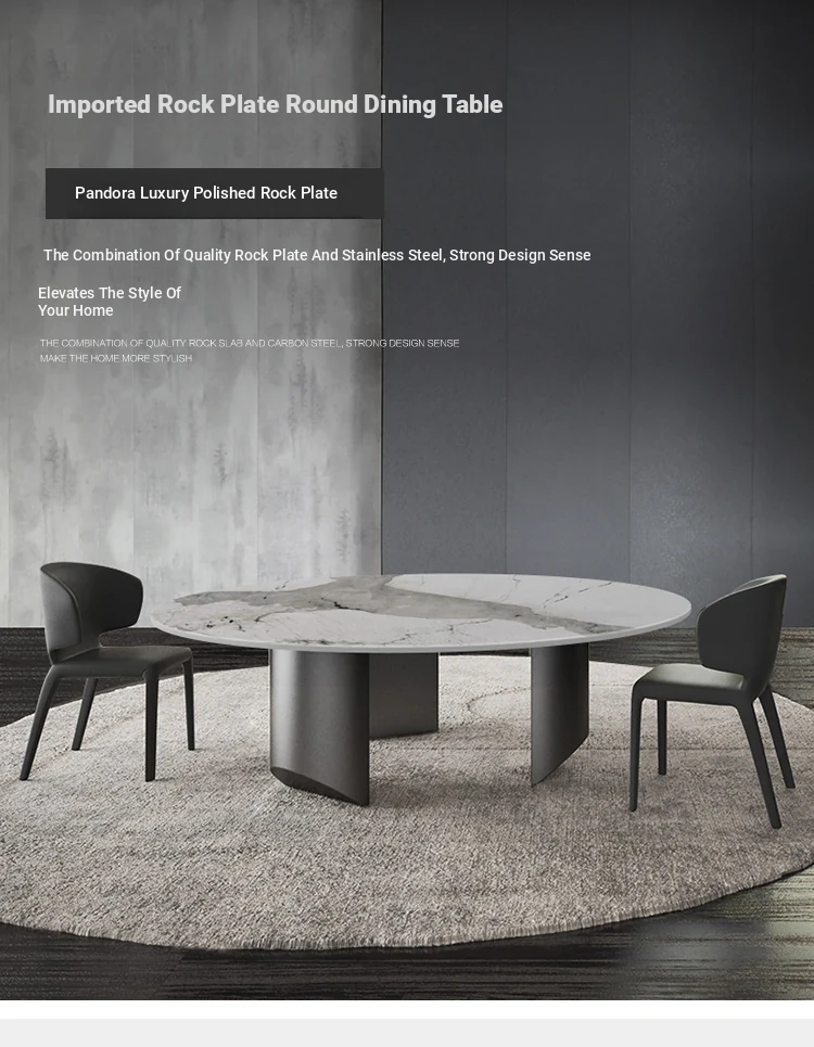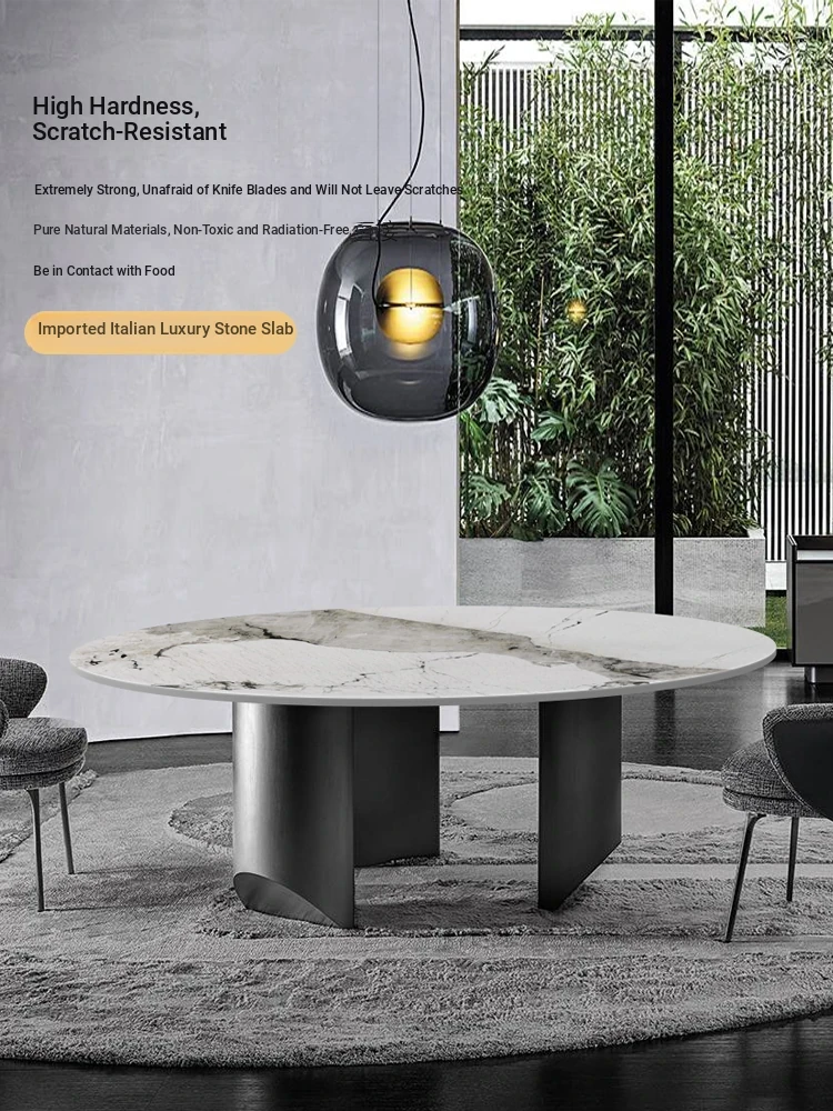 Minimalist Luxury Round Dining Table - 1.8m Embedded Design with Stainless Steel Base, Perfect for Modern Interiors and Creative Spaces