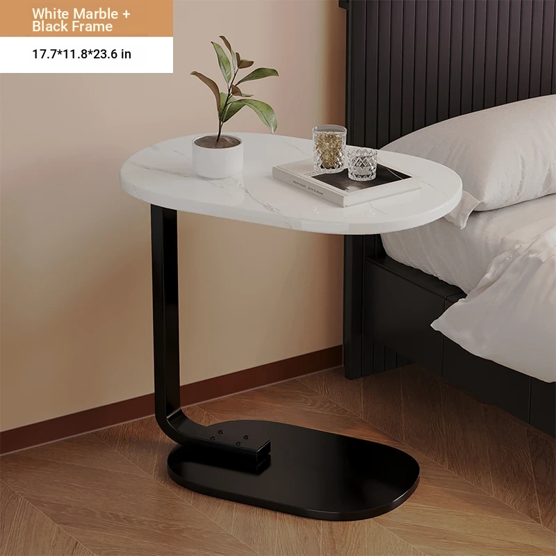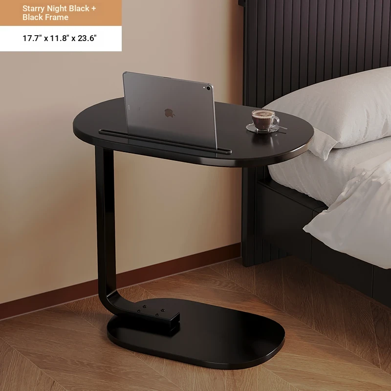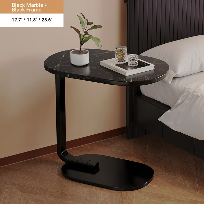 [Type C Side Table] 45*30*60 [Black Stone-Black Frame]]