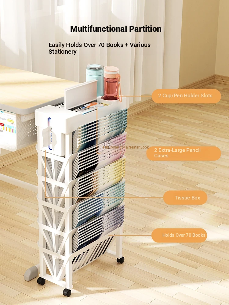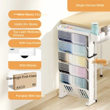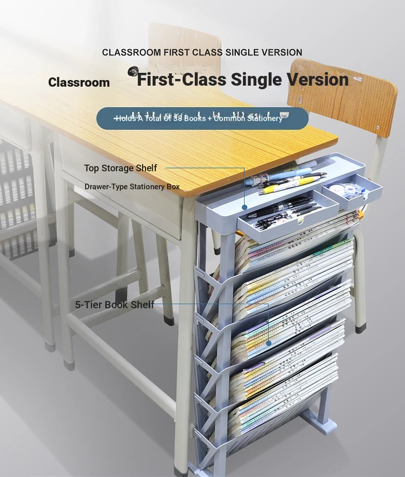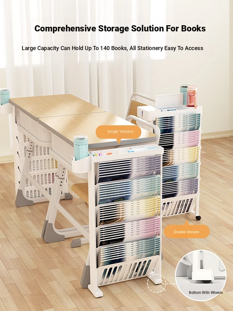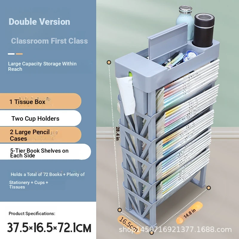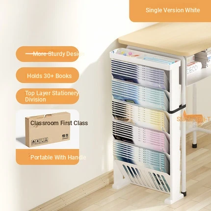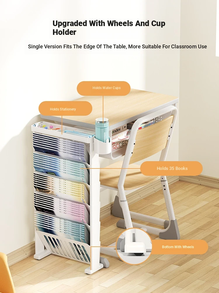 Mobile Floor Bookshelf and Storage Rack for Students - Versatile Book Holder with Hanging Book Bags, Perfect for High School and Middle School Desks, Ideal for Classroom Organization