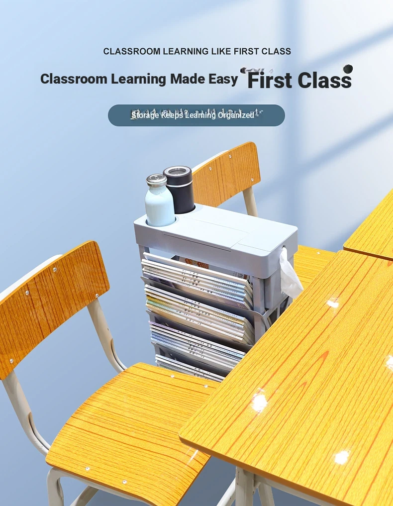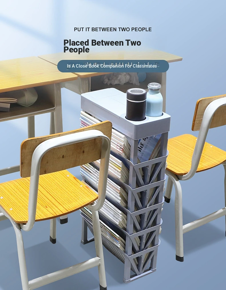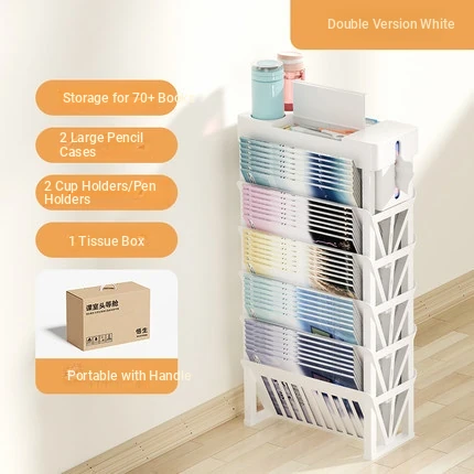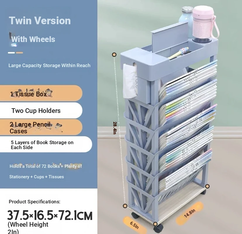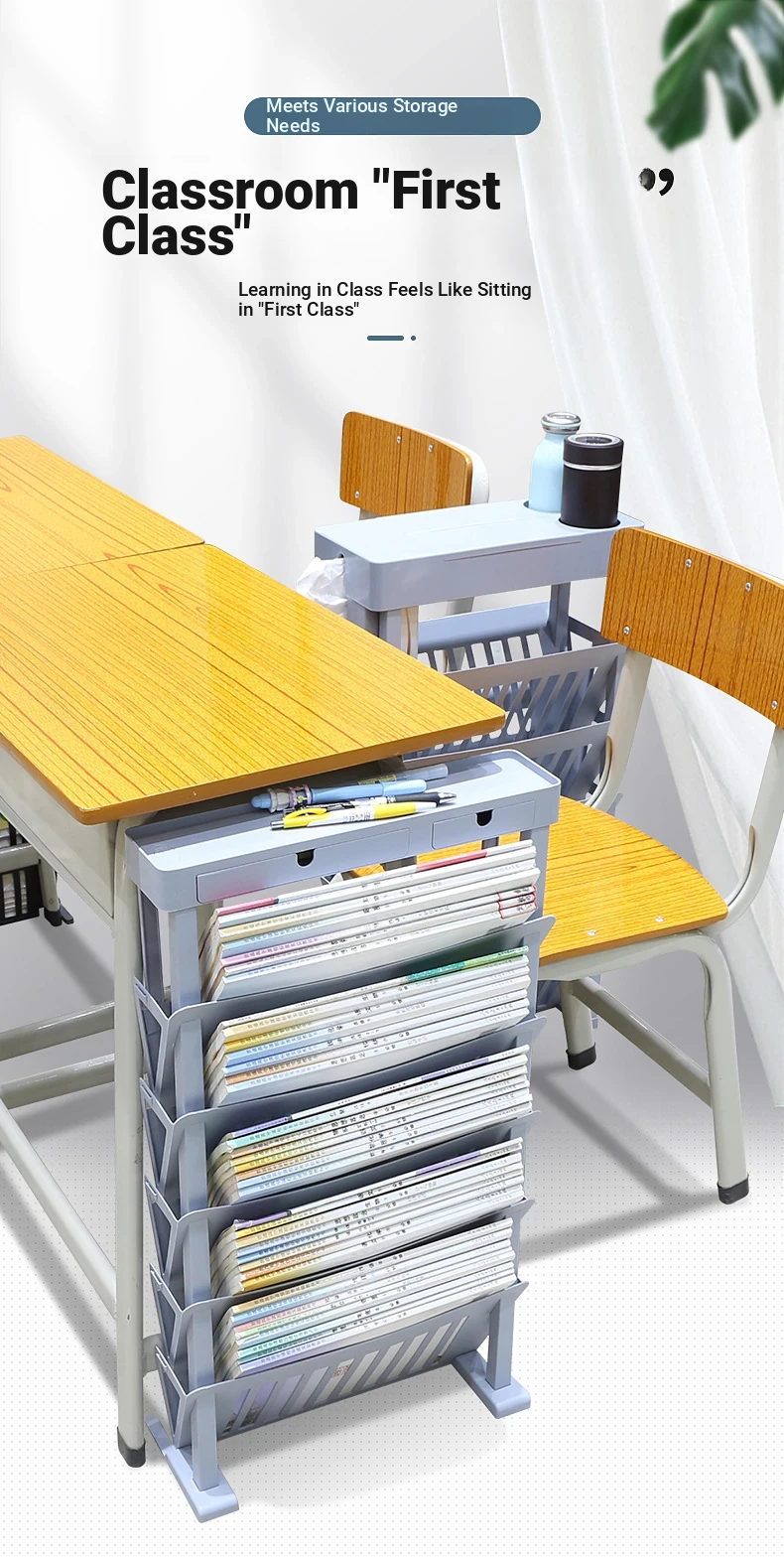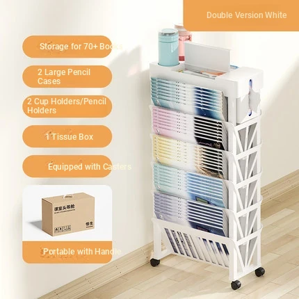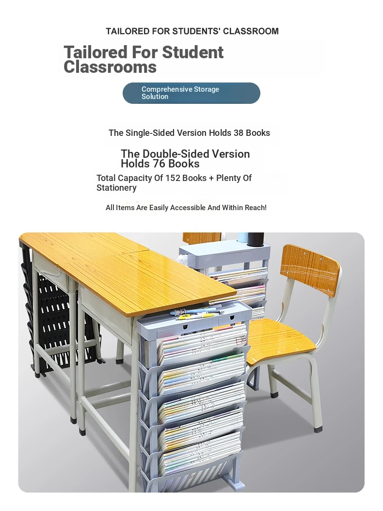 Mobile Floor Bookshelf and Storage Rack for Students - Versatile Book Holder with Hanging Book Bags, Perfect for High School and Middle School Desks, Ideal for Classroom Organization