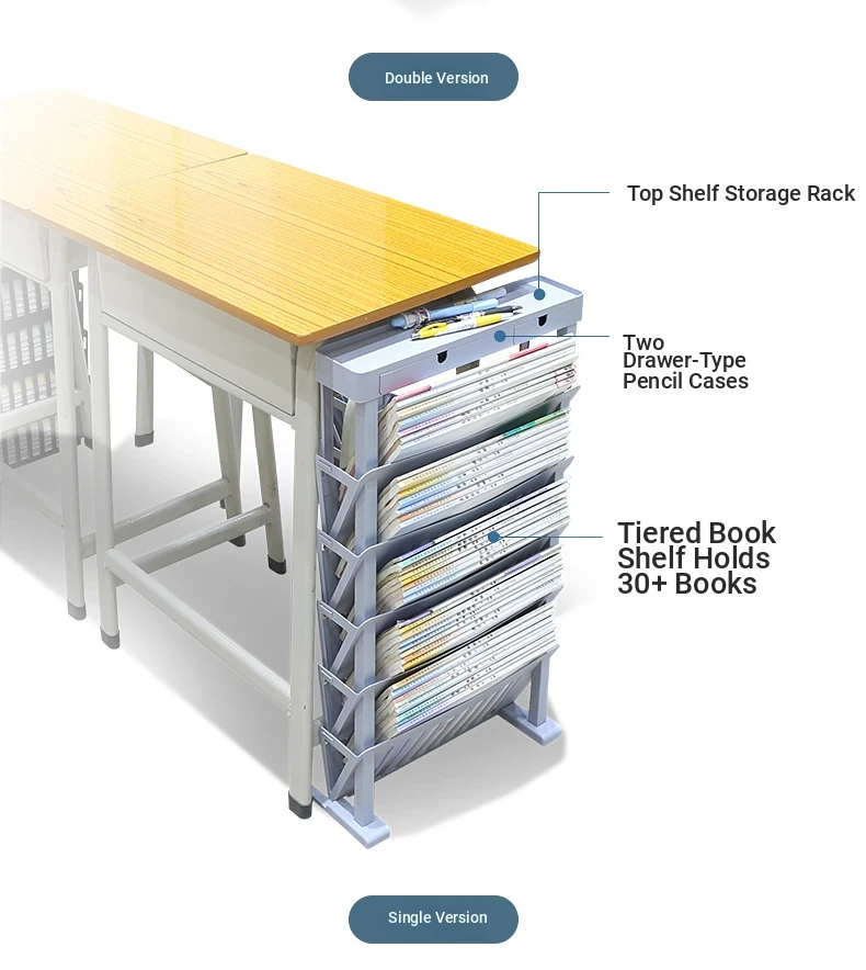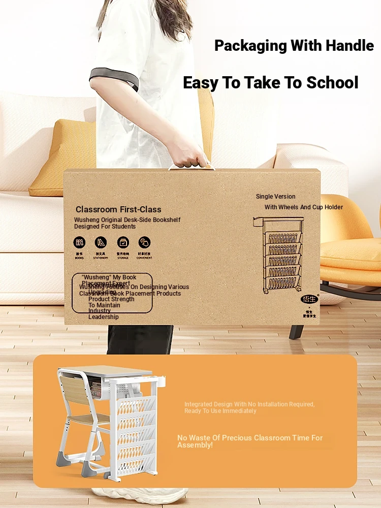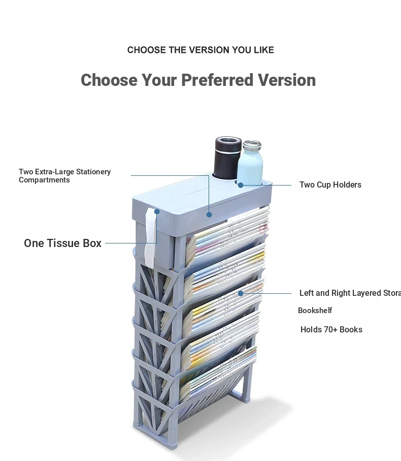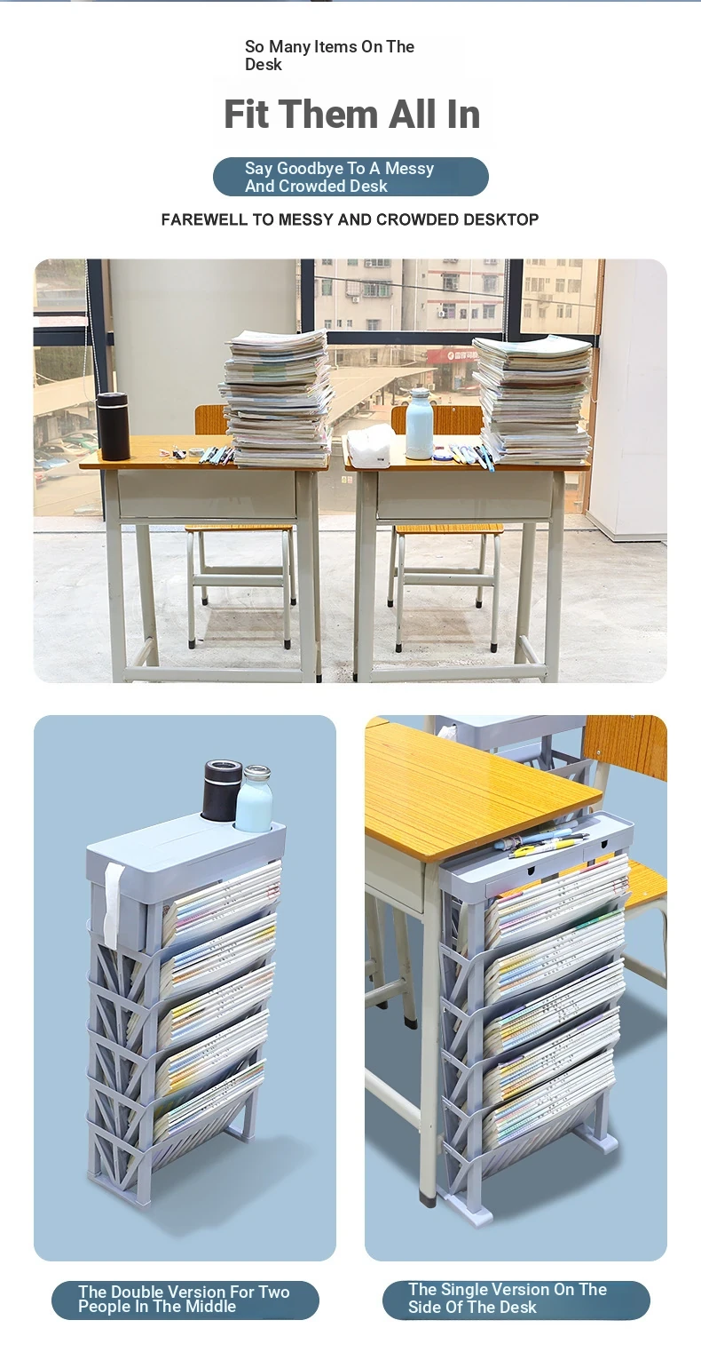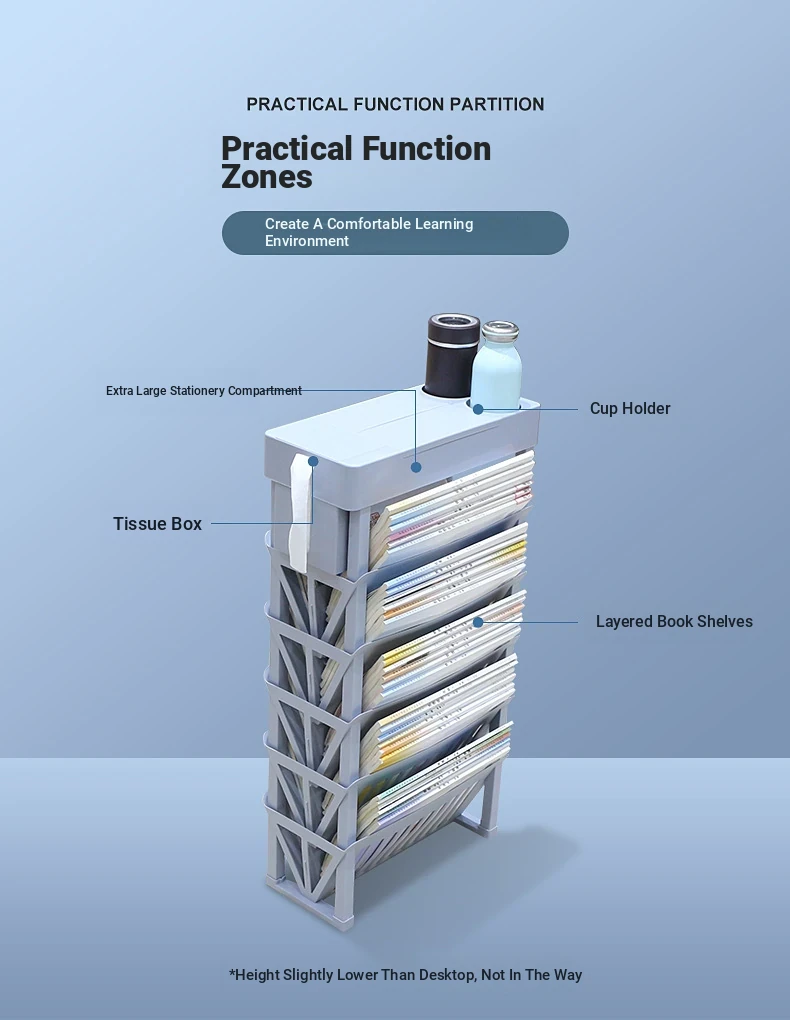 Mobile Floor Bookshelf and Storage Rack for Students - Versatile Book Holder with Hanging Book Bags, Perfect for High School and Middle School Desks, Ideal for Classroom Organization