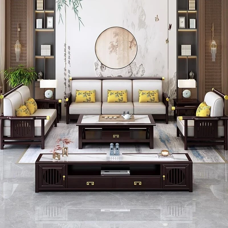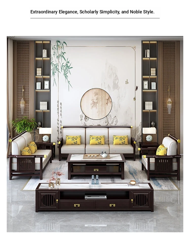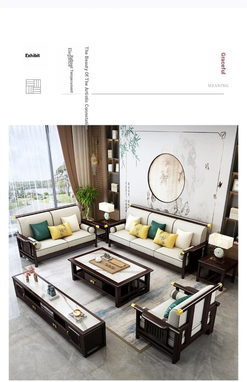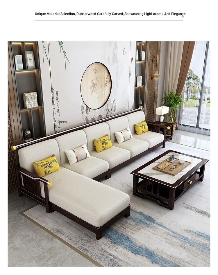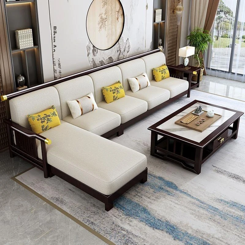 Modern Chinese Style Solid Wood Sofa - Elegant Four-Seat Corner Set for Villas, Blending Classic Zen Aesthetics with Contemporary Design for Your Living Room