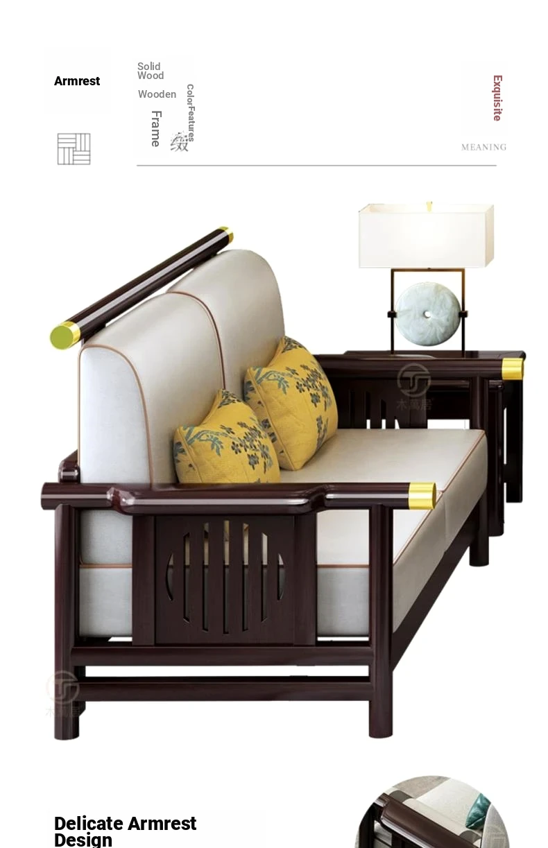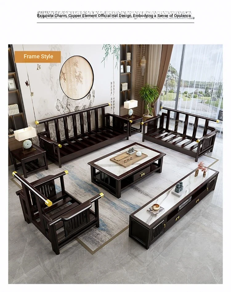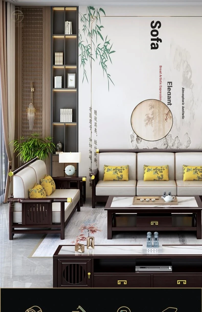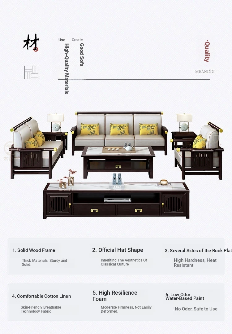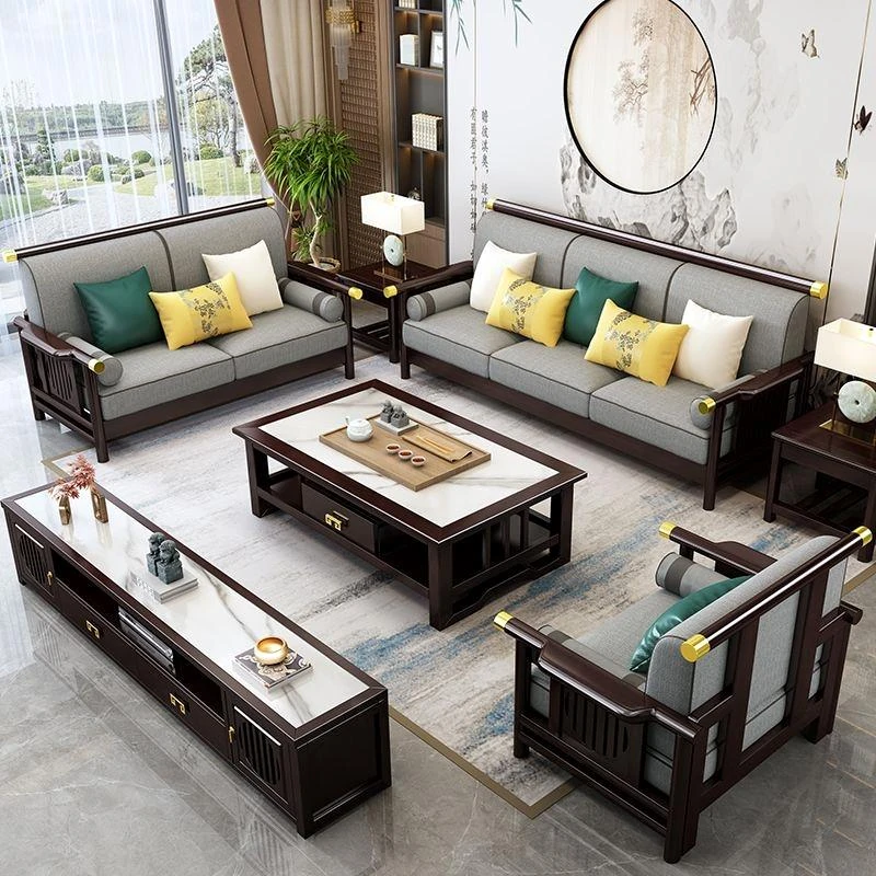 Modern Chinese Style Solid Wood Sofa - Elegant Four-Seat Corner Set for Villas, Blending Classic Zen Aesthetics with Contemporary Design for Your Living Room