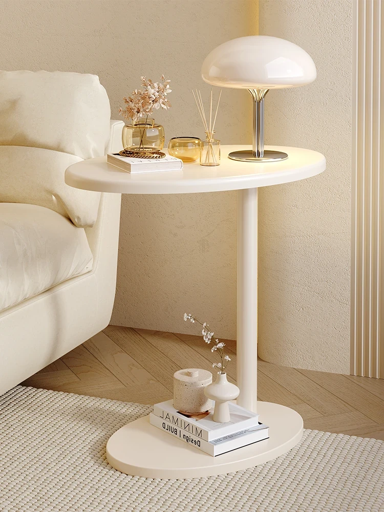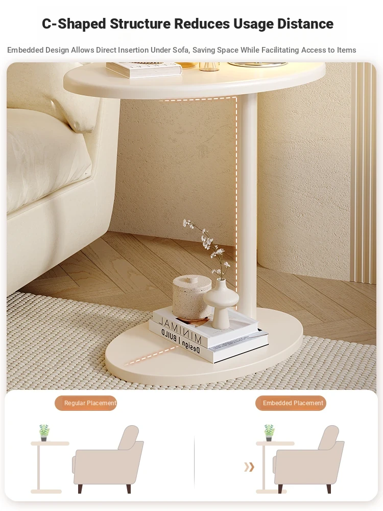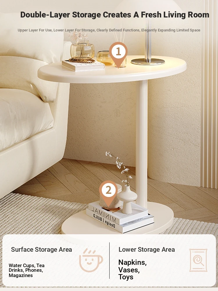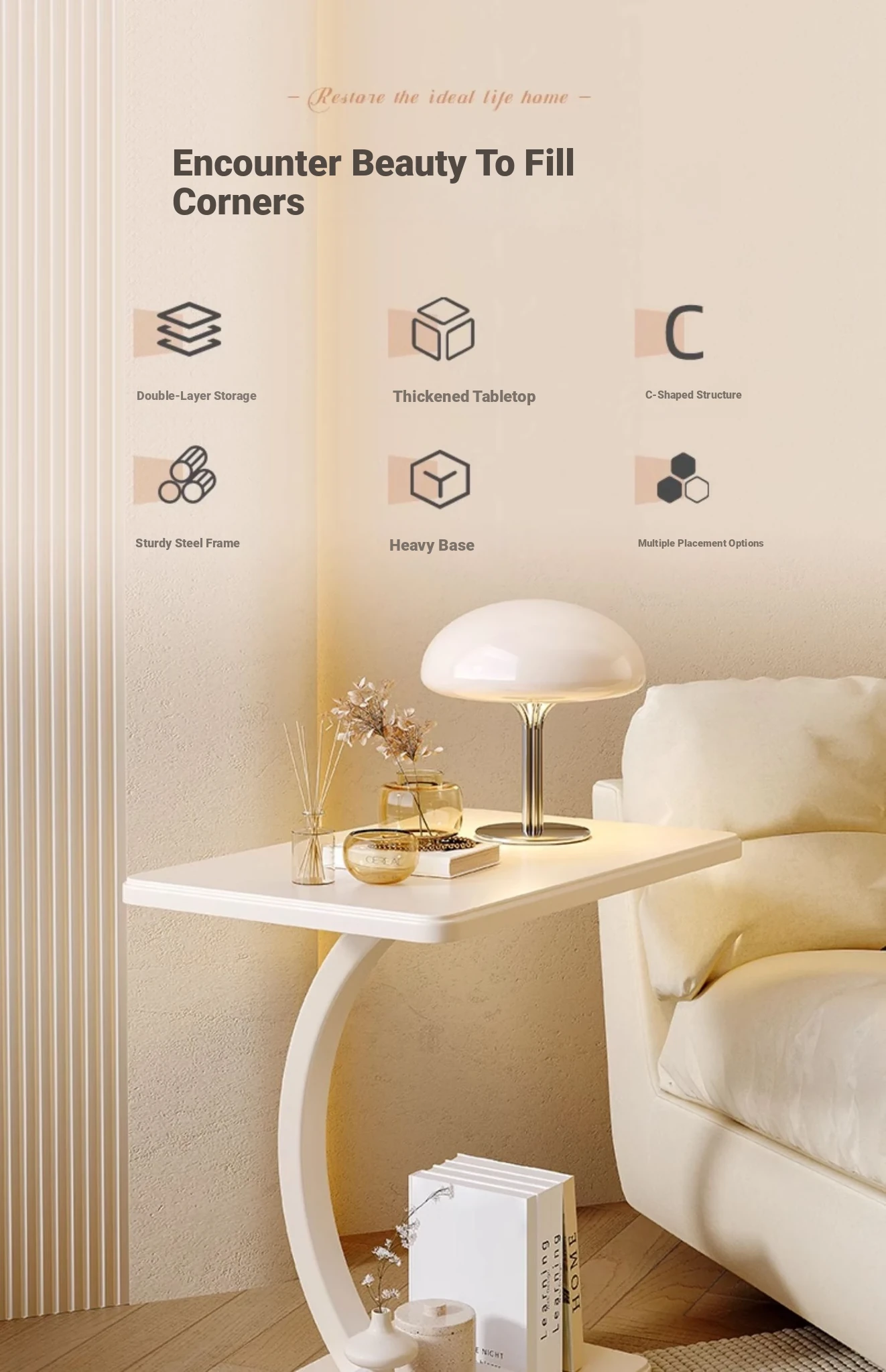 Modern Cream Sofa Side Table - Minimalist Bedside Nightstand & Small Coffee Table for Living Room & Bedroom - Perfect for Corner Spaces