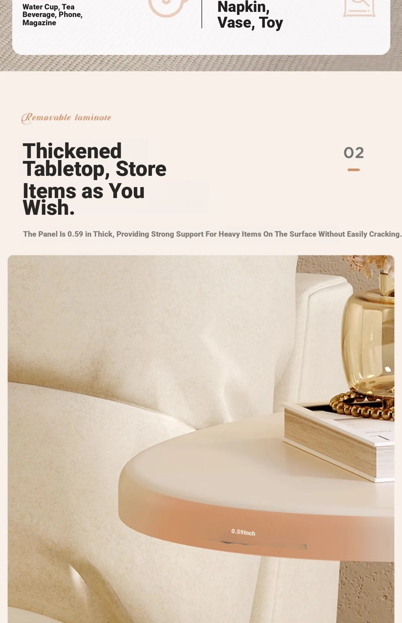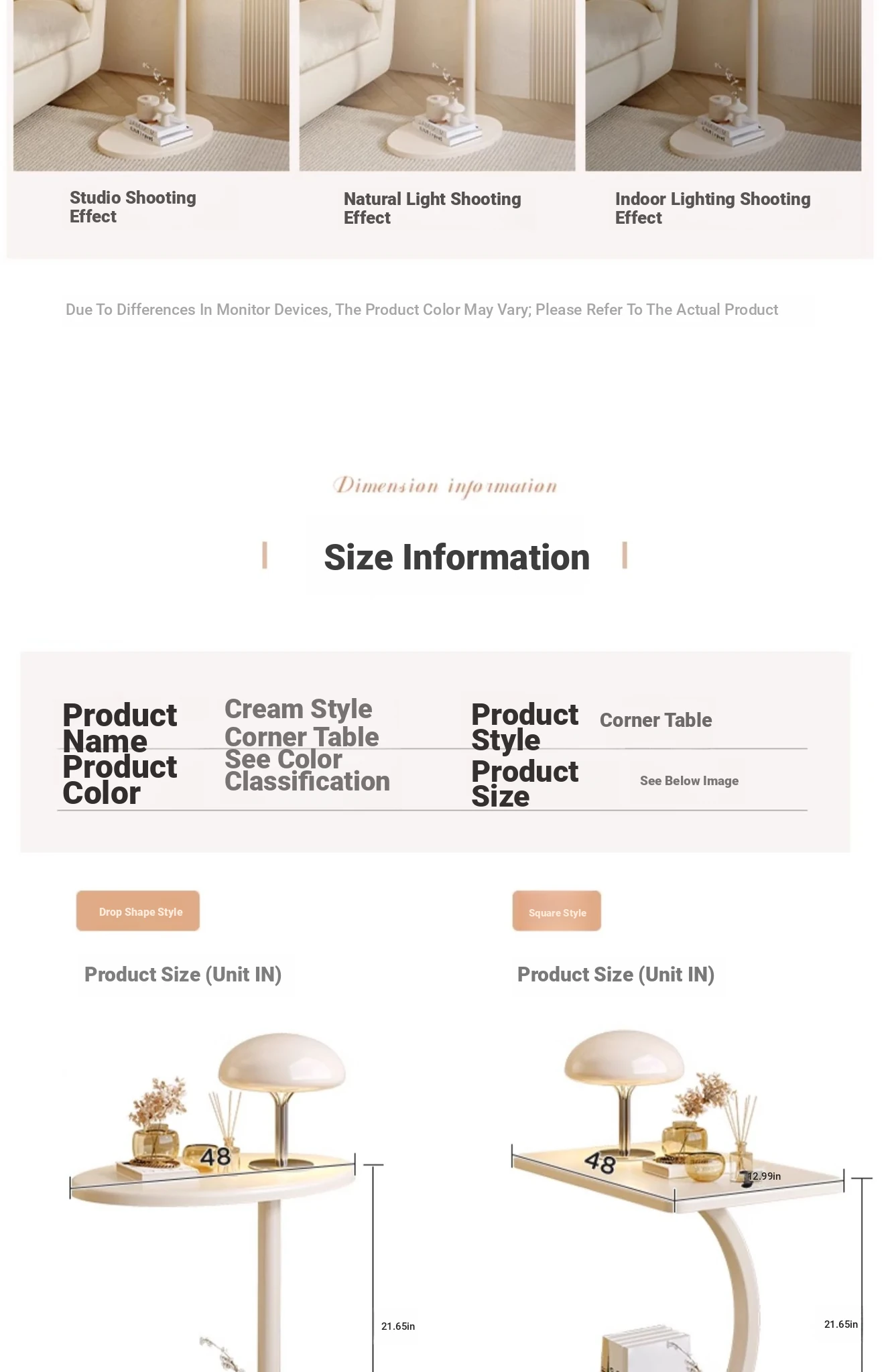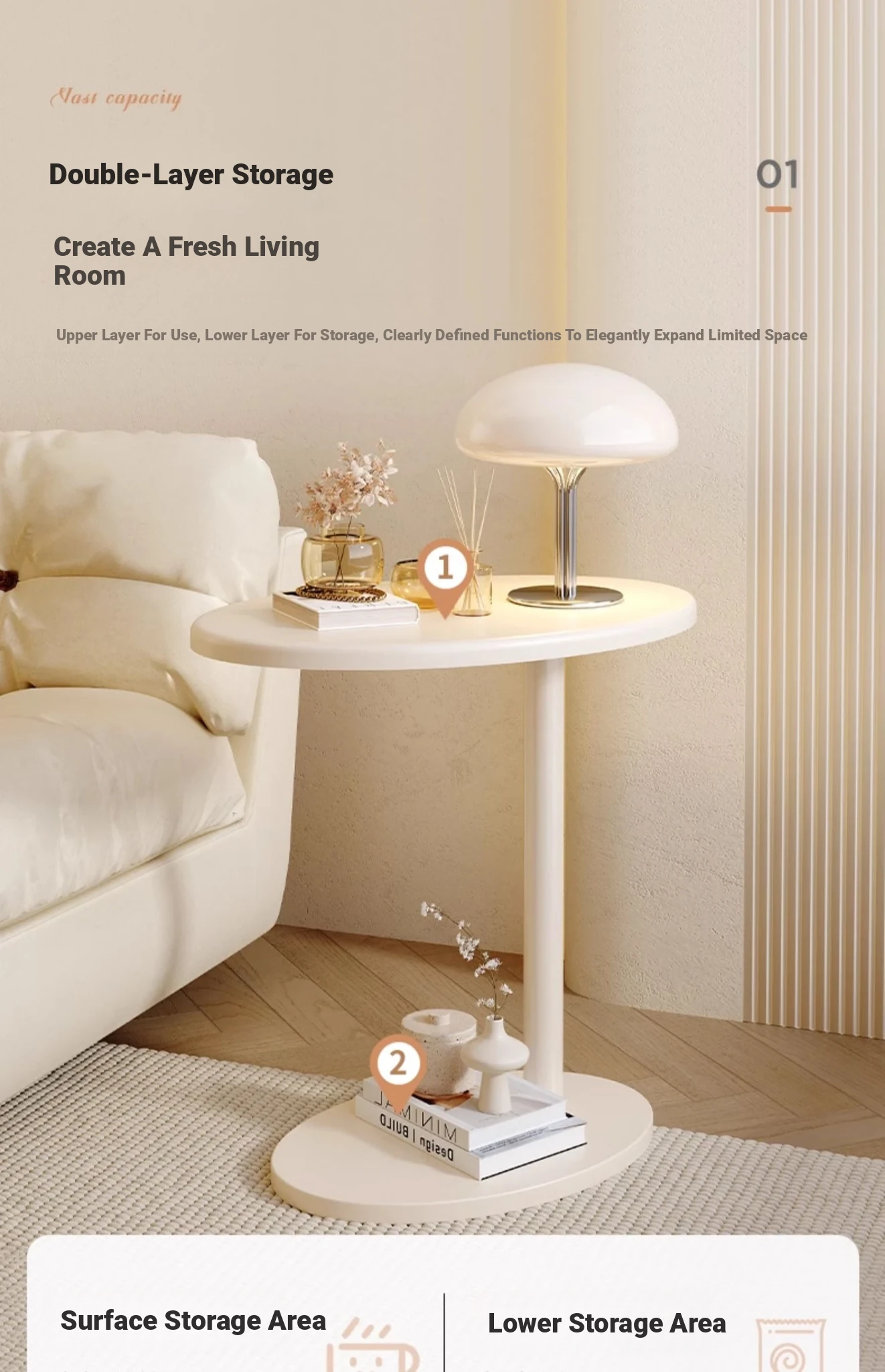 Modern Cream Sofa Side Table - Minimalist Bedside Nightstand & Small Coffee Table for Living Room & Bedroom - Perfect for Corner Spaces