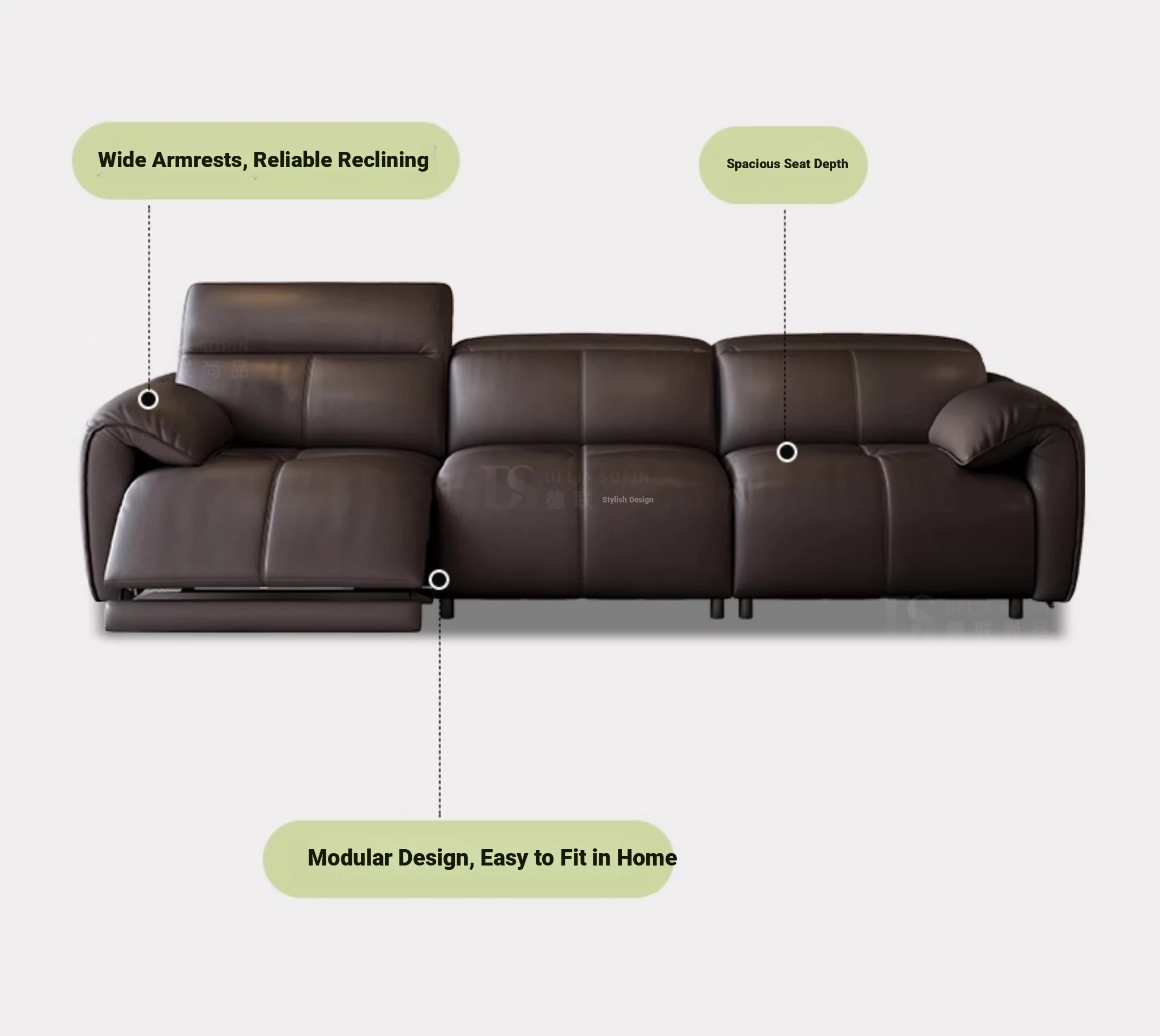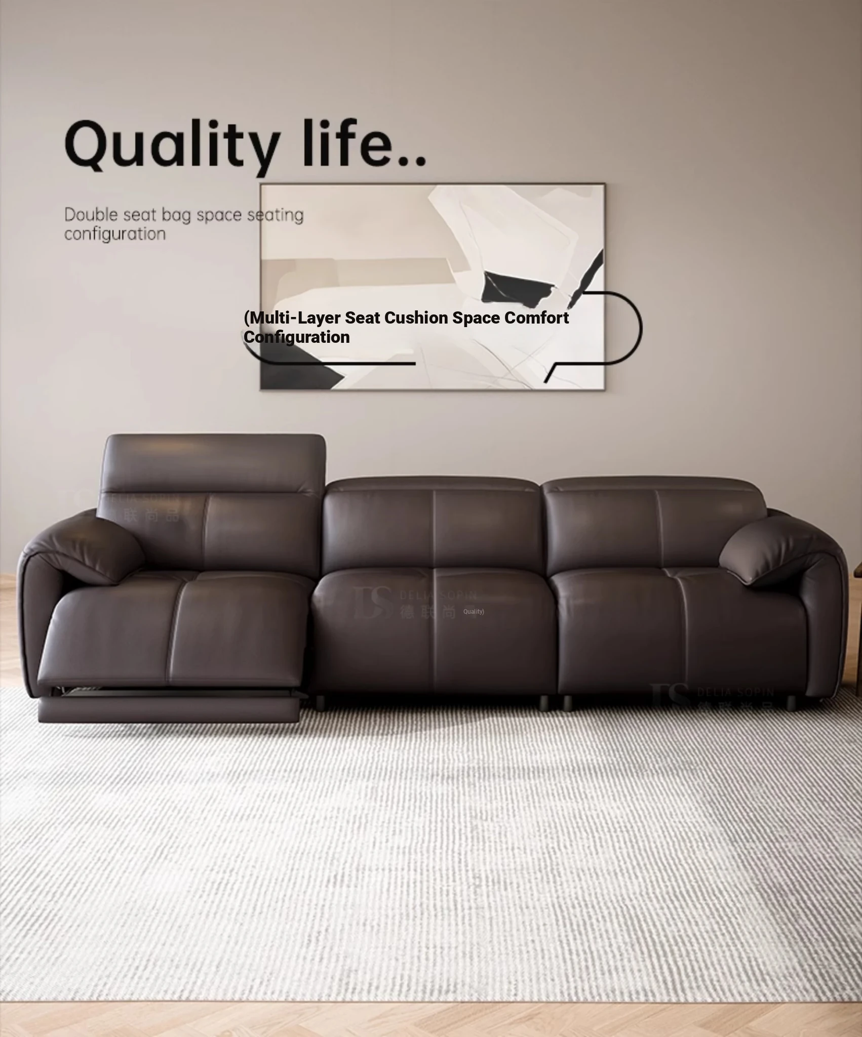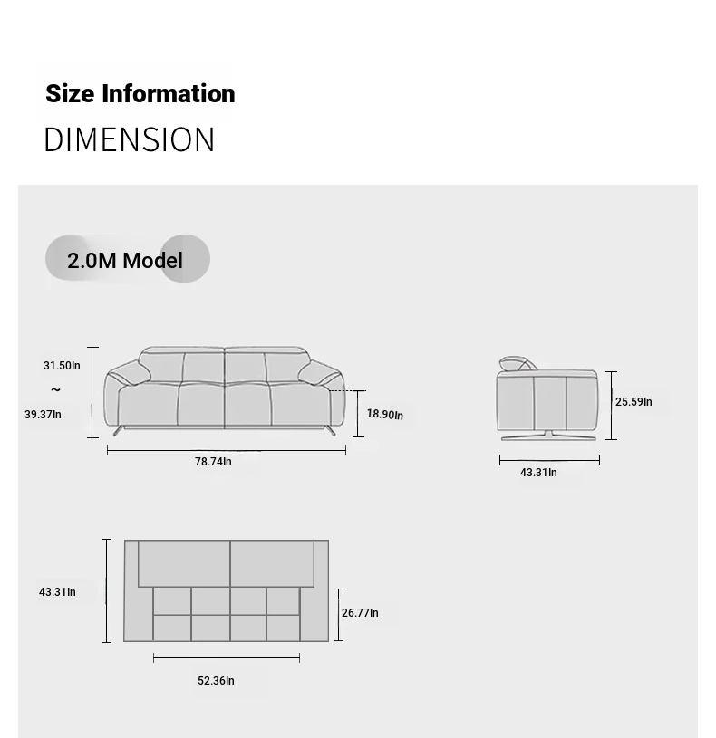 Modern Minimalist Electric Sofa for Small Living Rooms - Adjustable Italian Style Three-Seater Couch with Functional Design