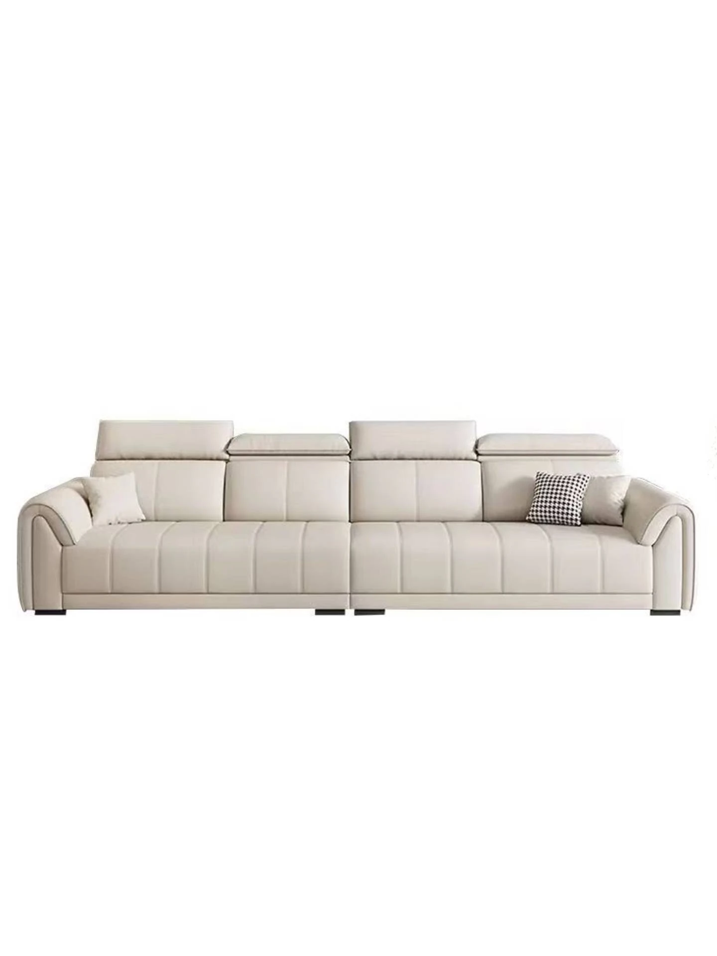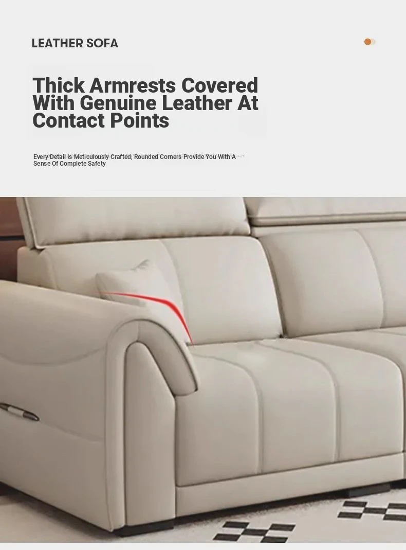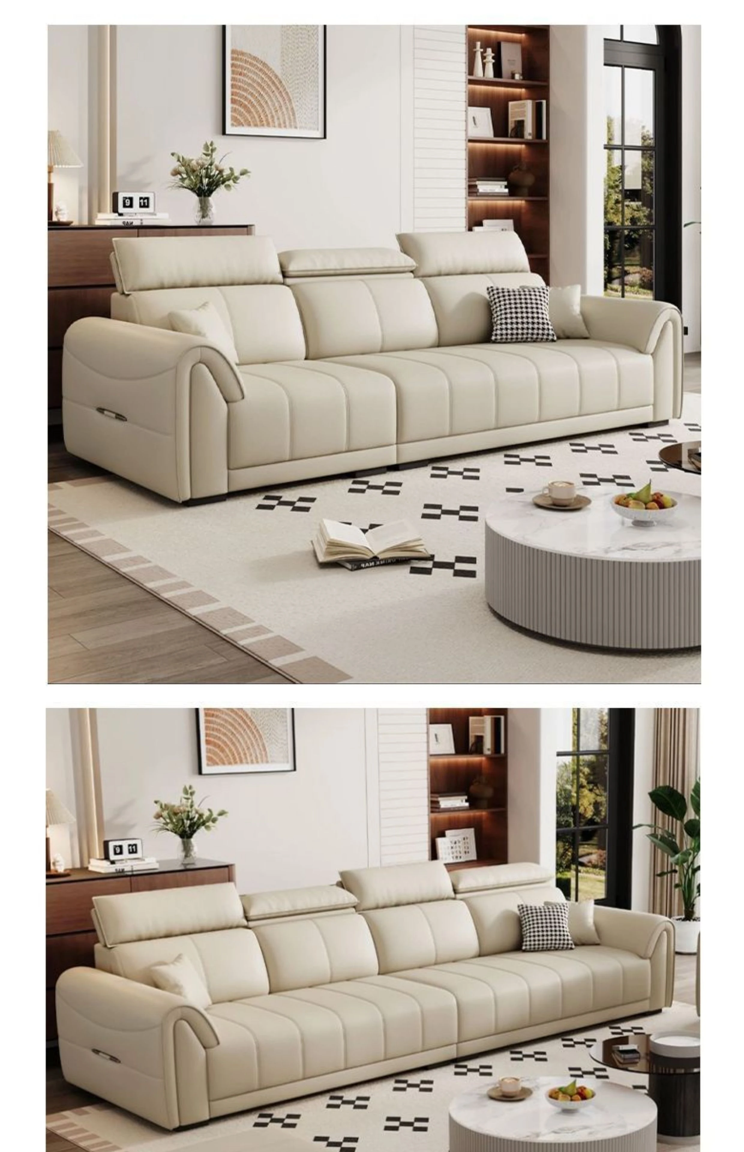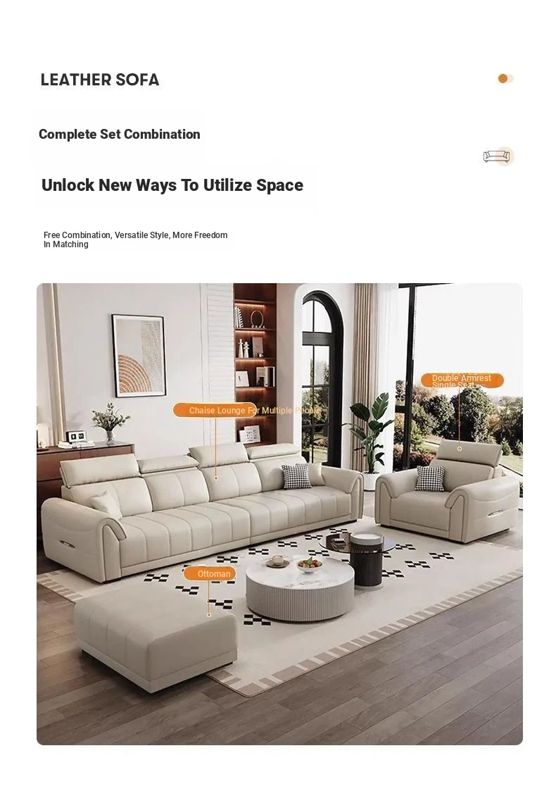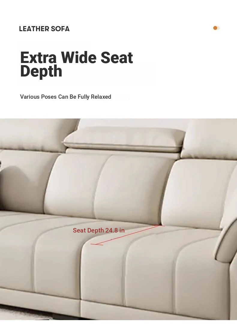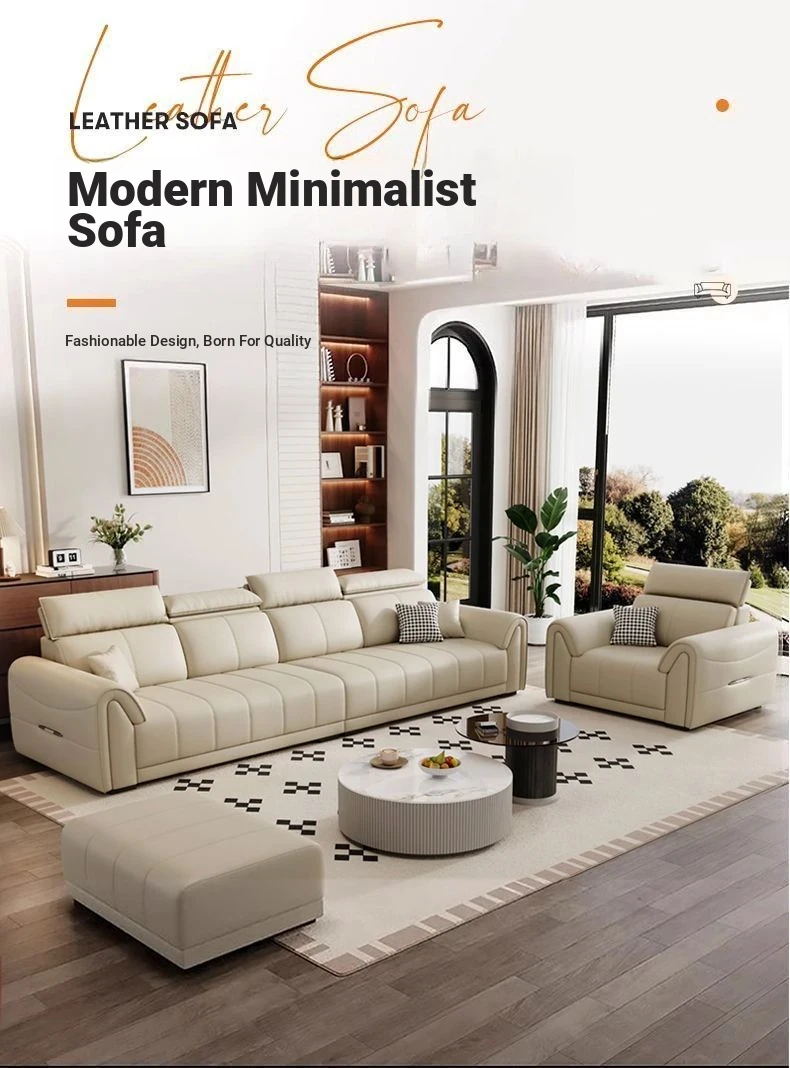 Modern Minimalist Genuine Leather Sofa for Small Spaces – Elegant Living Room Set with Elephant Ear Design and Piano Key Combination, Perfect for Home Use