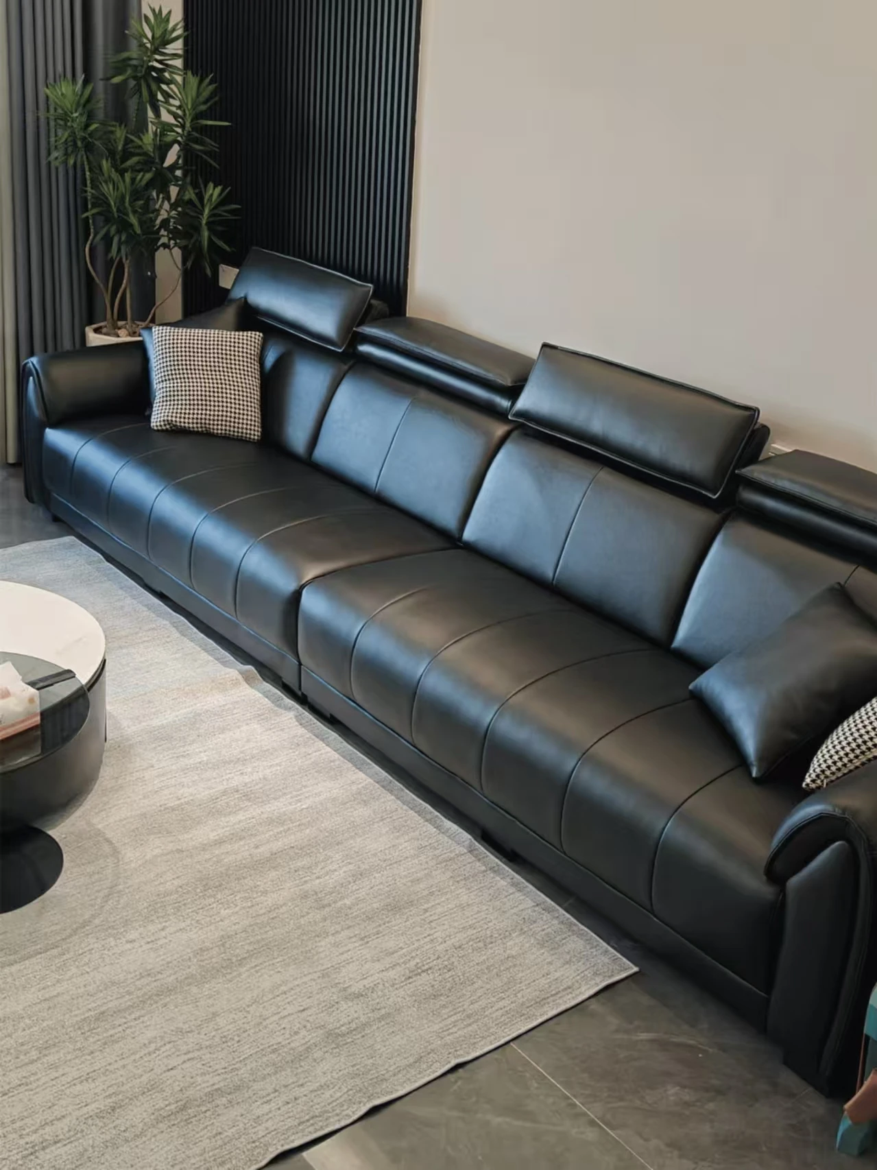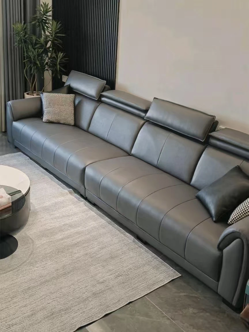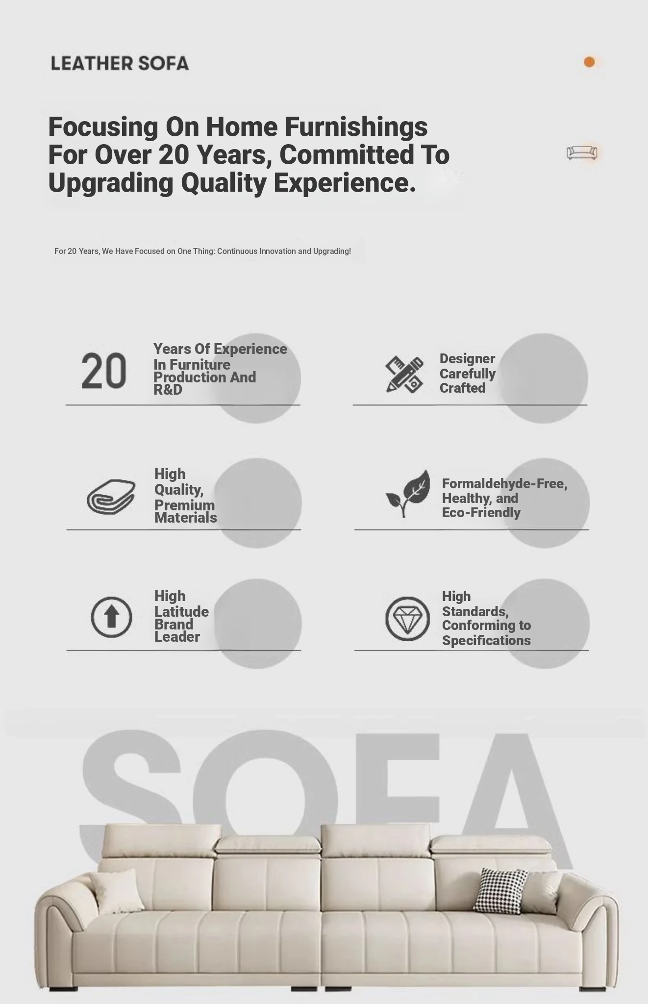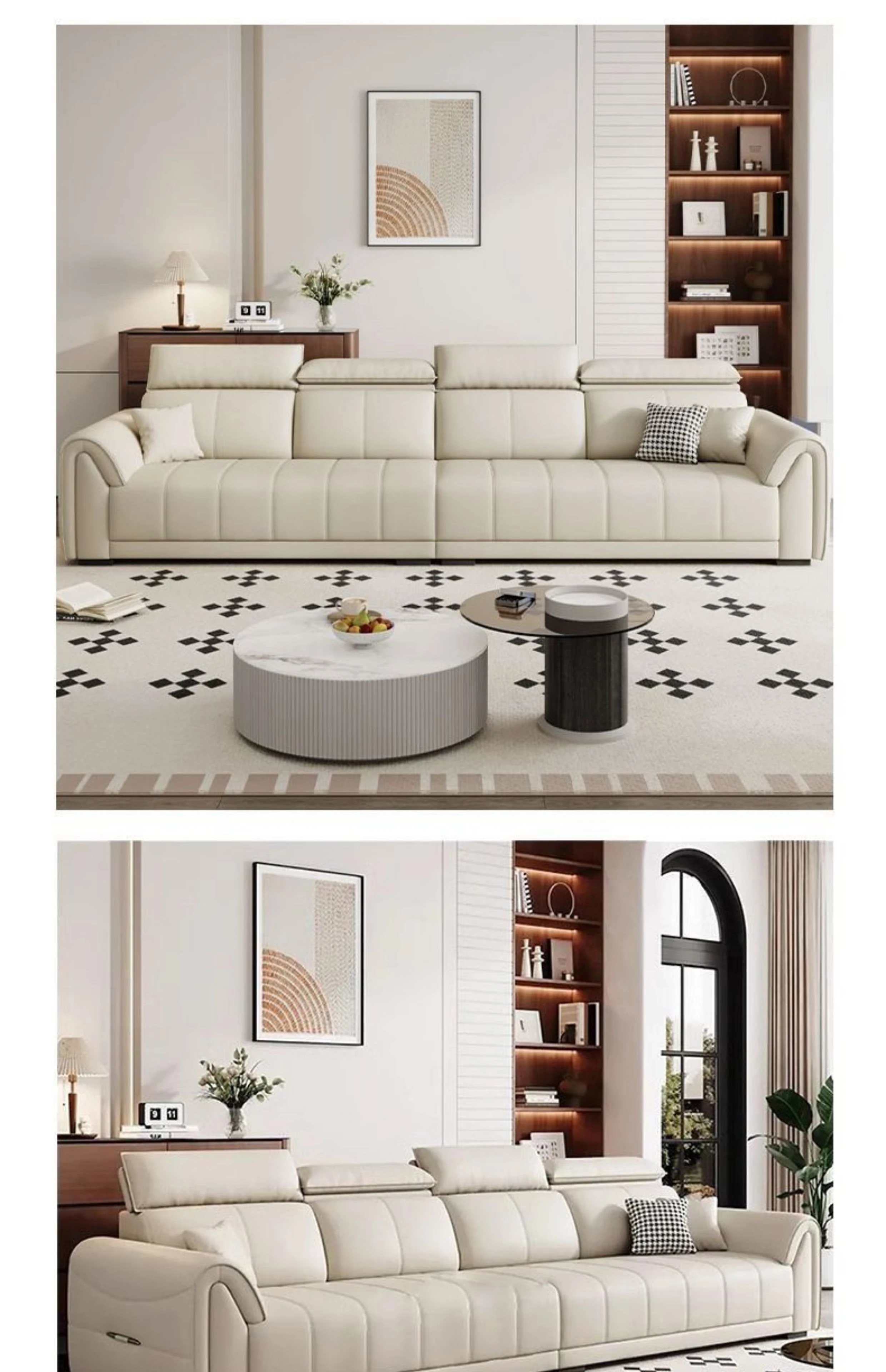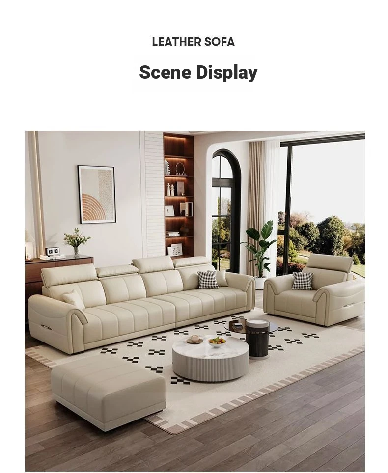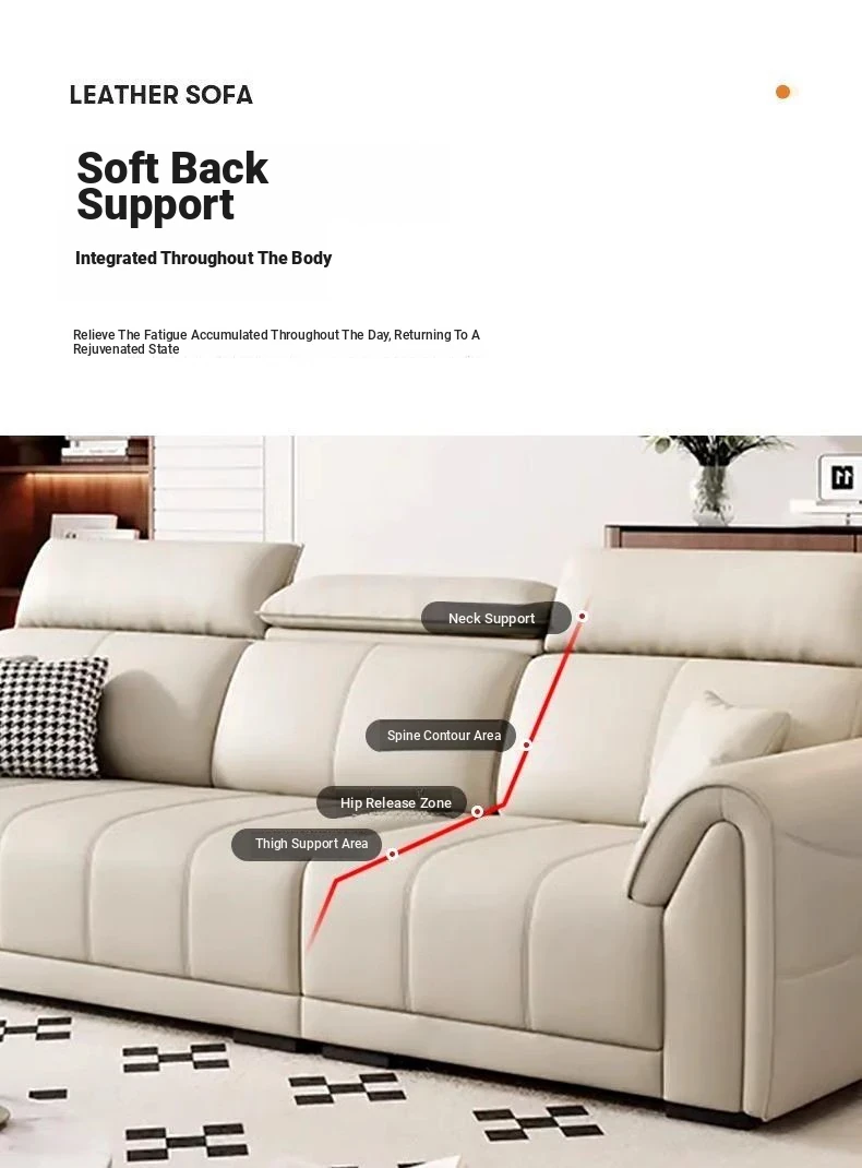 Modern Minimalist Genuine Leather Sofa for Small Spaces – Elegant Living Room Set with Elephant Ear Design and Piano Key Combination, Perfect for Home Use